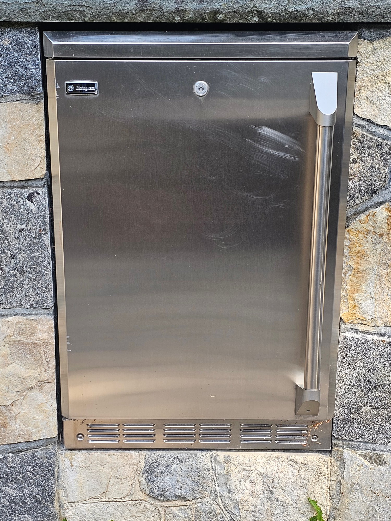GE Monogram Outdoor Refrigerator. If you know anything about this outdoor series, you know how expensive they are. In working order. Measures 23 1/2x36 and an inside depth or 19 inches