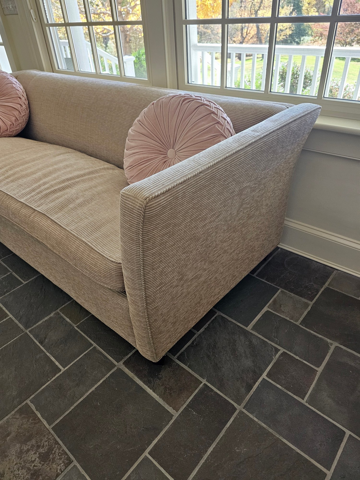 Elegant Avery Boardman Sofa with Classic Lines. Measures 85x37x31