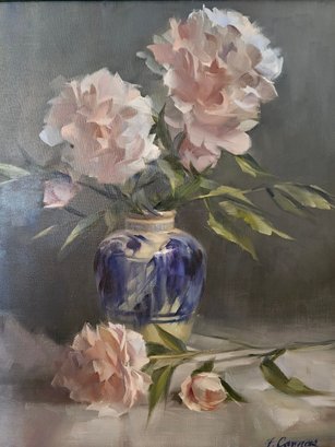 Fran Cannas Oil Painting Titled Persian Vase with Peonies b. 1936 New York measures 20x24. Notice the purchase price was $2,600