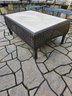 Frontgate Coffee Table with travertine or similar stone top. Measures approx 42x27x17.