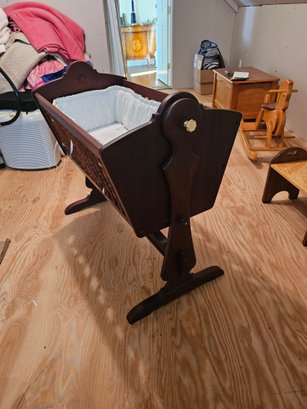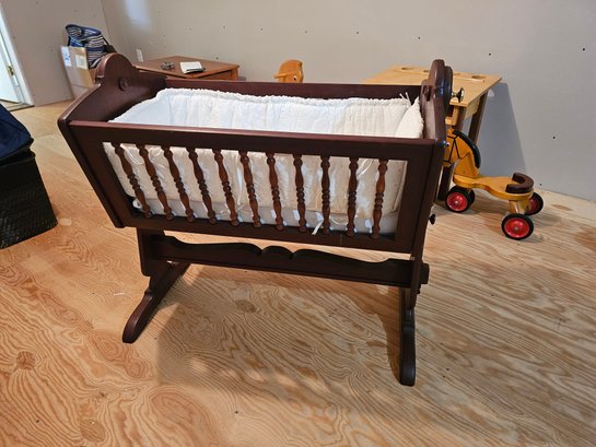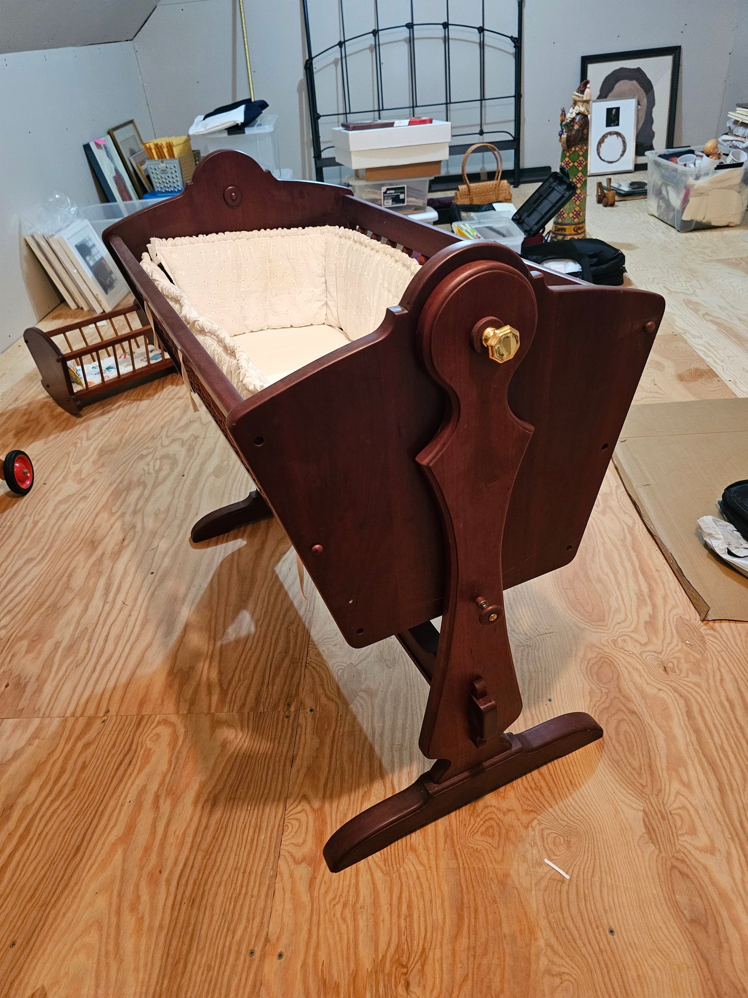 Full Size Natural Wood and Brass Homemade Bassinet, 39x20x30