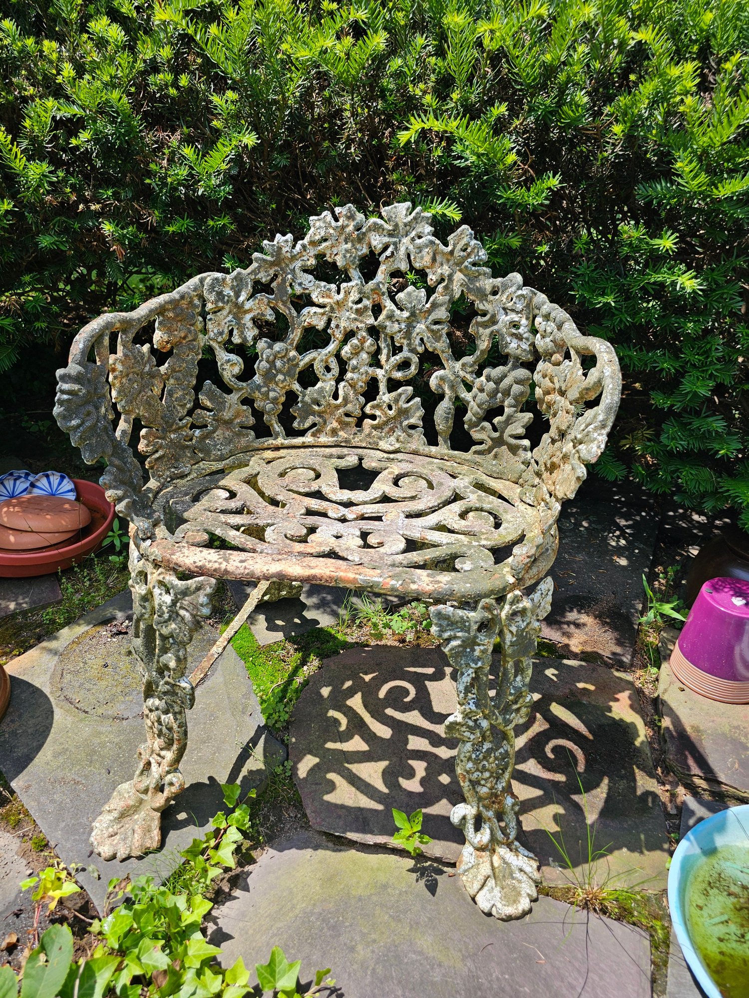 Heavy Grape Pattern Cast Iron Chair 21x15x26 approx