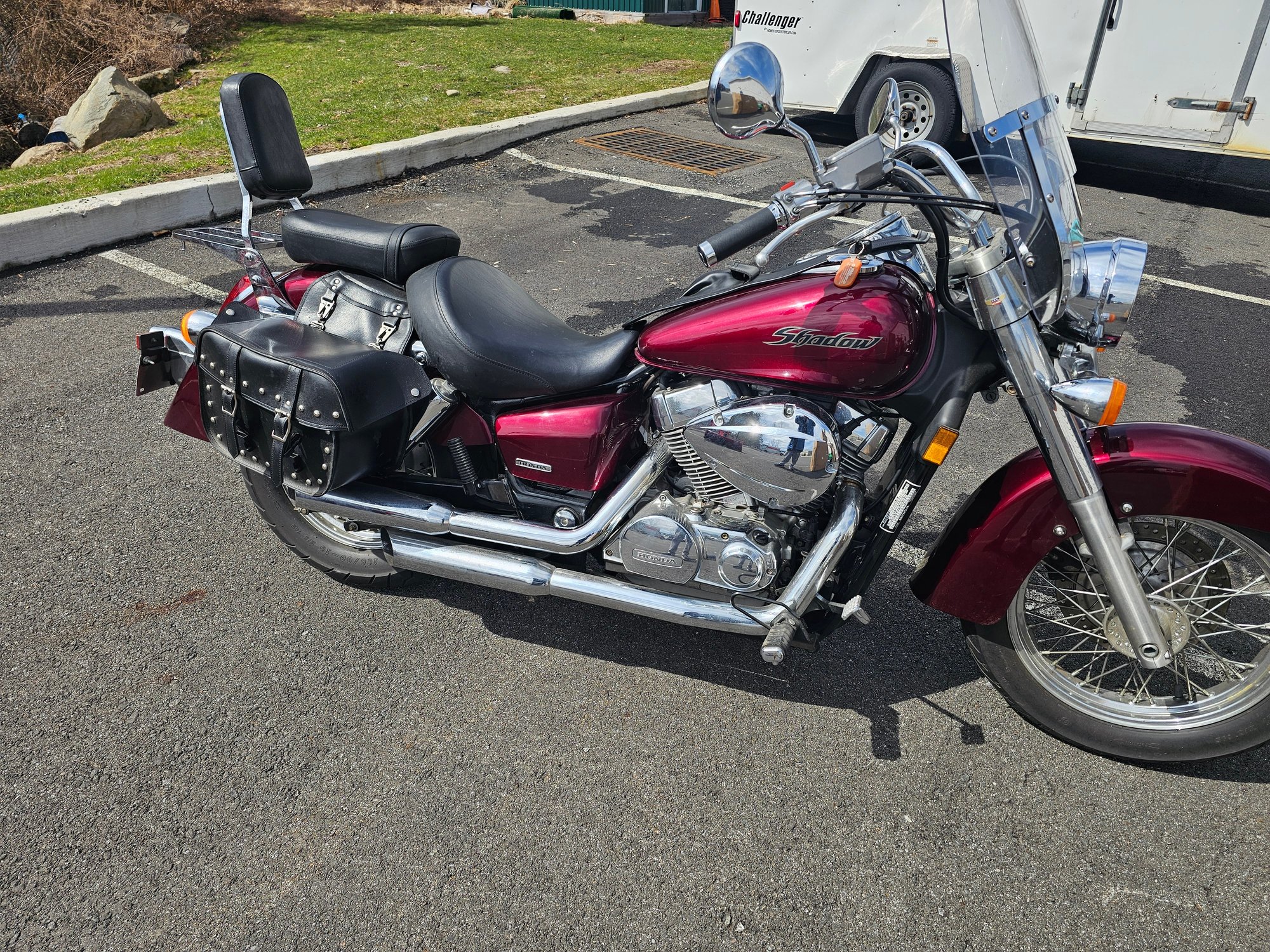 2004 Honda Shadow 750. Has an extra windshield. Clear title. Not currently running but owner is of the belief it is an easy fix. Will try to hook up a battery tender to obtain mileage. My client is the second owner and it was only used a handful of times. Tax paid at time of registration. Sold as is.