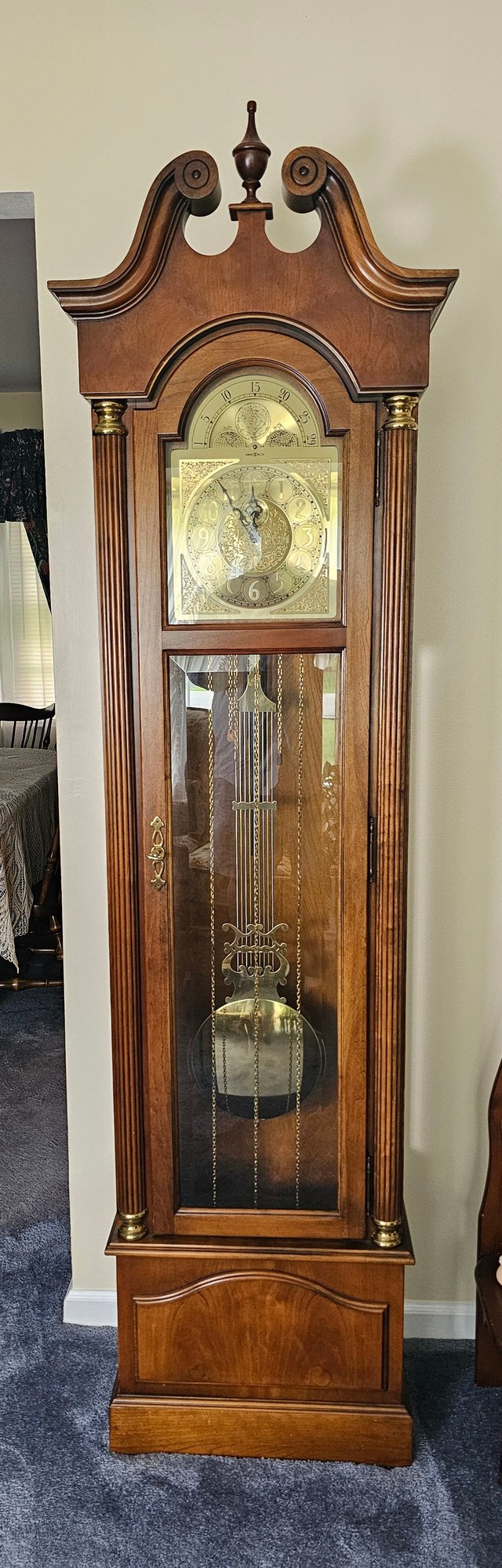 Howard Miller Grandfather Clock, working condition. 21 1/2w x 12d and 80t