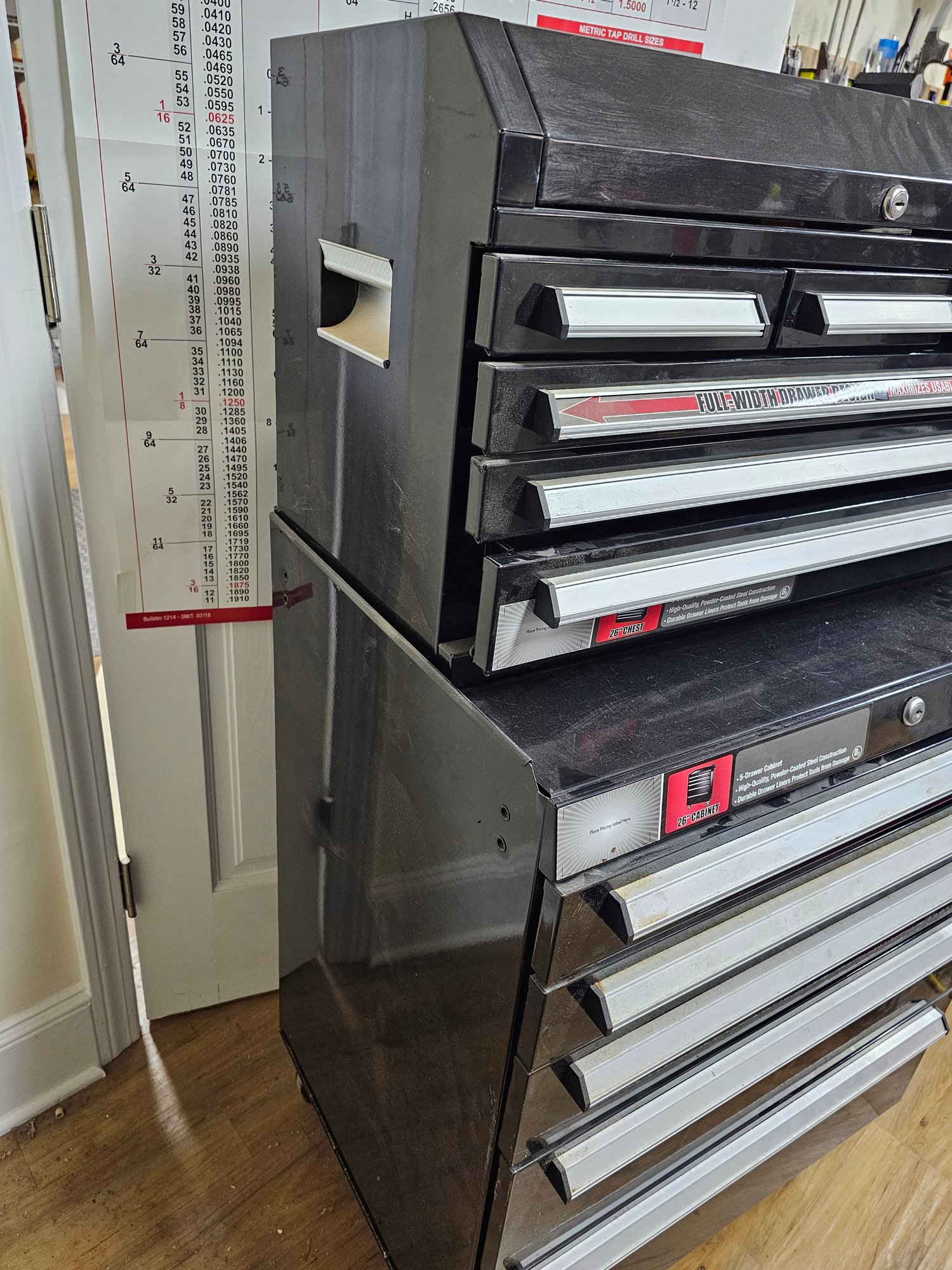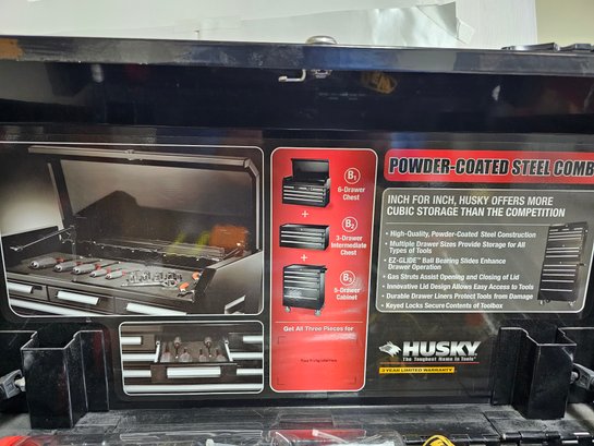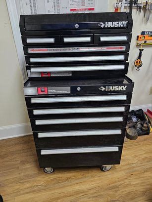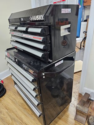 Husky Two Piece Tool Storage Cabinet, there are keys.