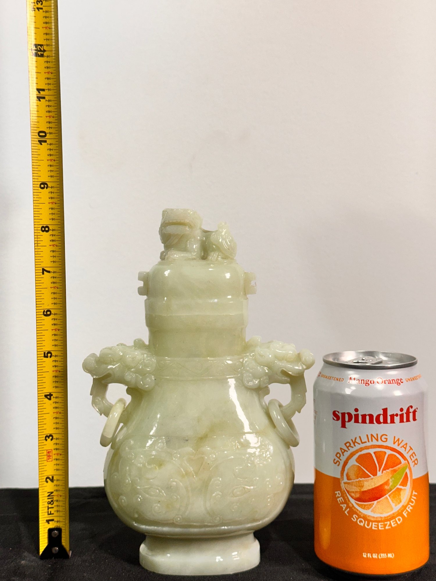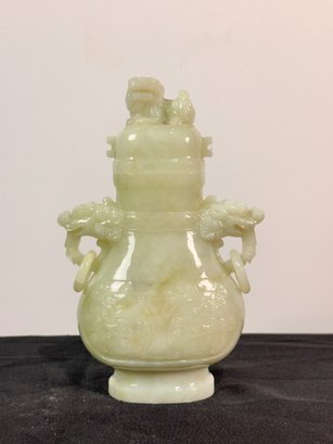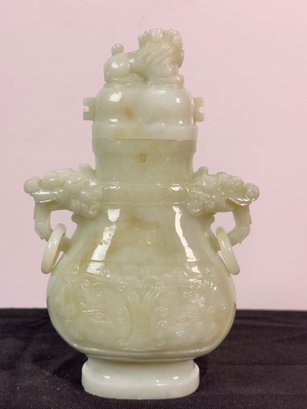 Jade or similar stone Vase adorned with Dragons