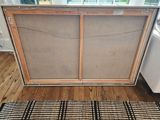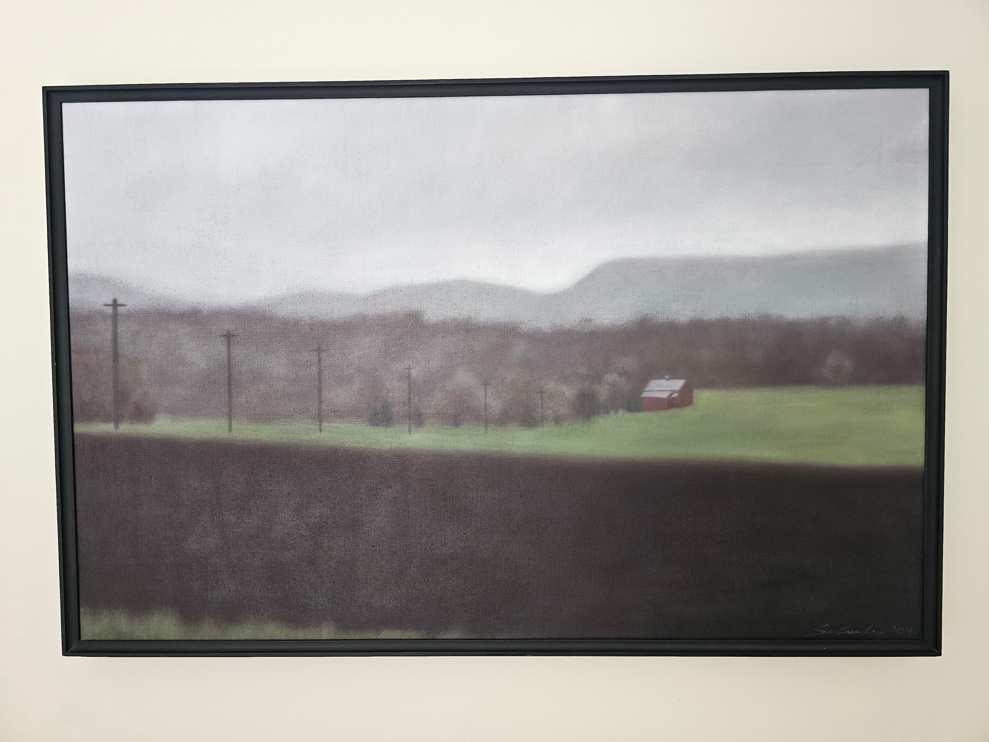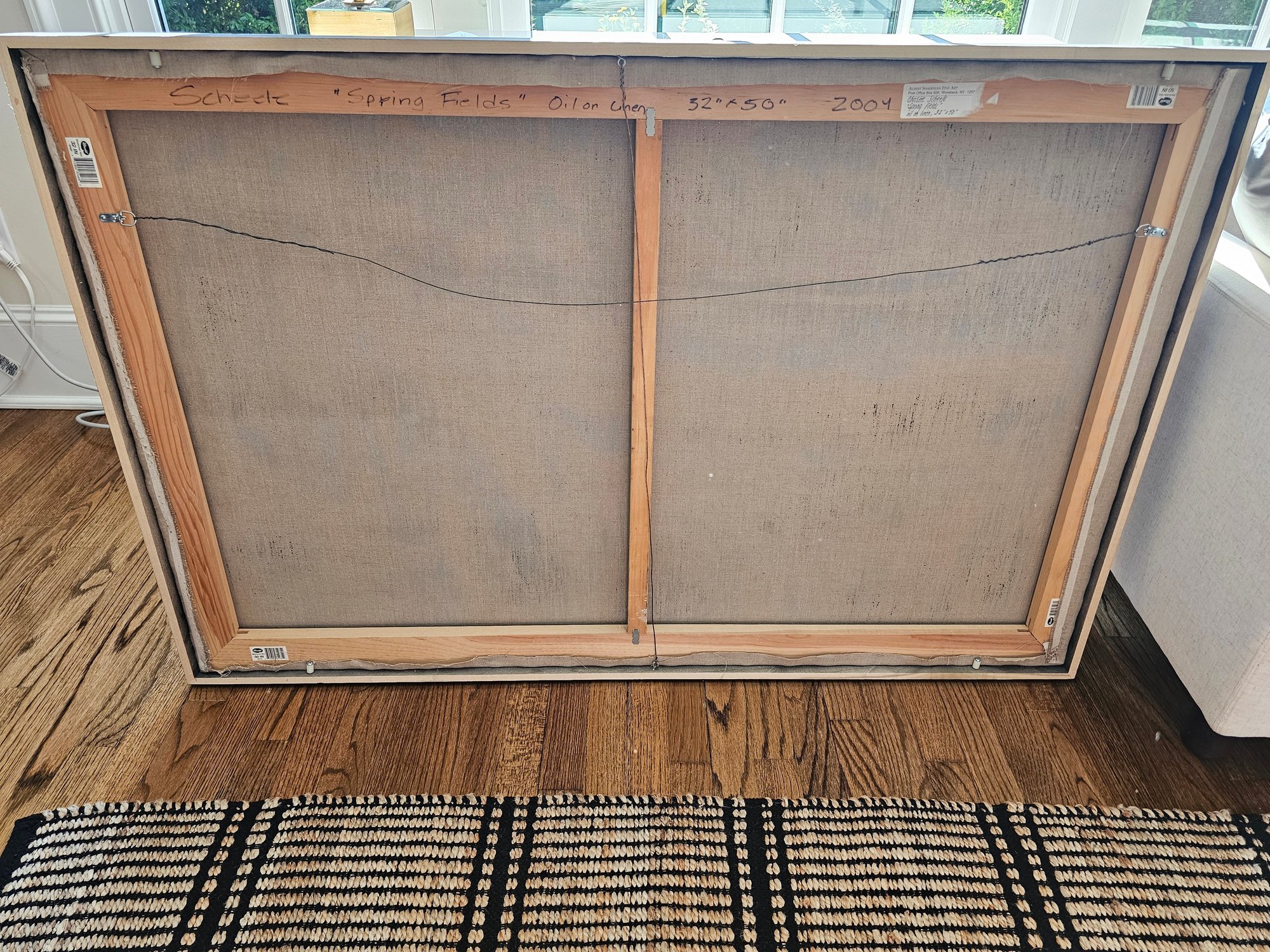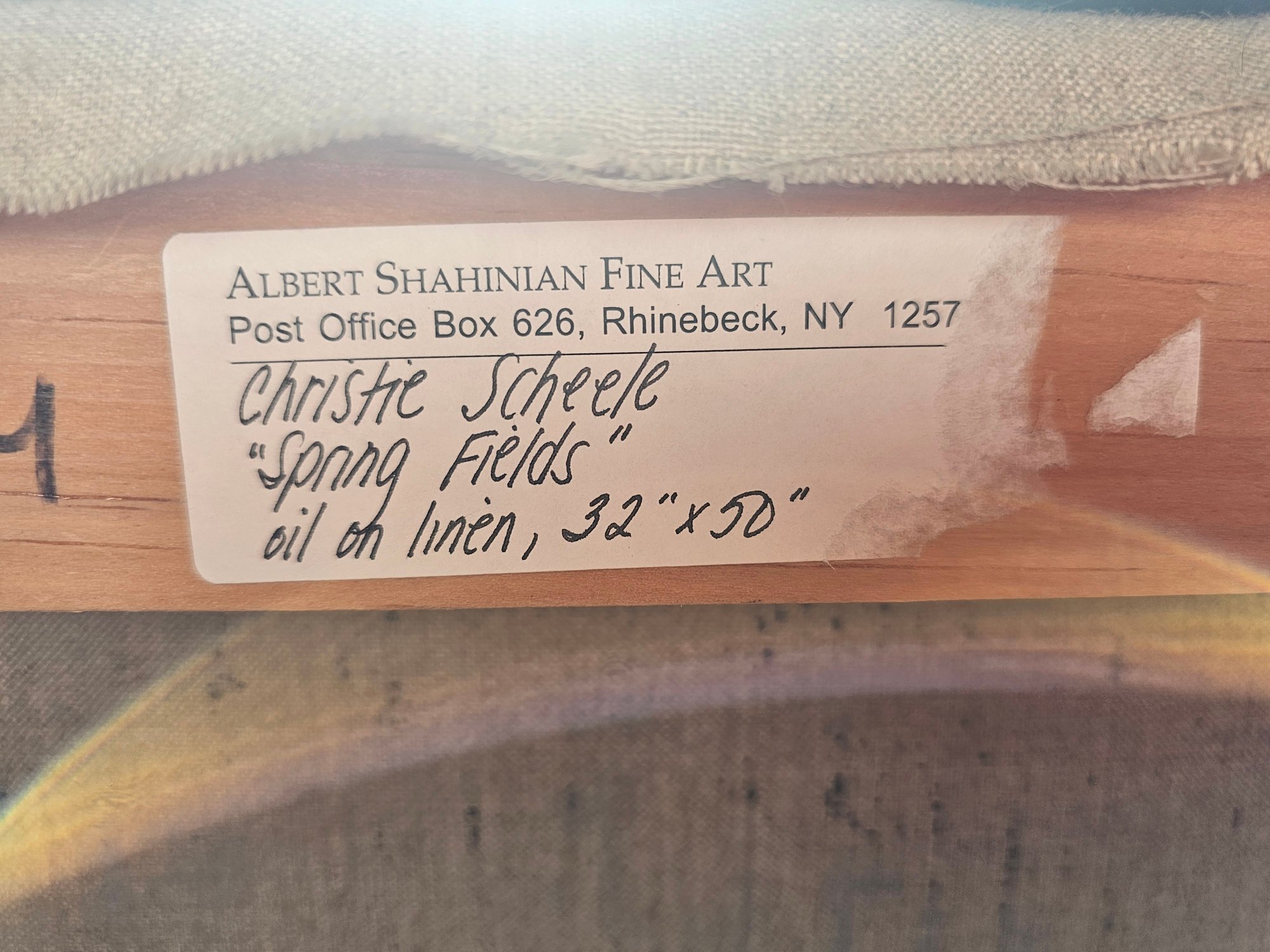 Landscape oil on linen Titled "Spring Fields by Christie Scheele. Measures 32x50. Artist Christie Scheele is a contemporary landscape painter residing in the Catskills and with most of the subjects being Hudson Valley scenes. Additional information at Christiescheele.com