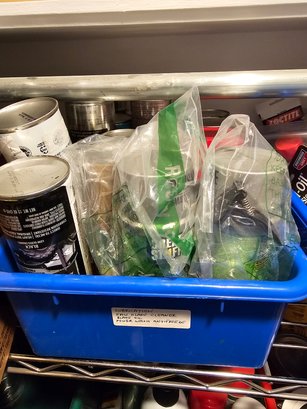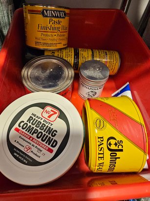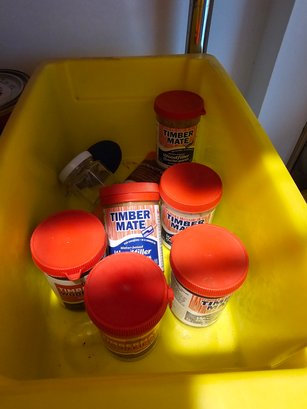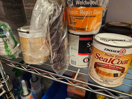 Large Lot Of Waxes, Polyurethane, Adhesives And Other Wood Working Fluids