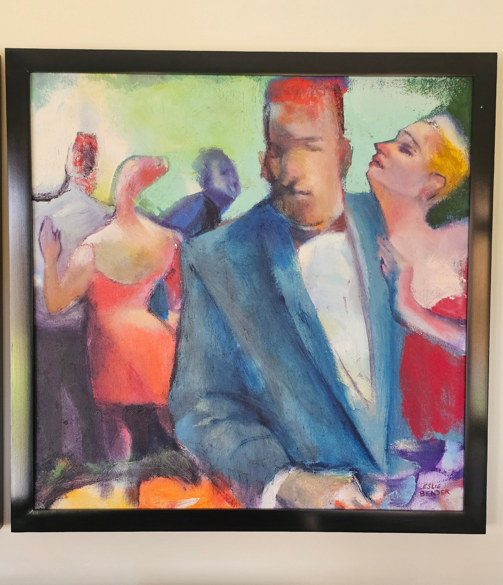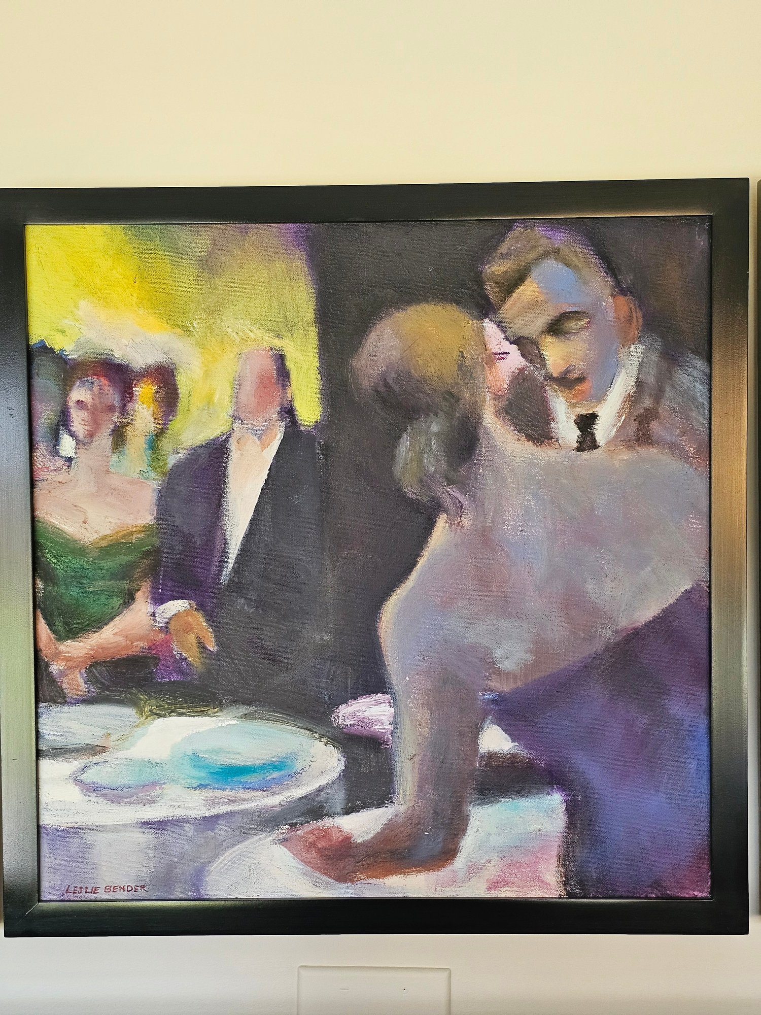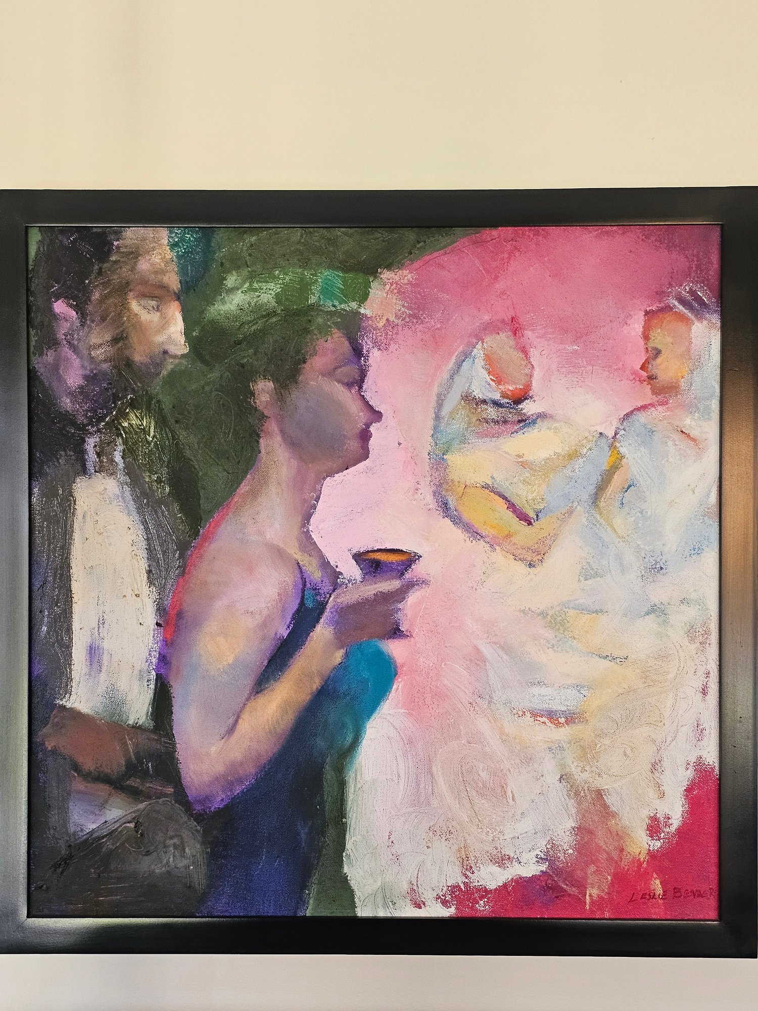 Leslie Bender Triptych each measuring 21x21. Leslie Bender is a Kingston, New York artist. This is possibly part of her series referred to as Life in Restaurants