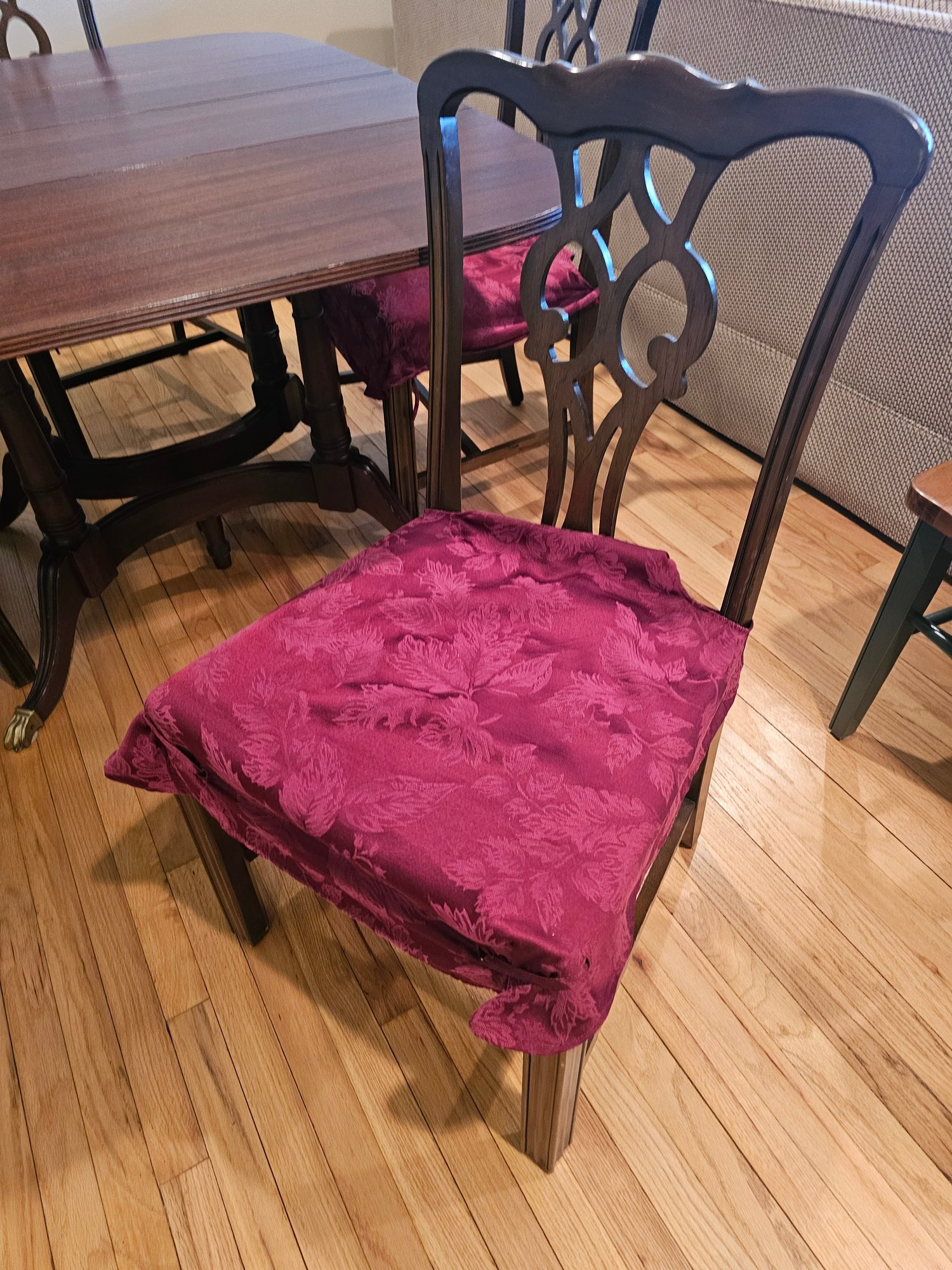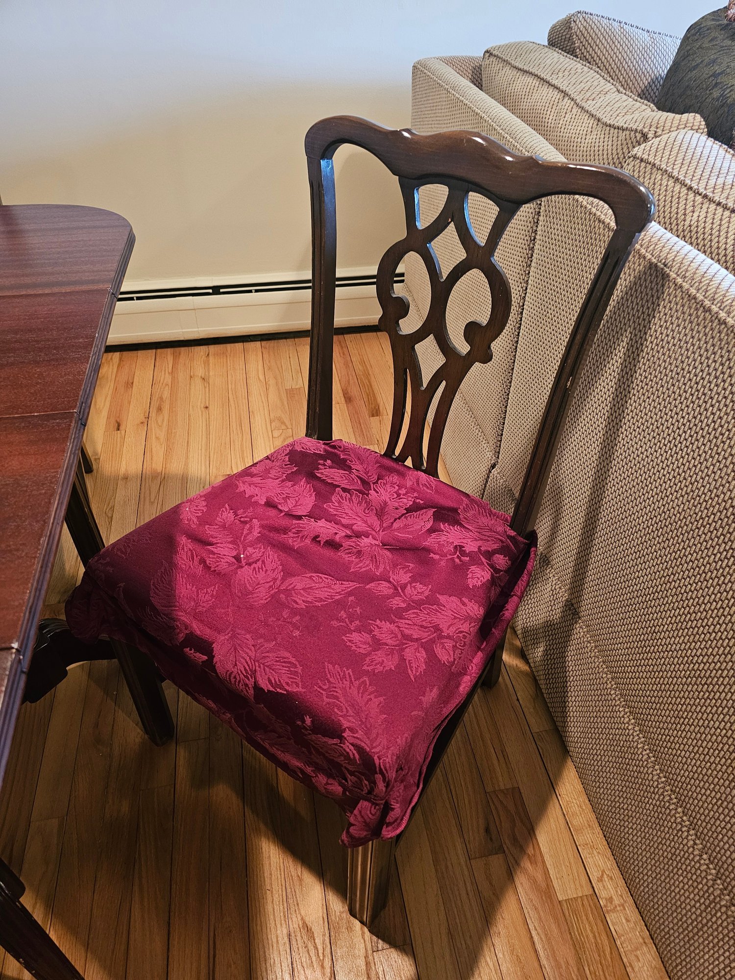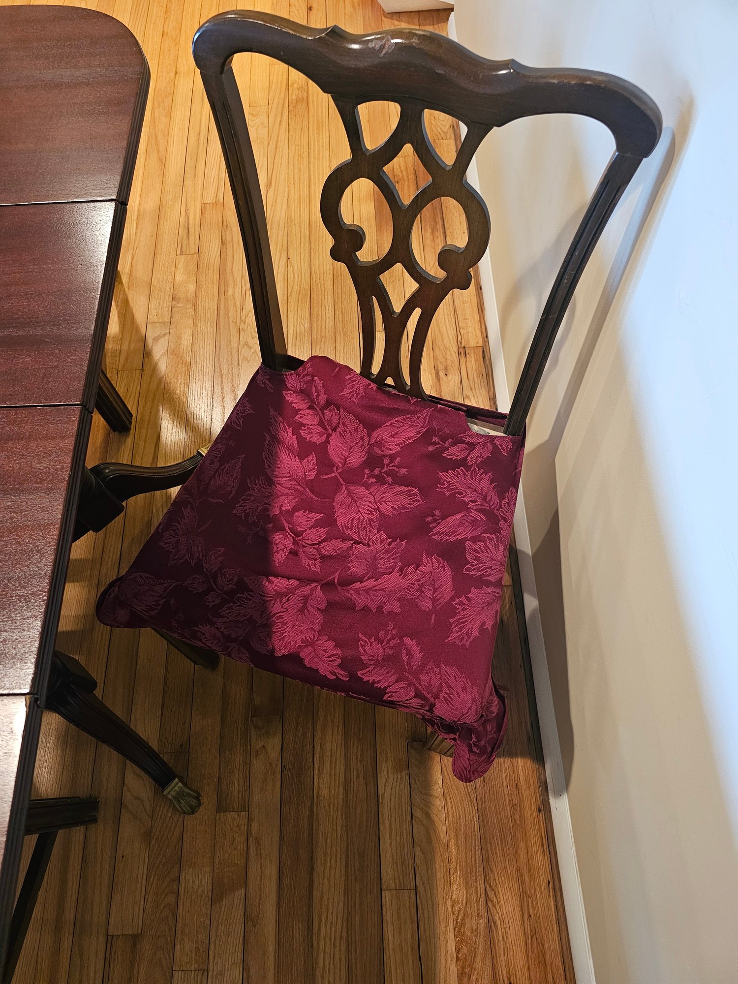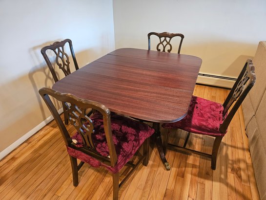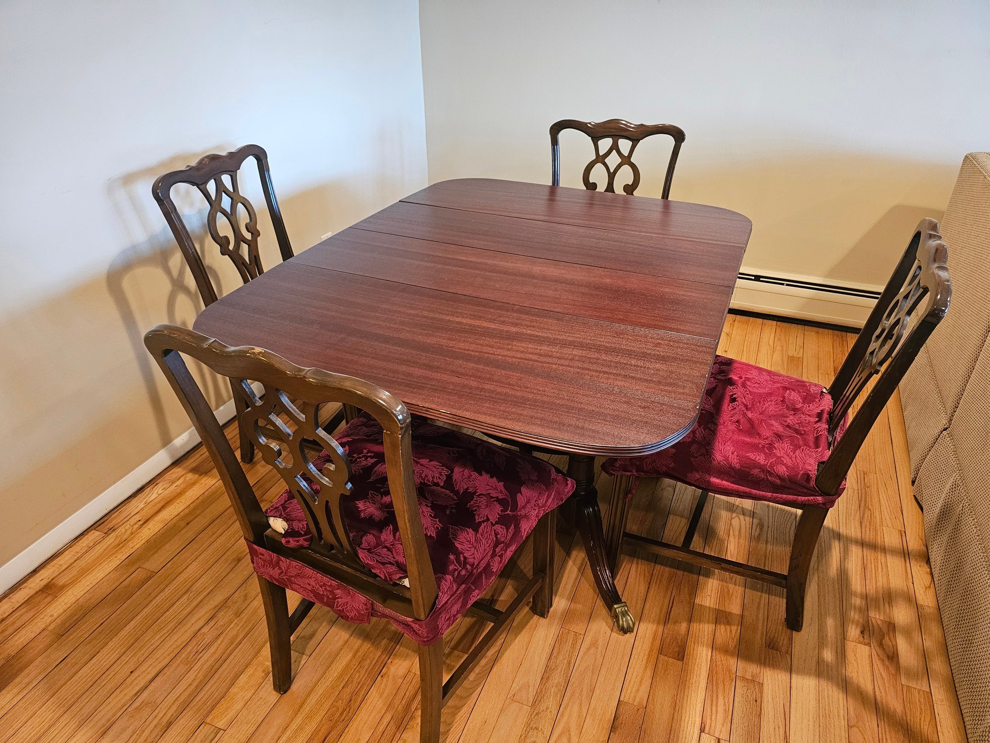 Mahogany Dining Table and four chairs 53x40x30 Chairs are 20x18x36 with a seat height of 18