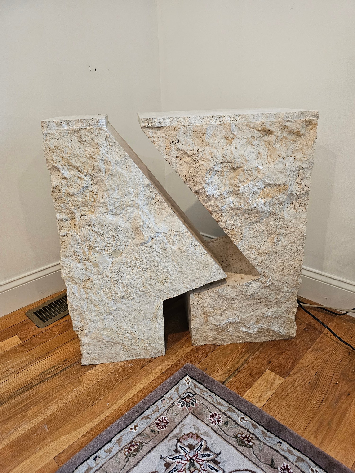 Modern Sculpture, 2 pieces measures 27x16x29 made of travertine, marble or similar stone. Heavy