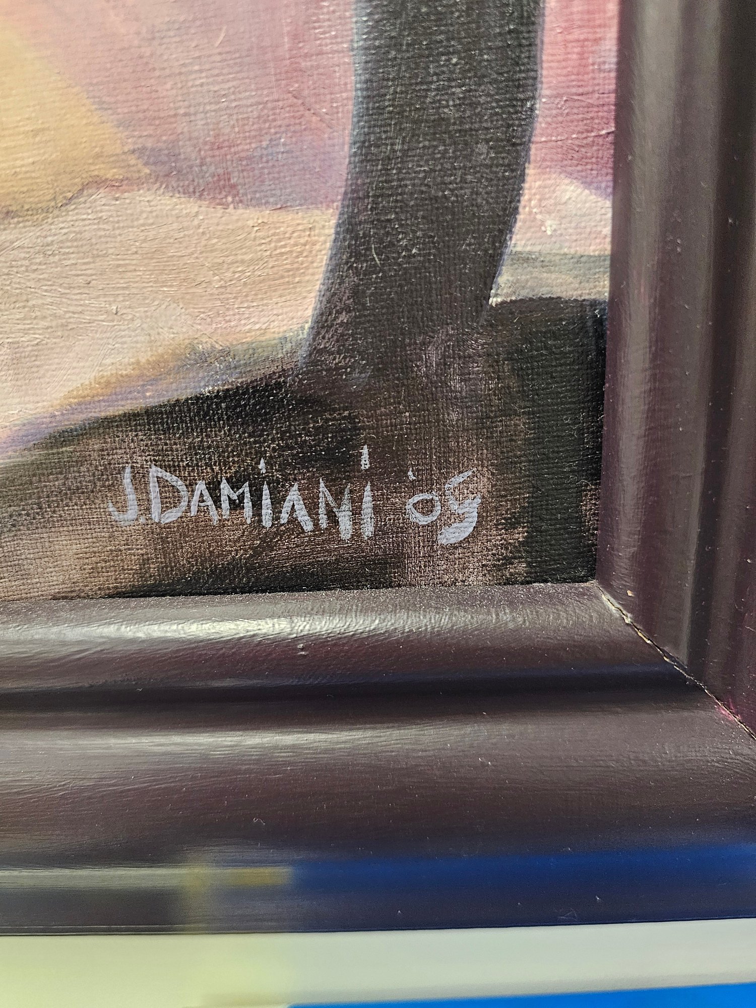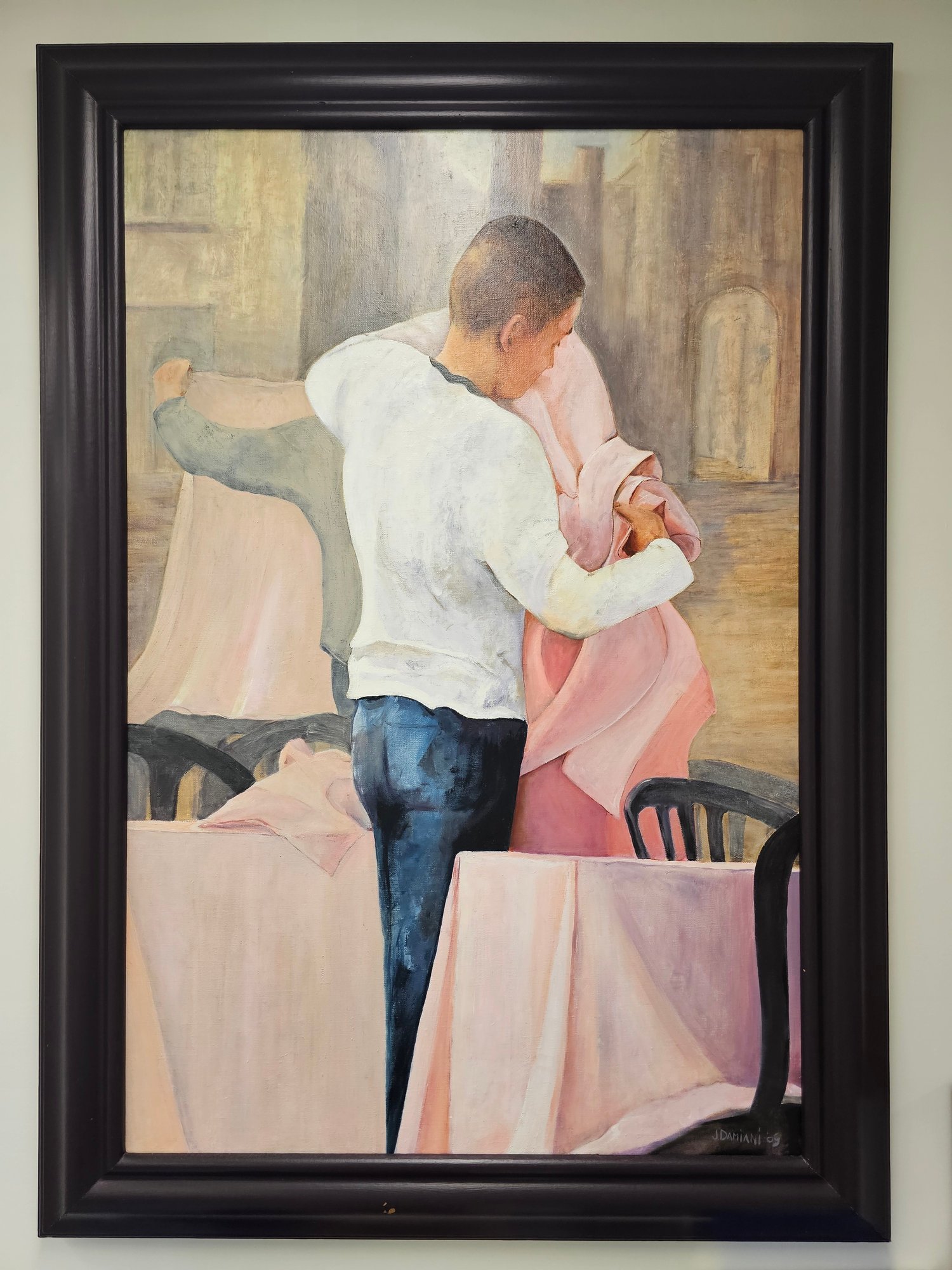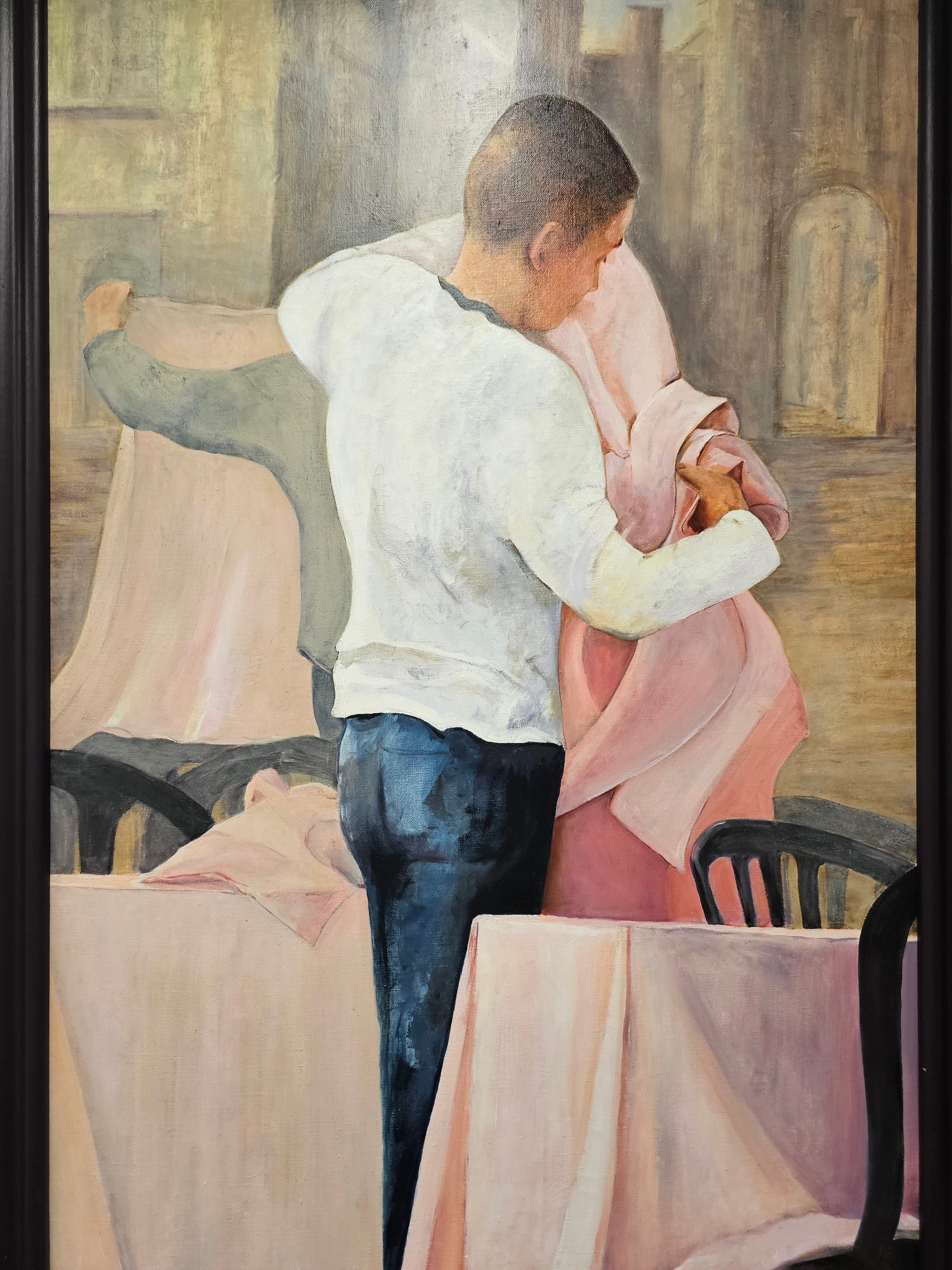 Oil on Canvas Signed J Damiani of Boy Setting a Table Cloth measures 30x42 Likely to by by Joan Damiani of Hillsdale NY (Columbia County) Measures 30x42