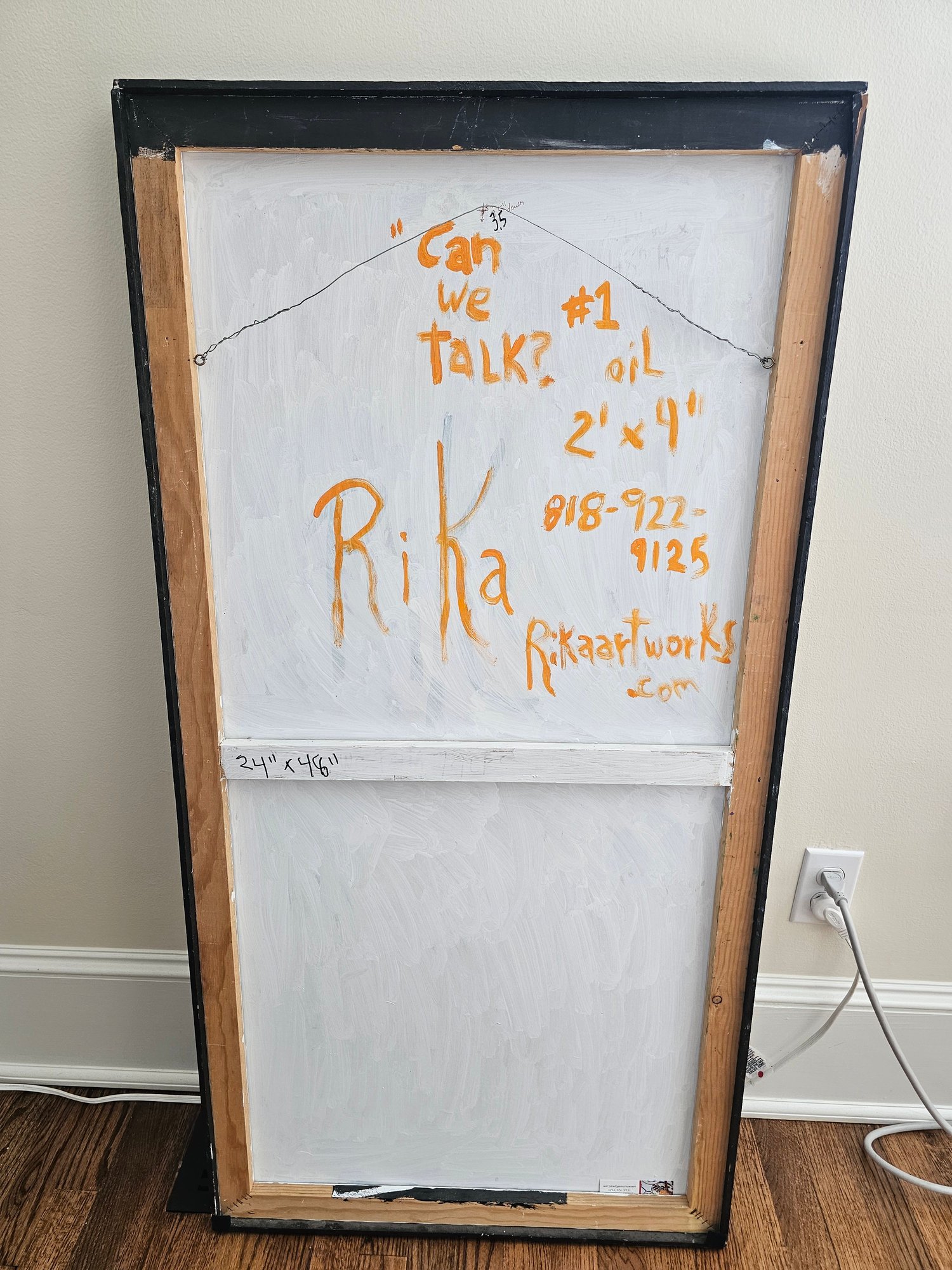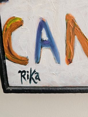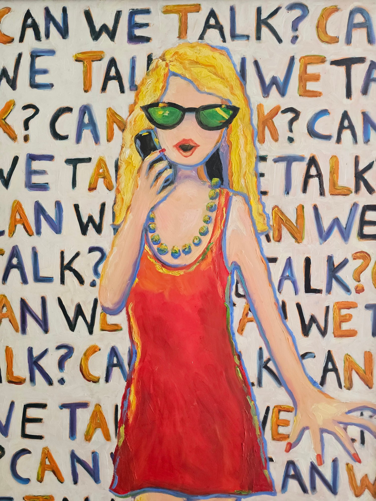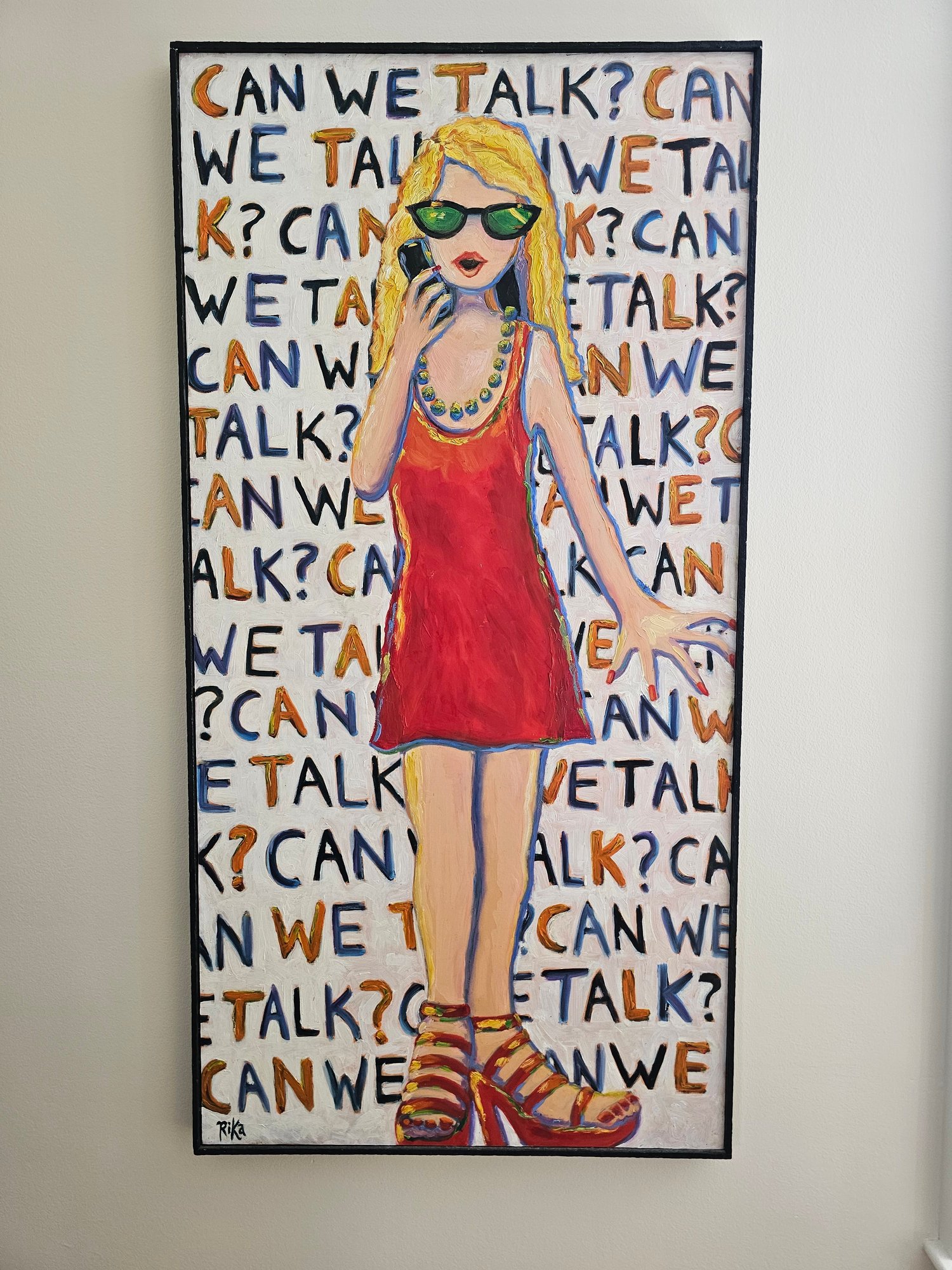 Oil on Canvas title "Can We Talk" by artis Rika, vibrantly colored pop art style measures 24x48 inches