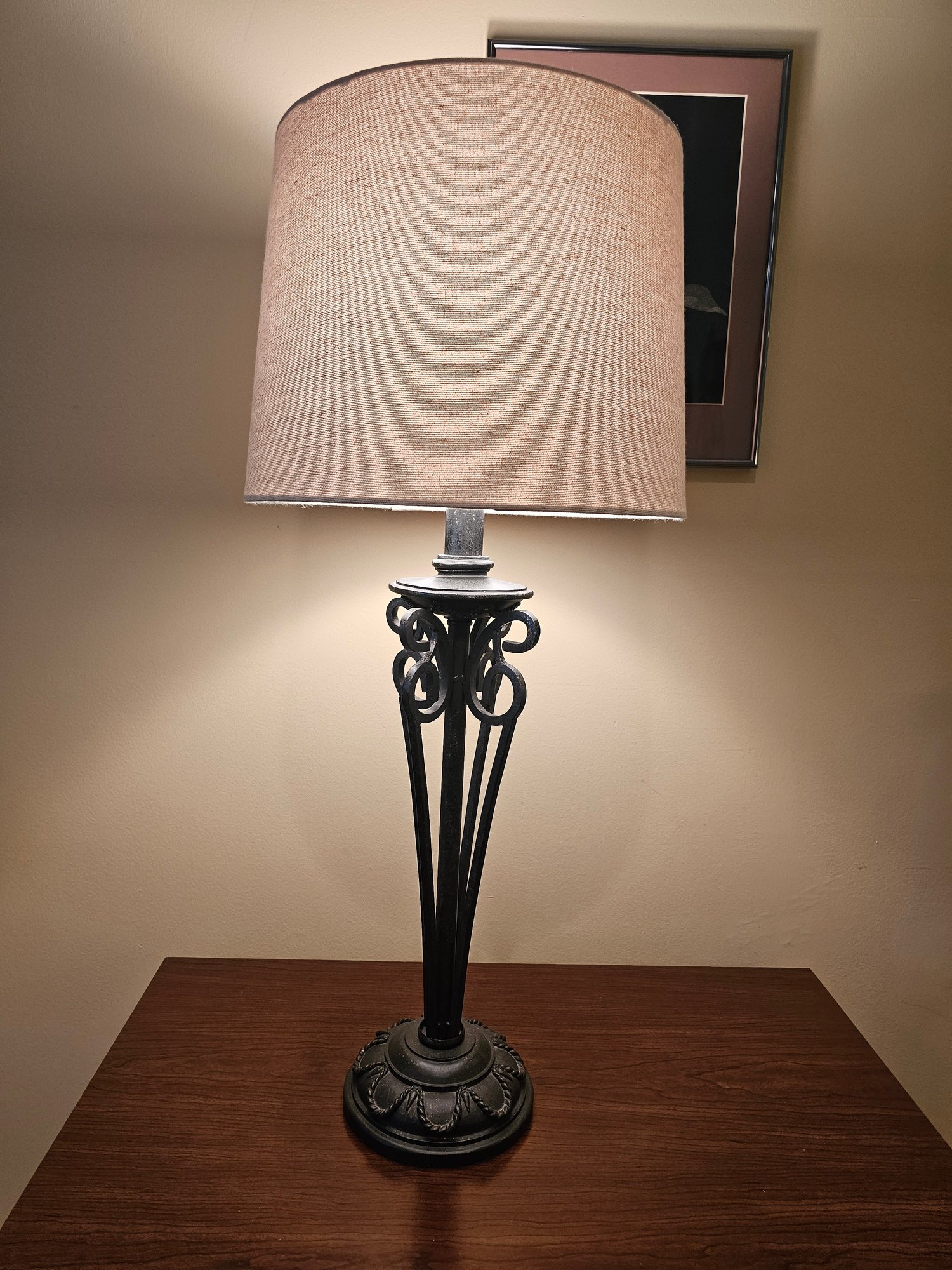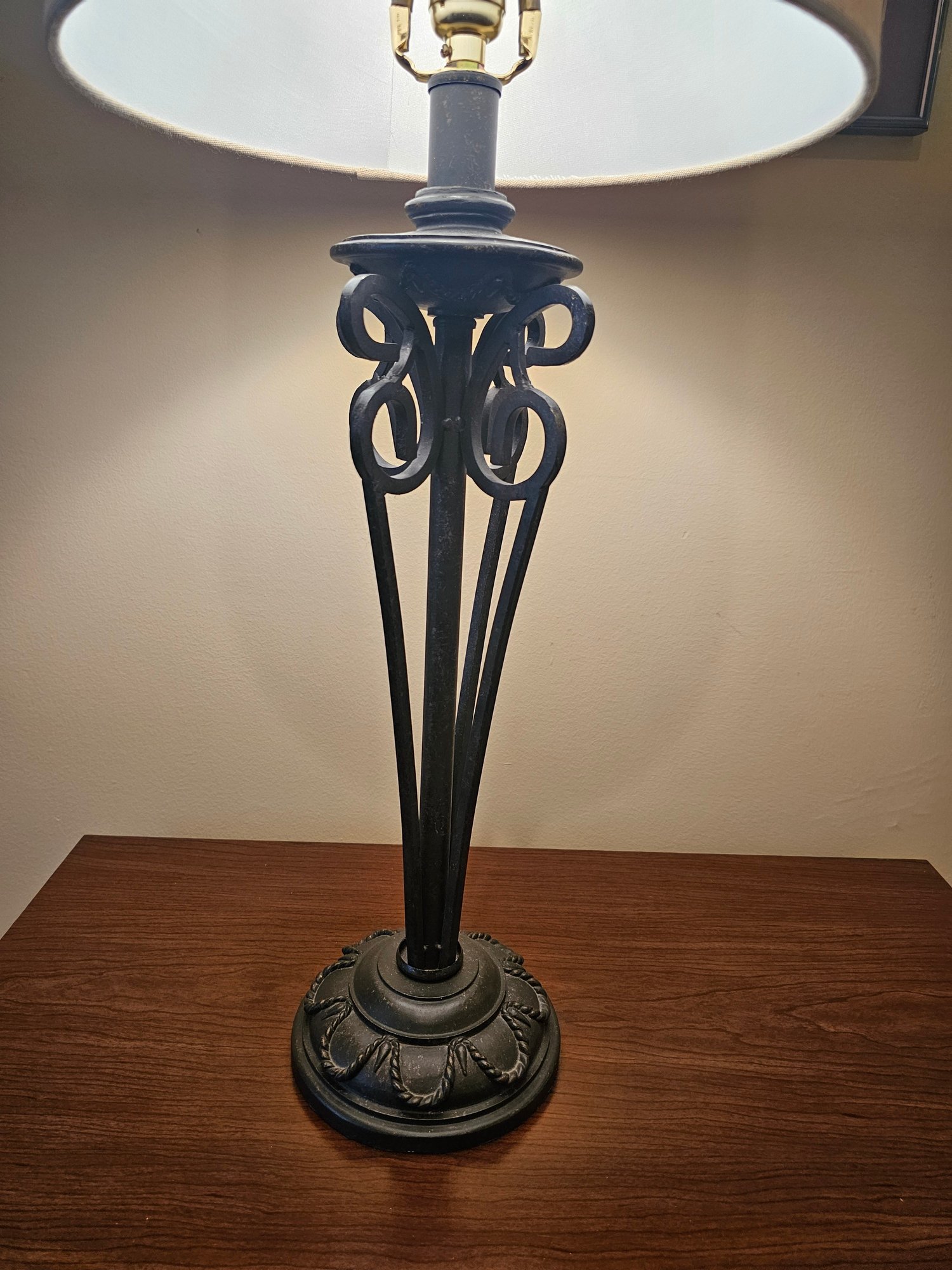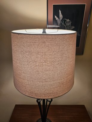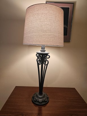 Open Wrought Metal Table Lamp 32 tall and 14w shade