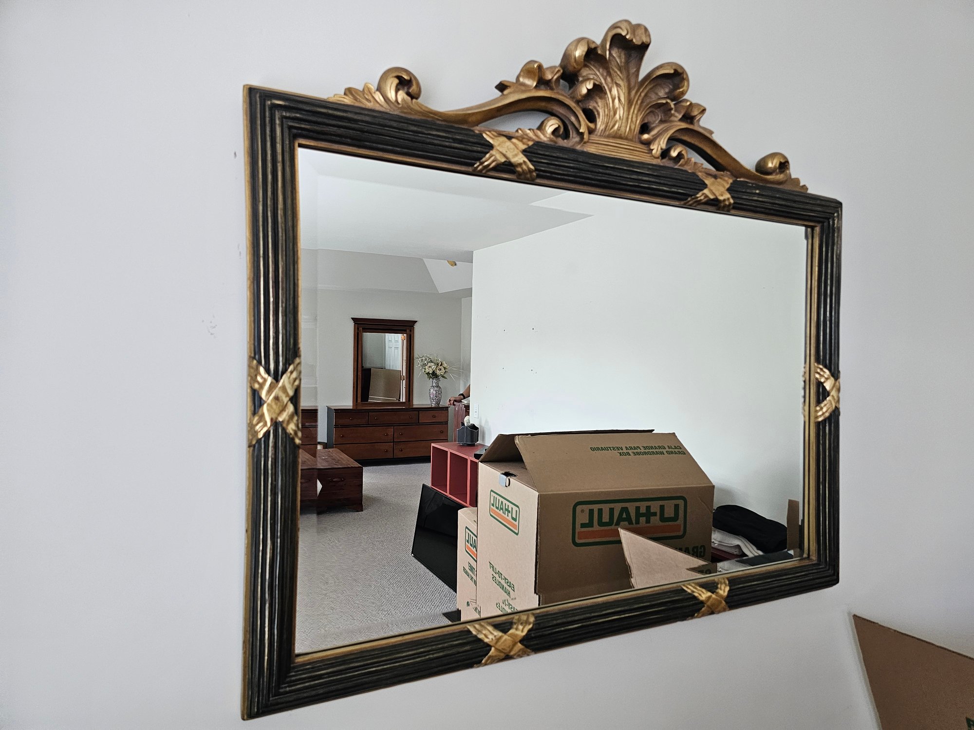 Ornate Mirror, measures 39x35 Carved portion may be a composite material