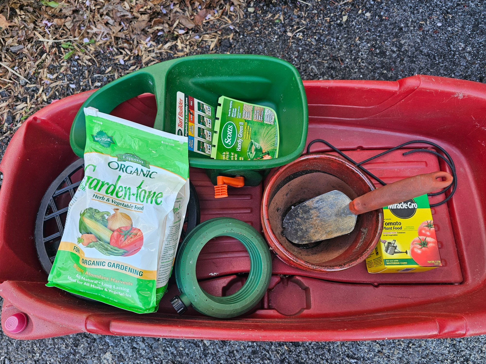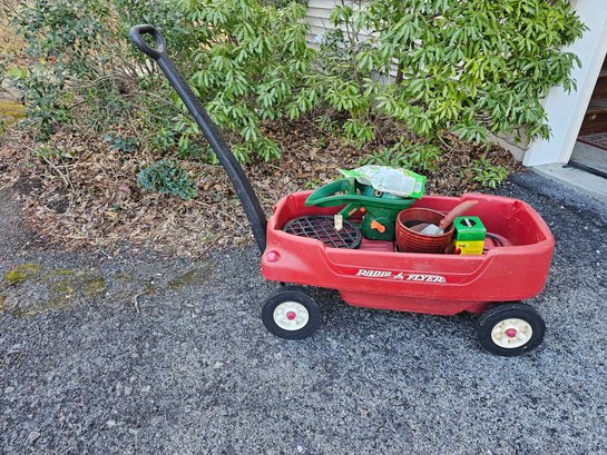 Radio Flyer Wagon currently serving as a garden cart with various garden items included