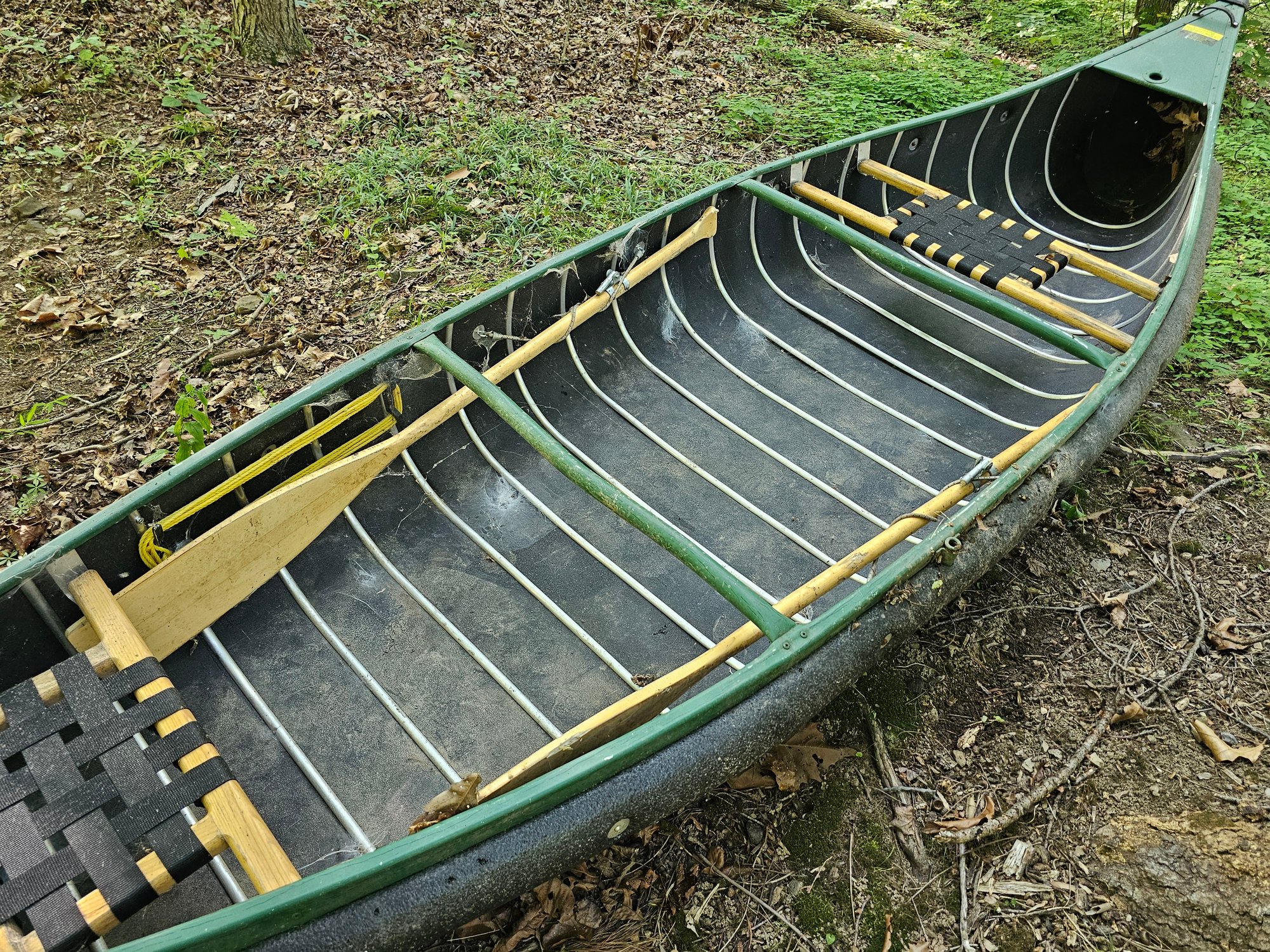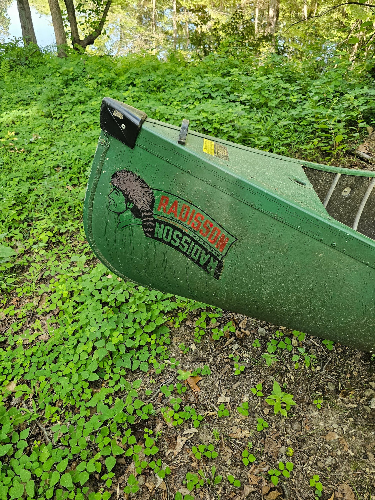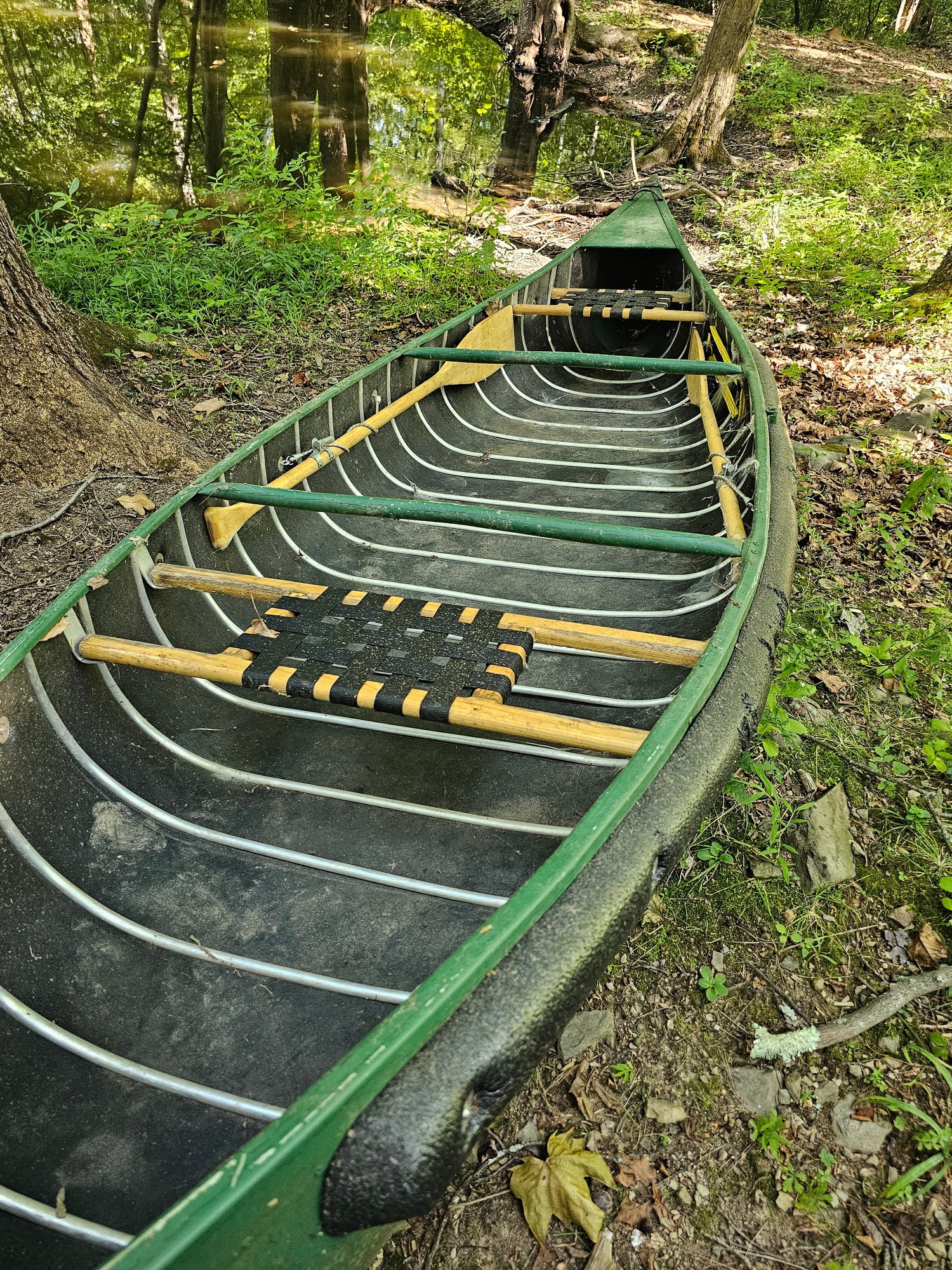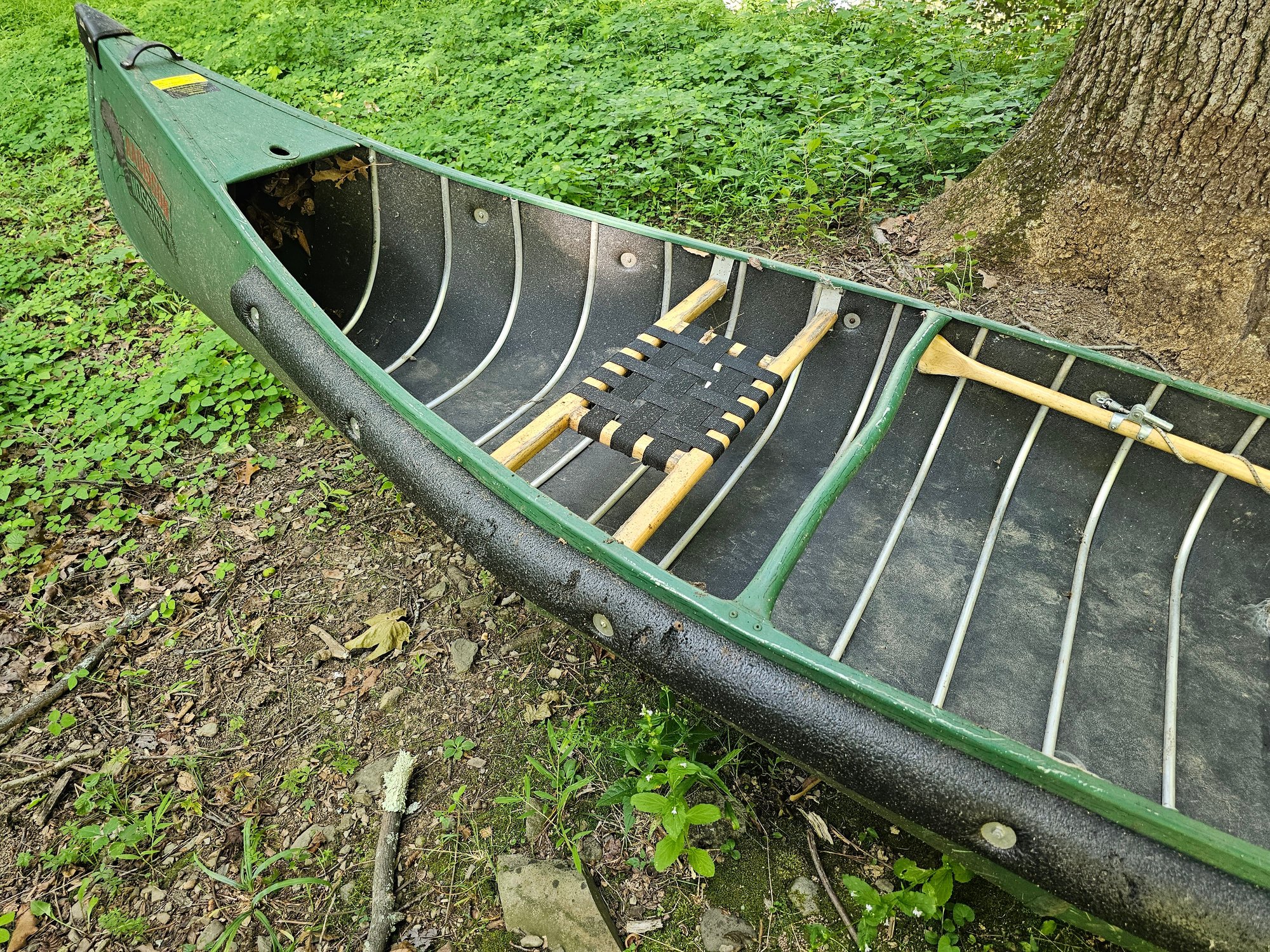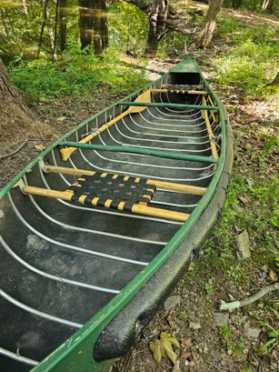 Radisson 14P Aluminum Canoe. 14 feet with oars, side bumpers and two mesh seats