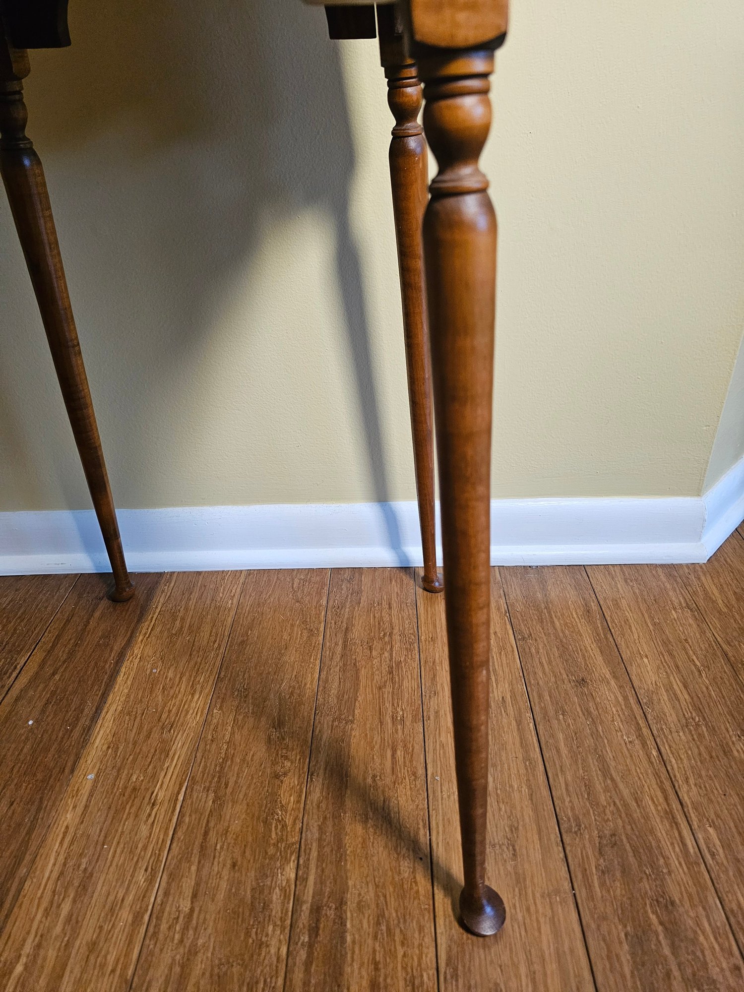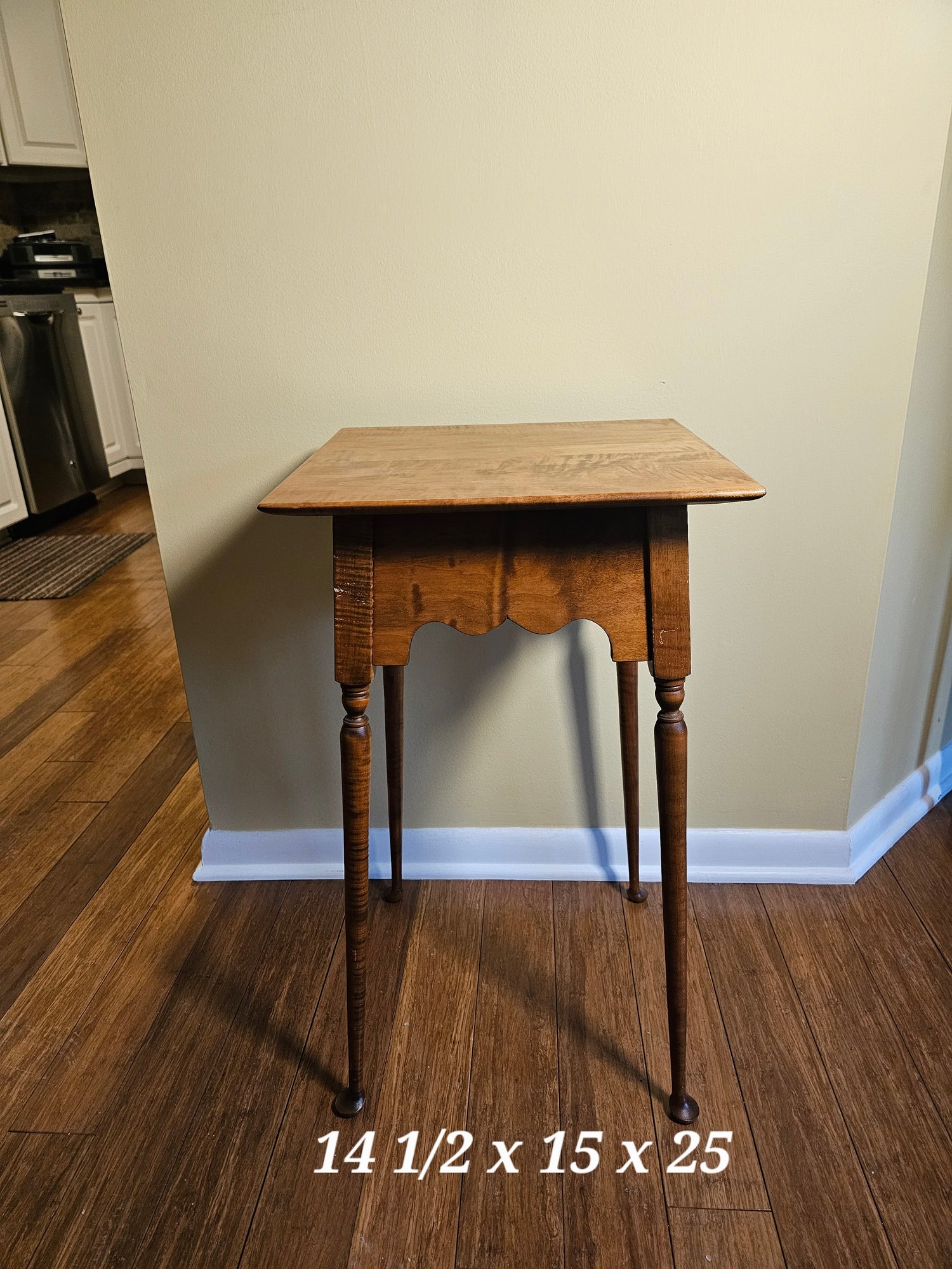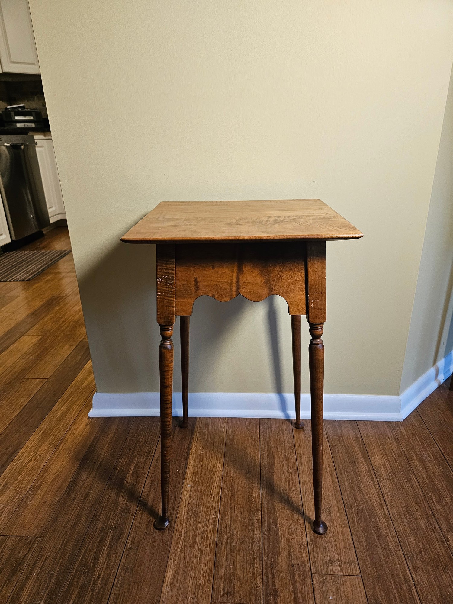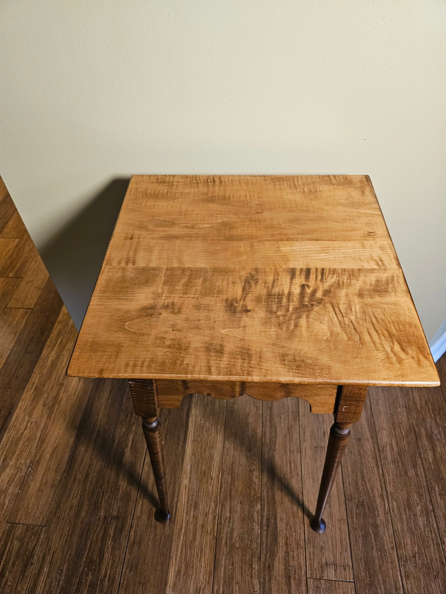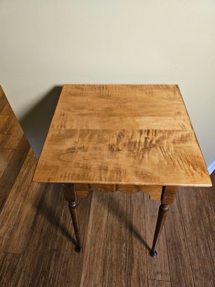River Bend Curly Maple Side Table, also referred to as a cookie cutter side table. Beautiful grain