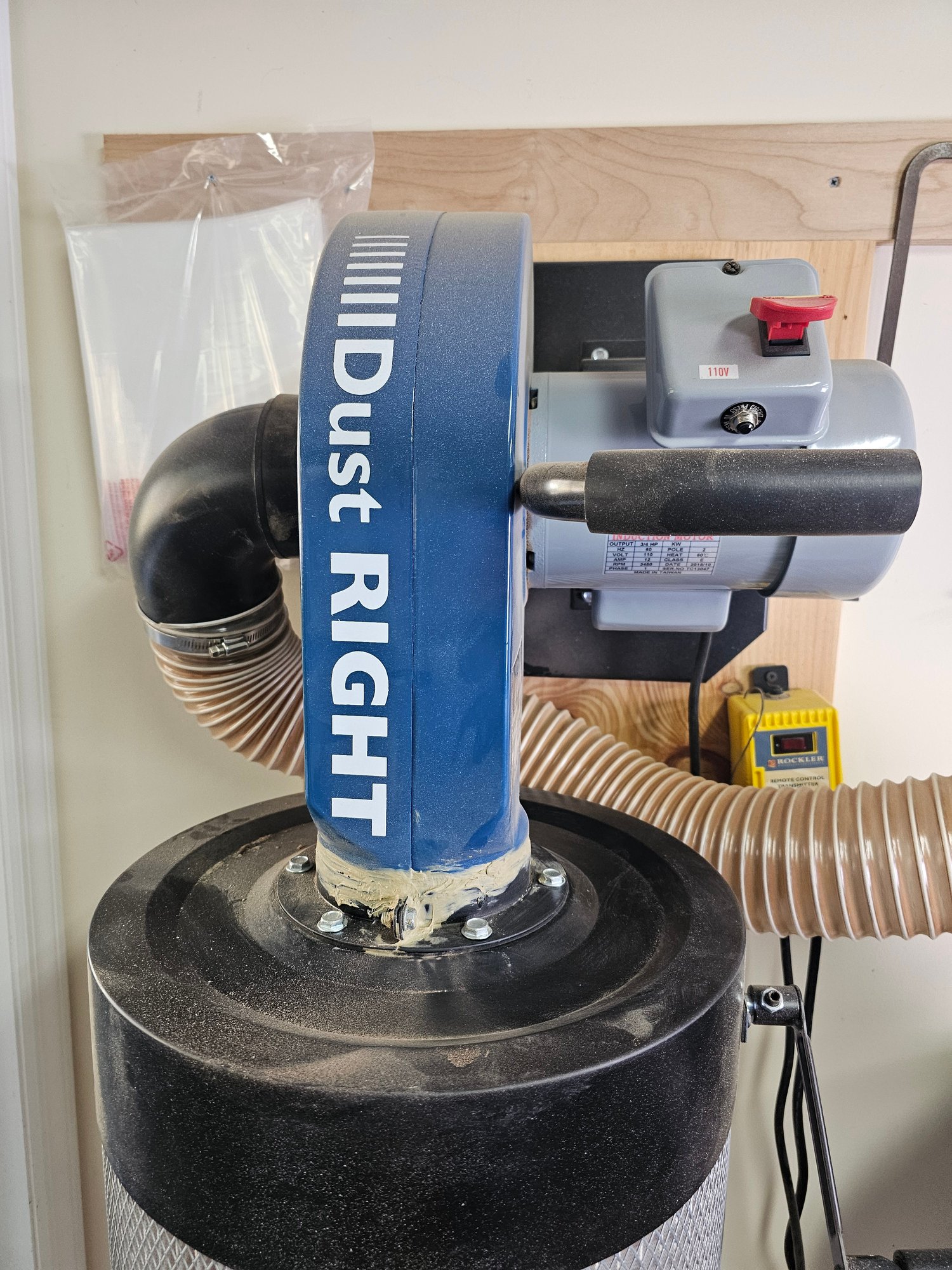 Rockler Model 58860 Dust Collector. Some pieces may be attached to the wall, please bring appropriate tools for dismounting.