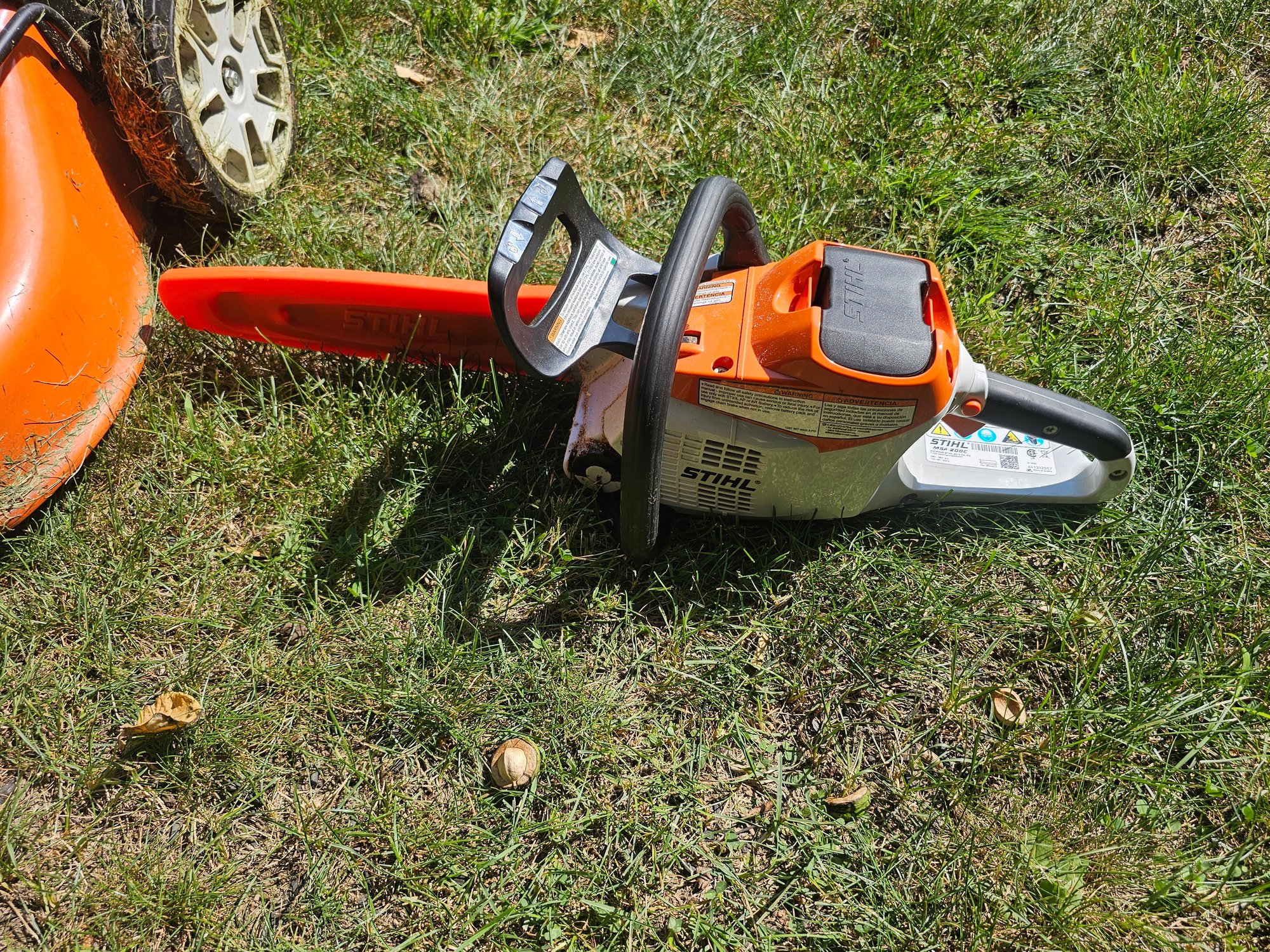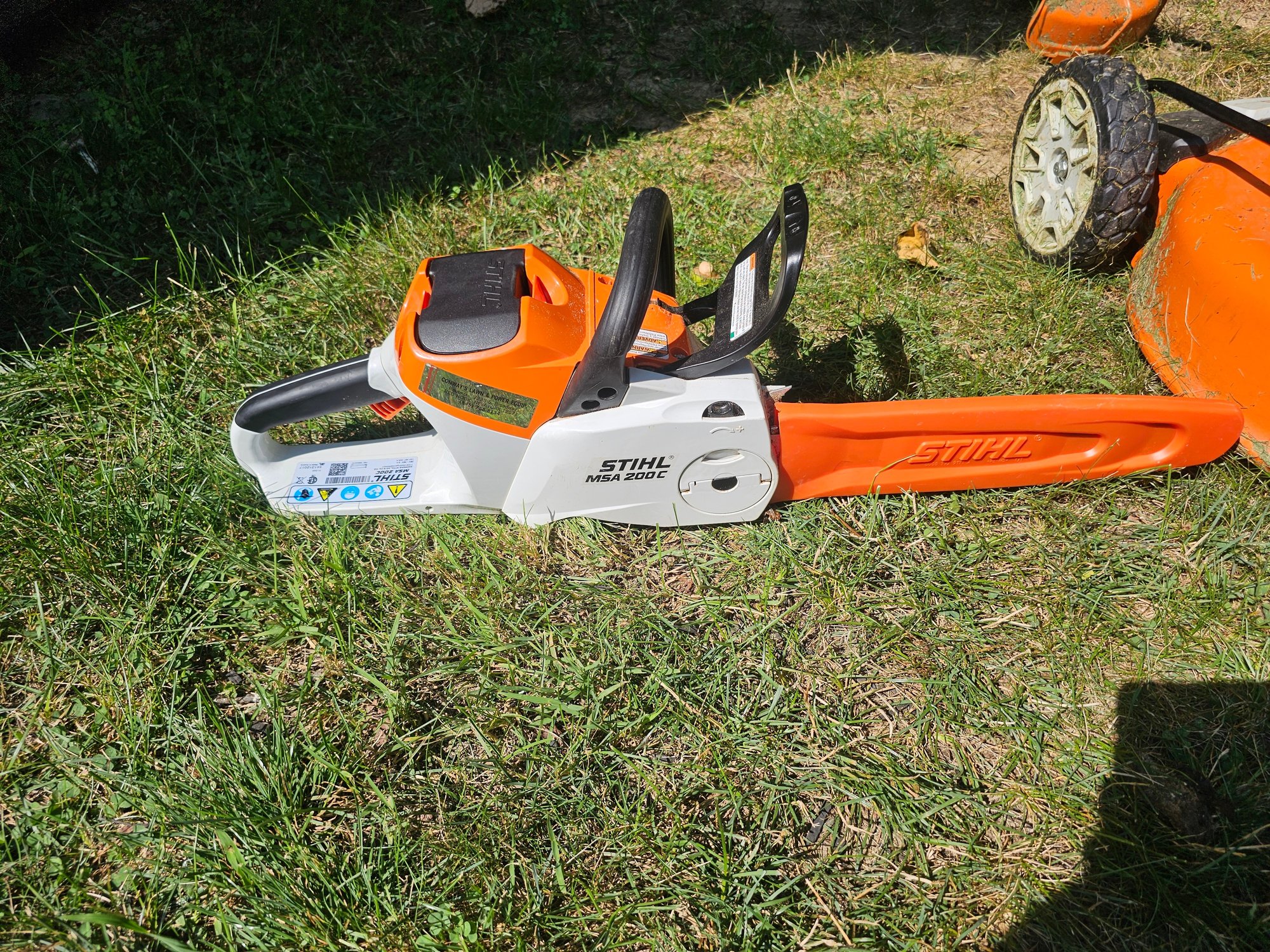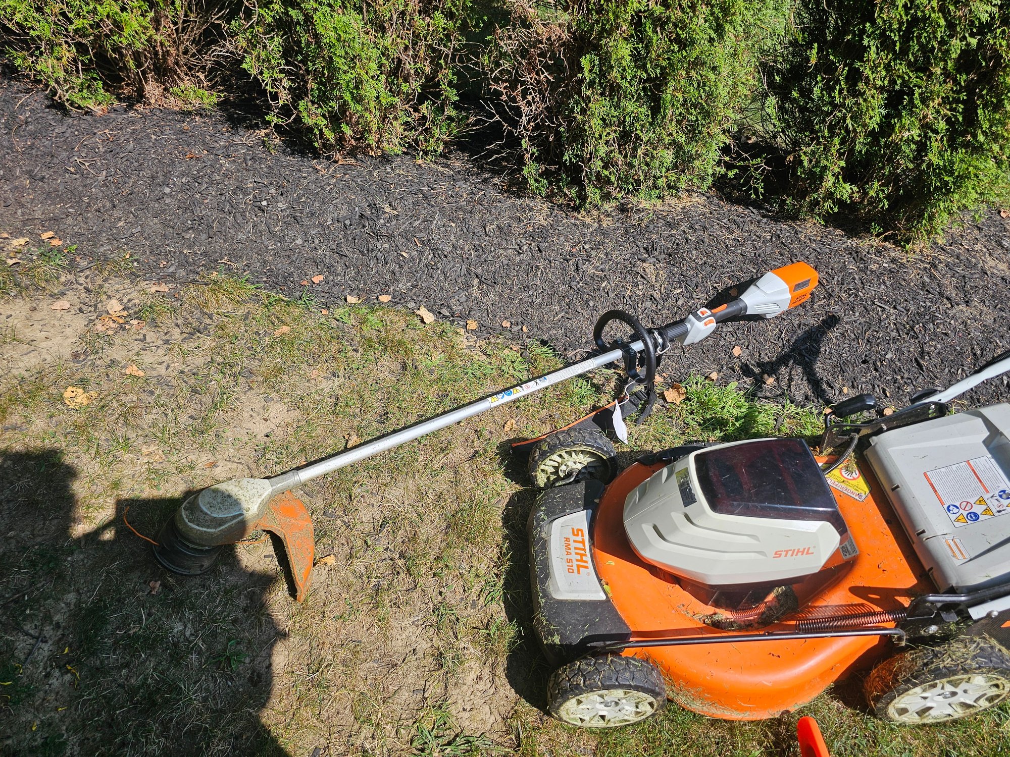 Group of Stihl Battery Powered Garden Tools (mower, trimmer and chainsaw)