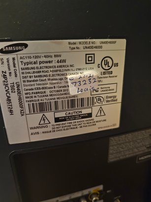 Samsung Televison Model UN40EH6000F