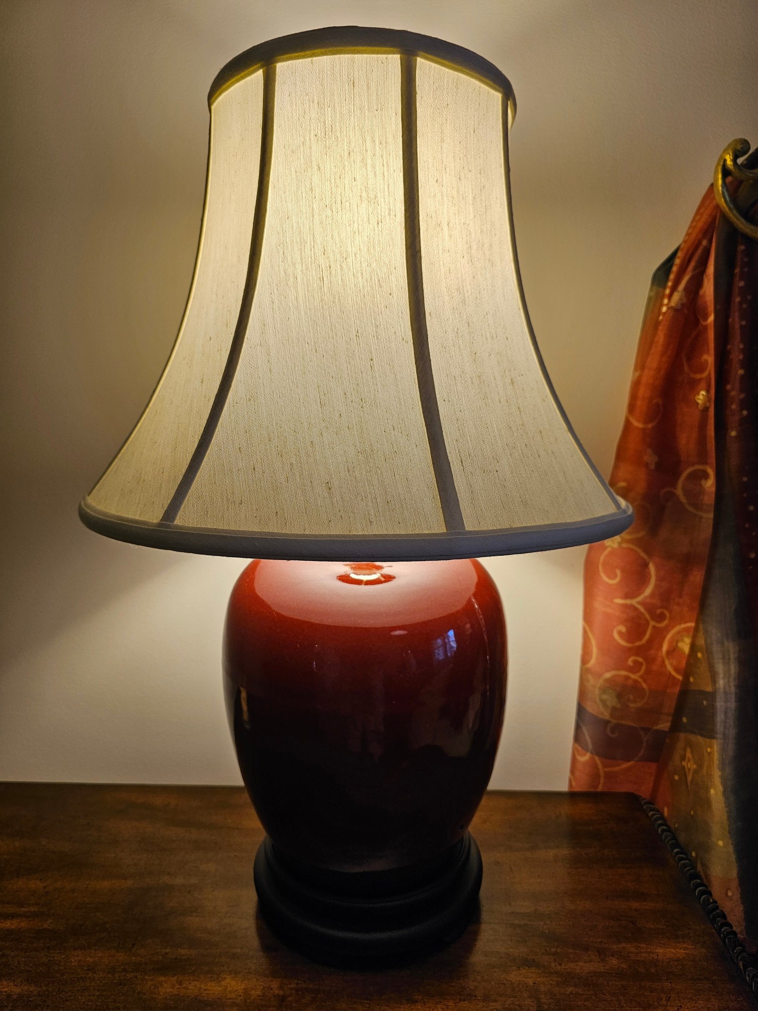 Single Deep Red Lamp 16 w shade and 28 tall