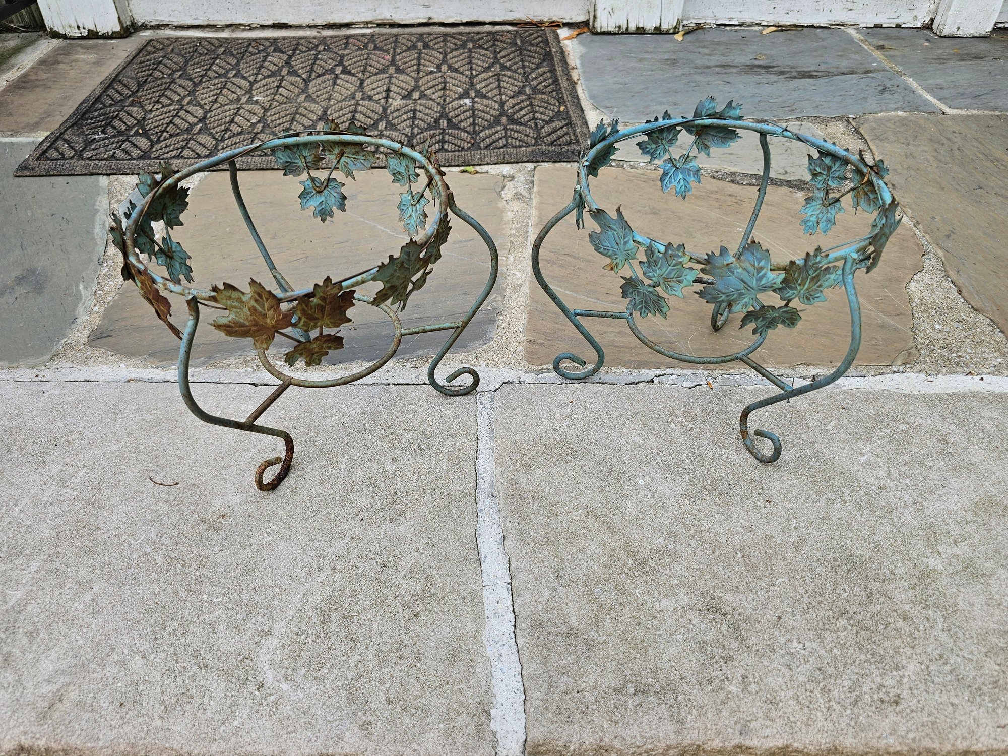 Small Pair of Open Leaf Urn, place your terra cotta planters inside these for a great look. 9x8