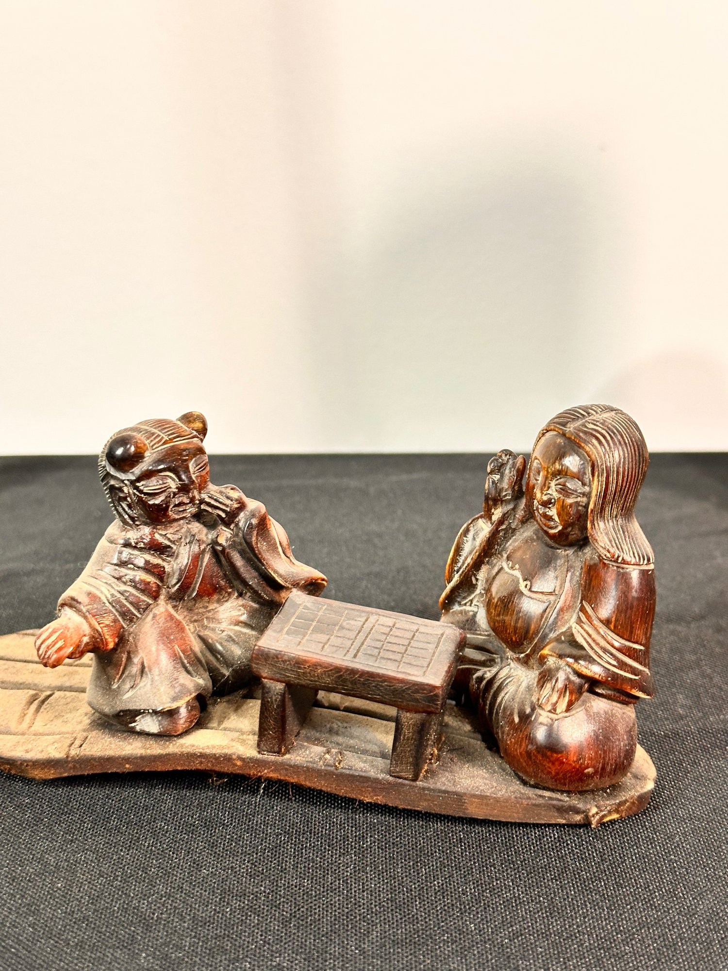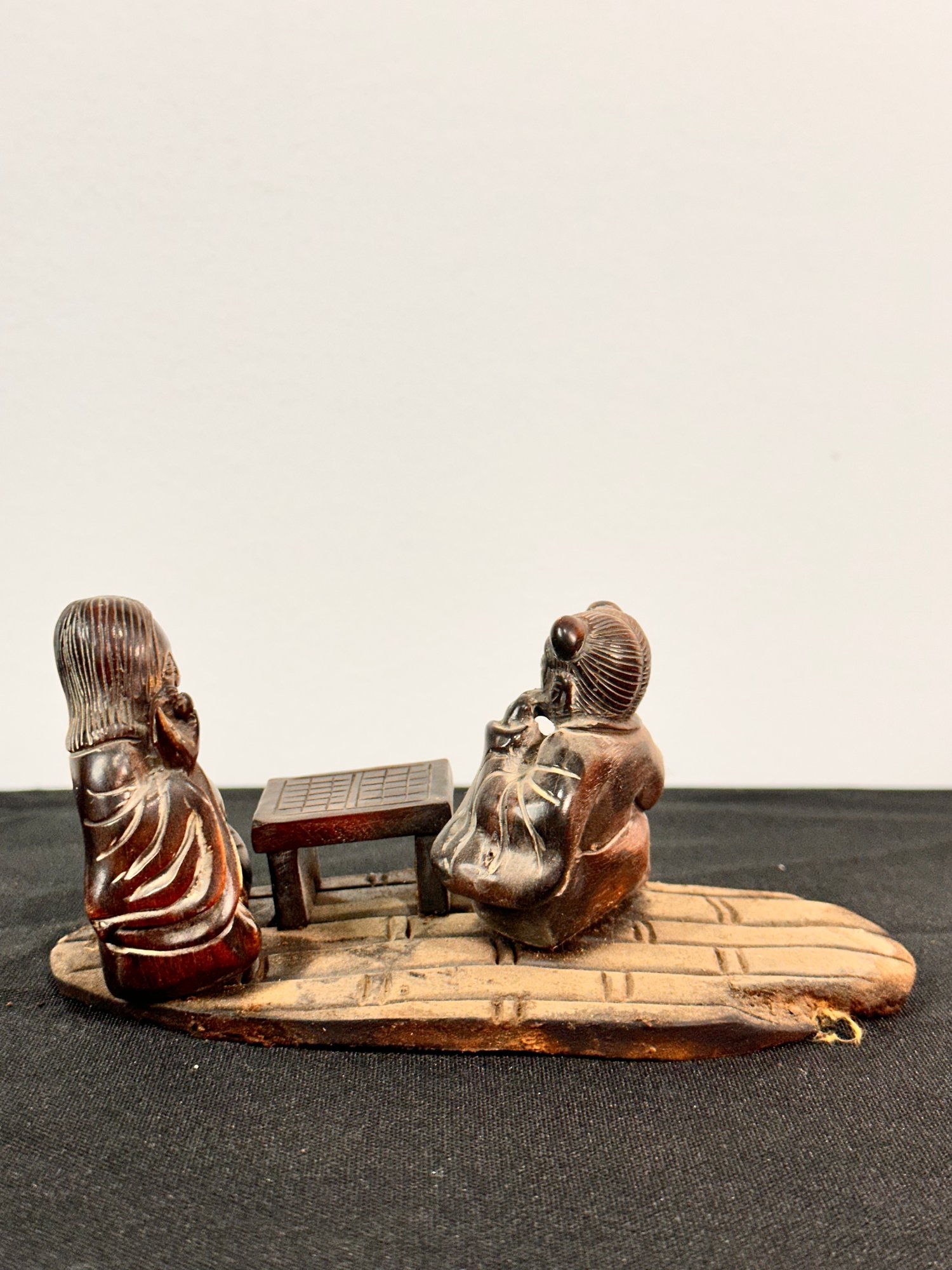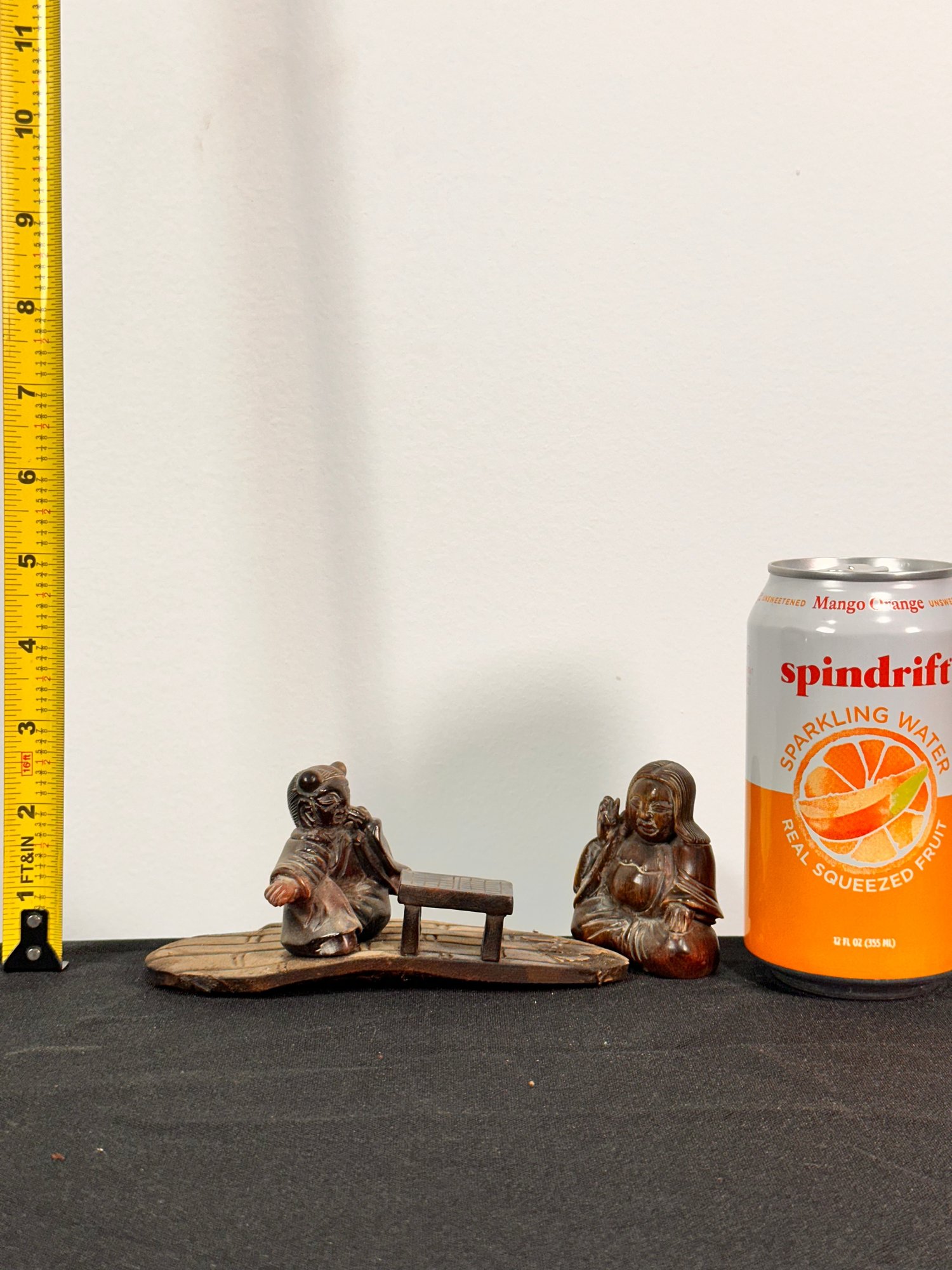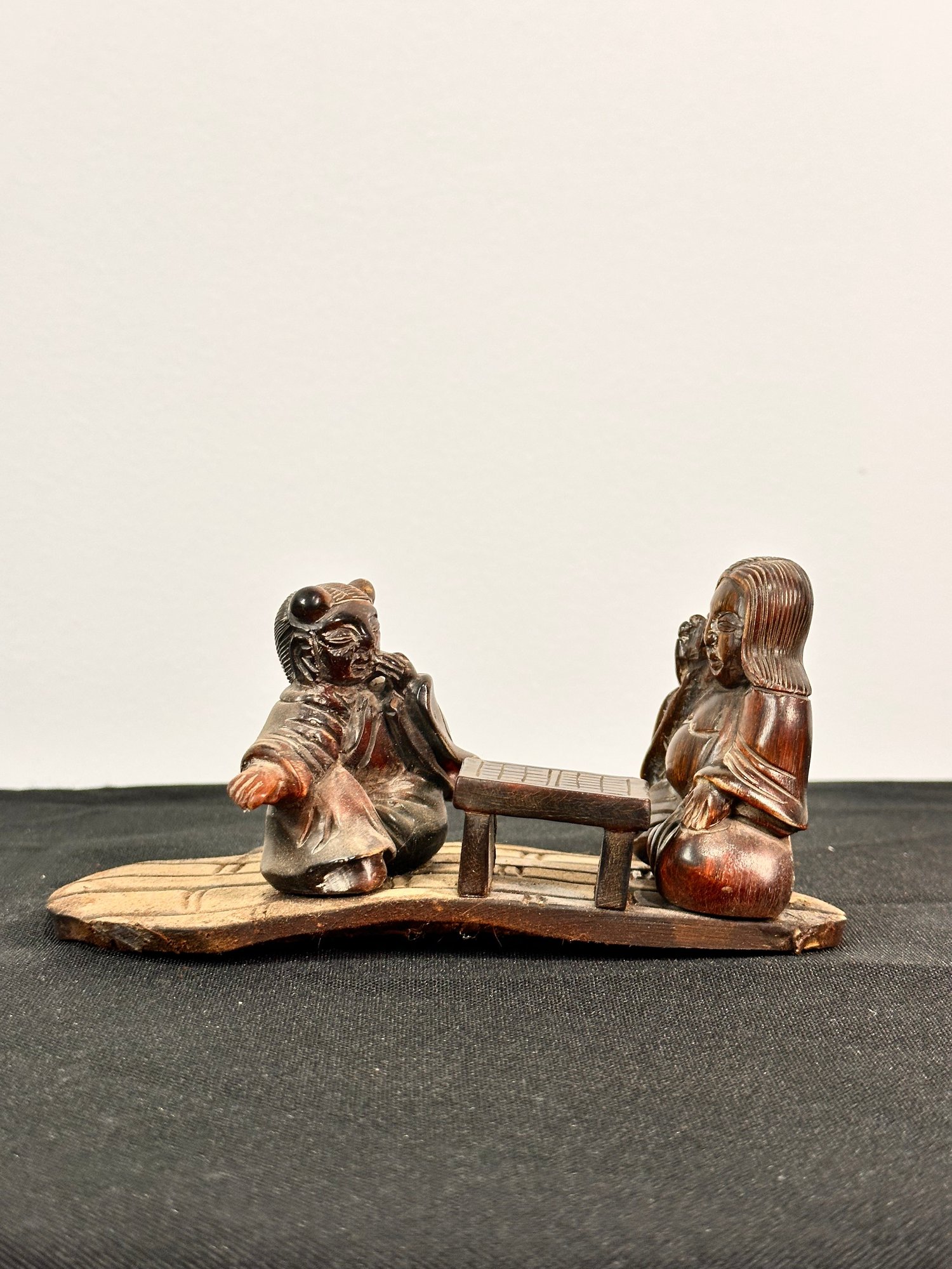 Small Rosewood Carved Figures, one of the figures is loose and needs to be reattached to its base