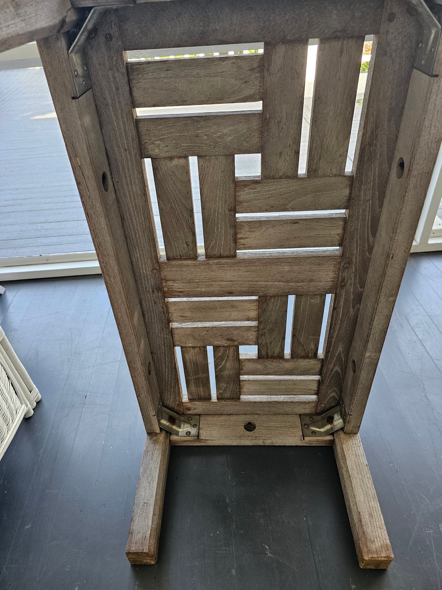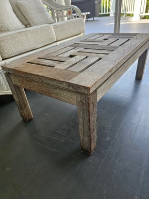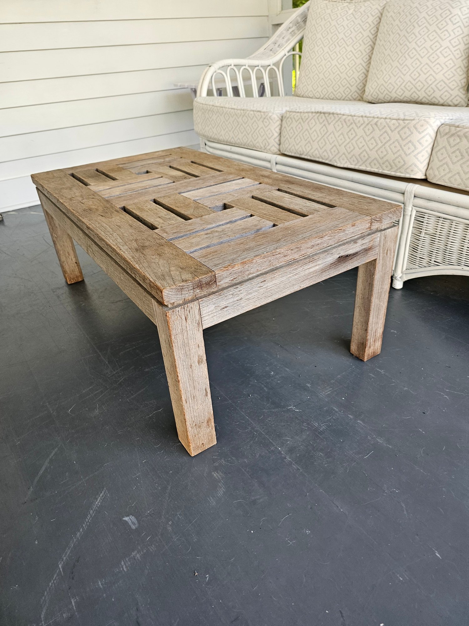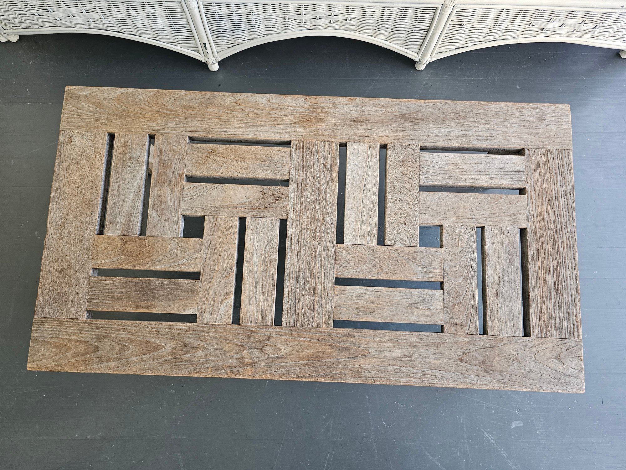 Teek or similar wood Coffee Table, has a more interesting geometric patterned top than most other teek coffee tables 37x20x14