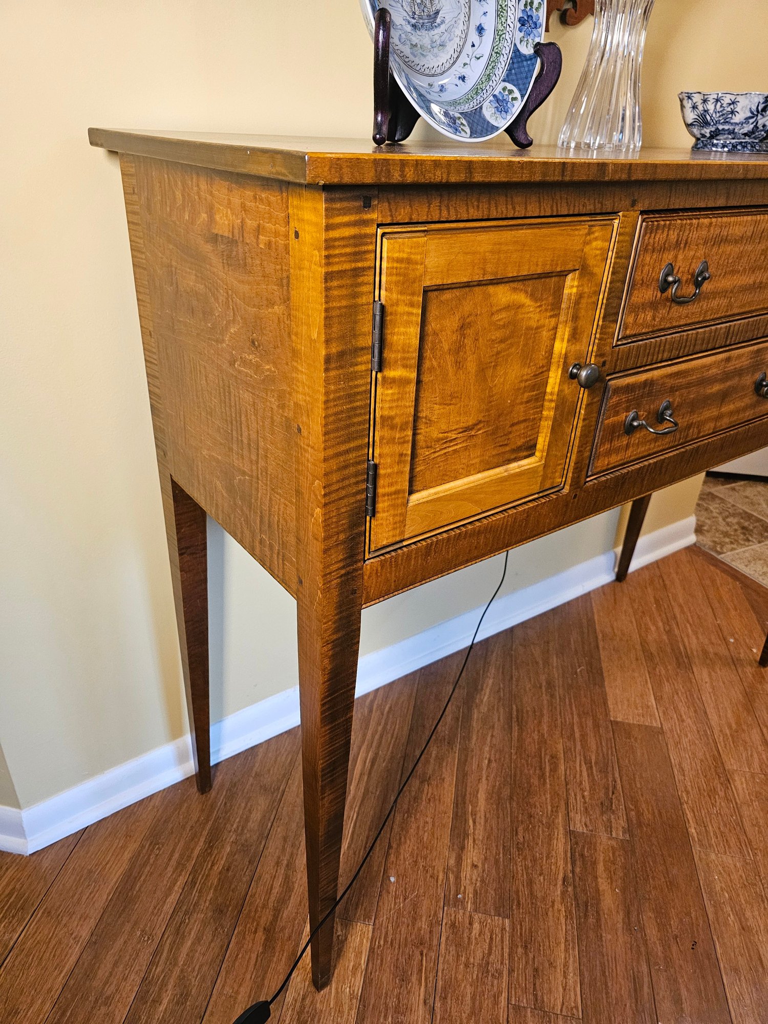 Tiger Maple Hepplewhite Style Huntboard American Server, not marked.