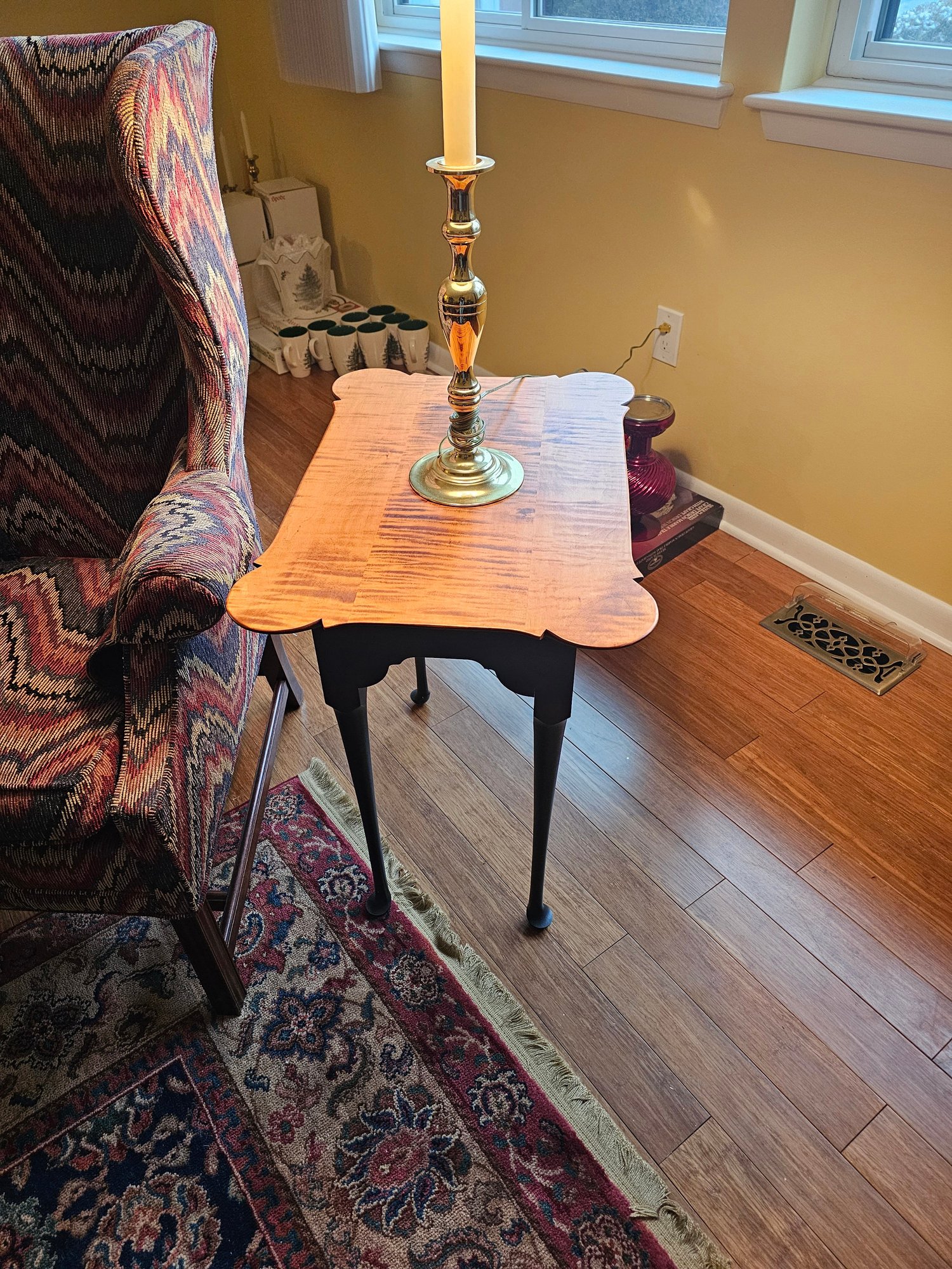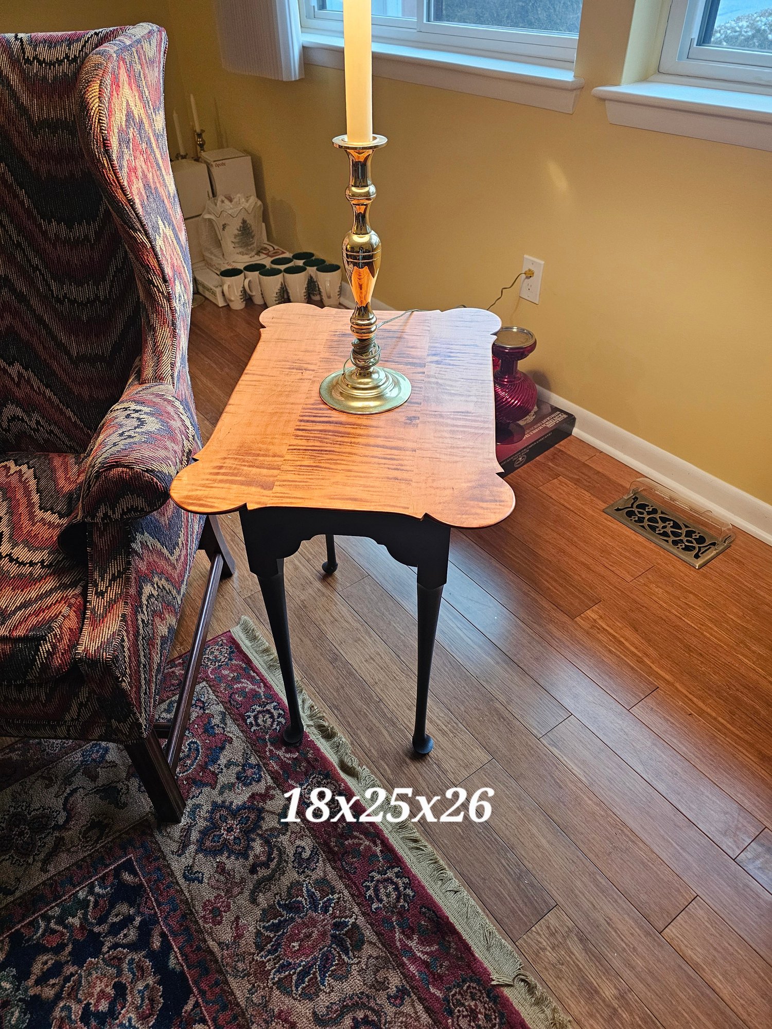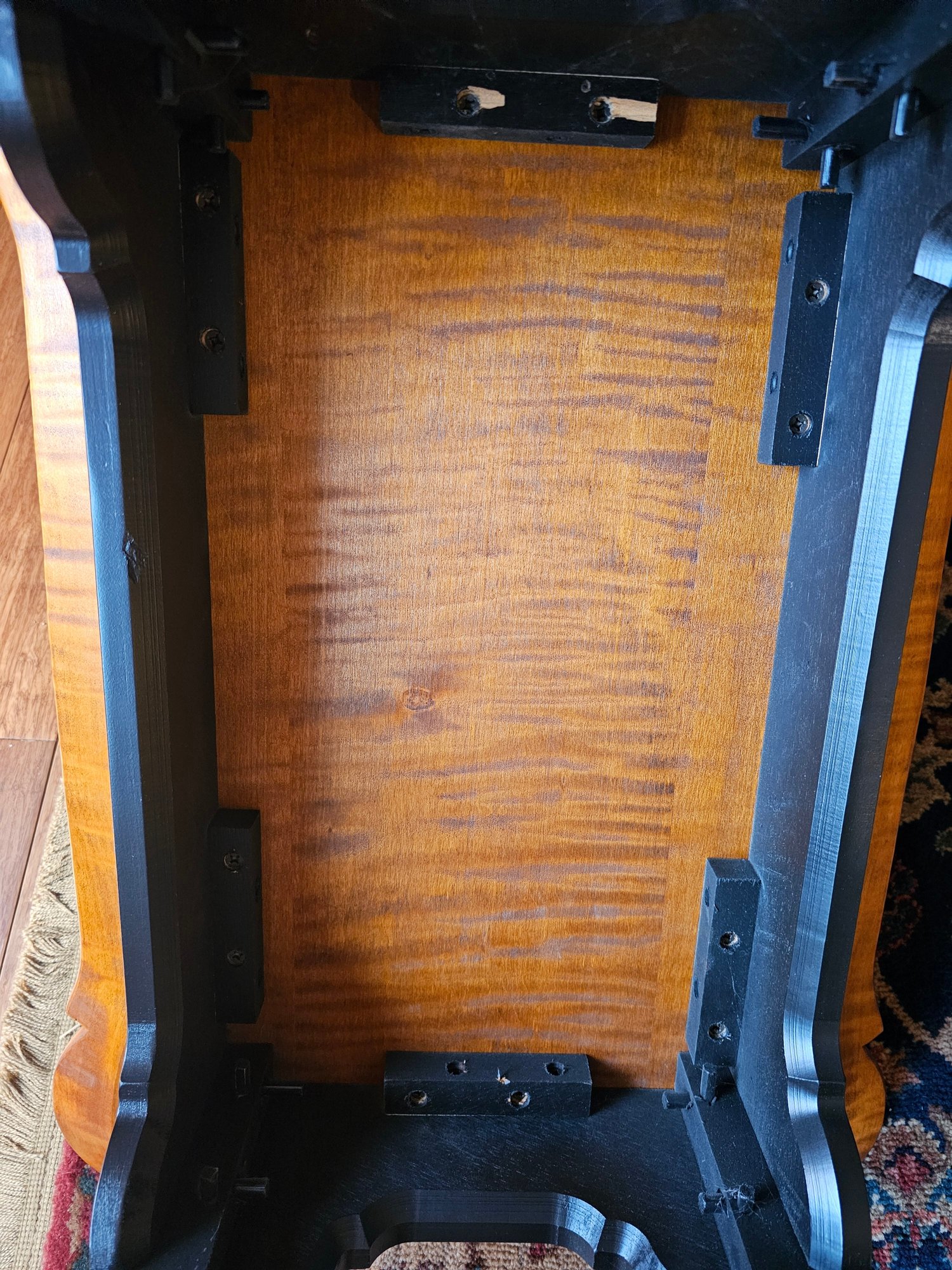 Tiger Maple Top on Black Painted Base. not marked but very well made.