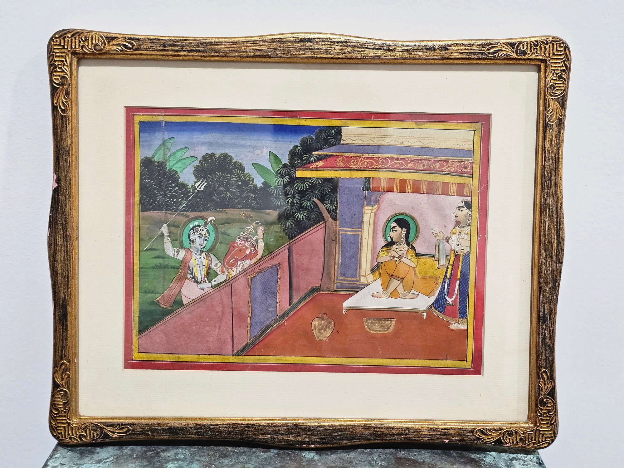 Traditional Indian Small Painting of Krishna and Ganesha 16x12