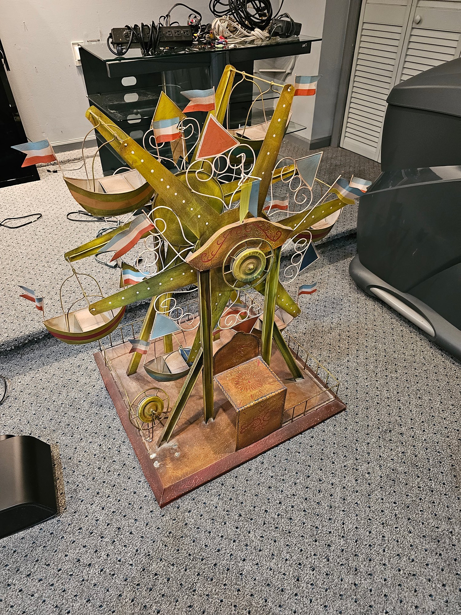 Vintage Tin Toy Carousel, 33 tall on a 24x24 base. You'll notice one piece on base is detached.