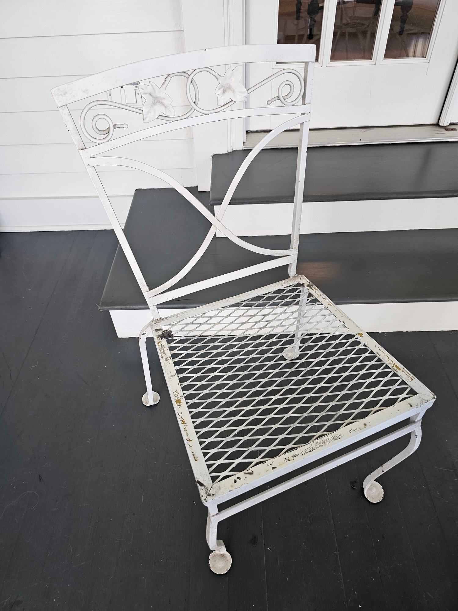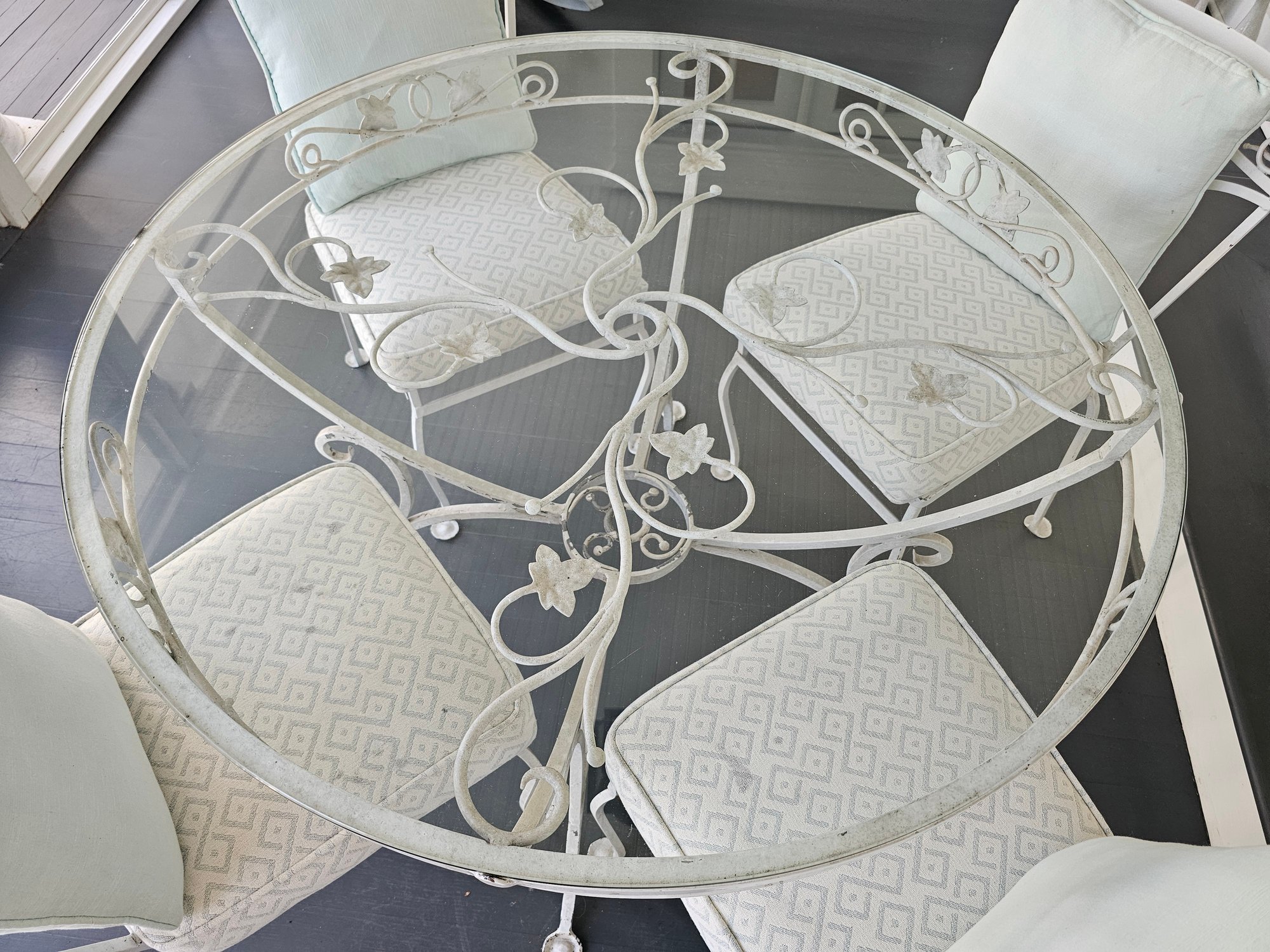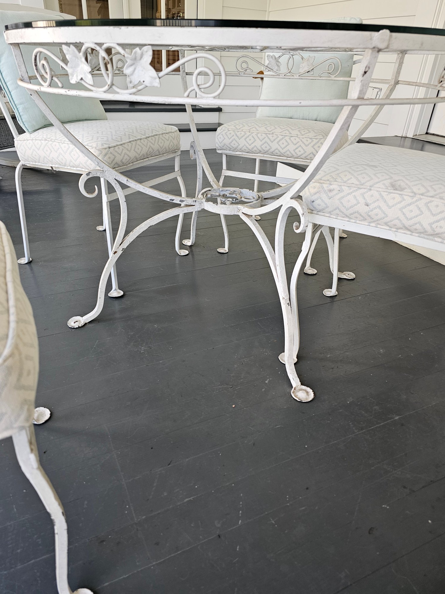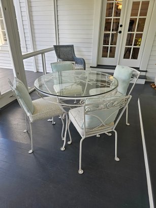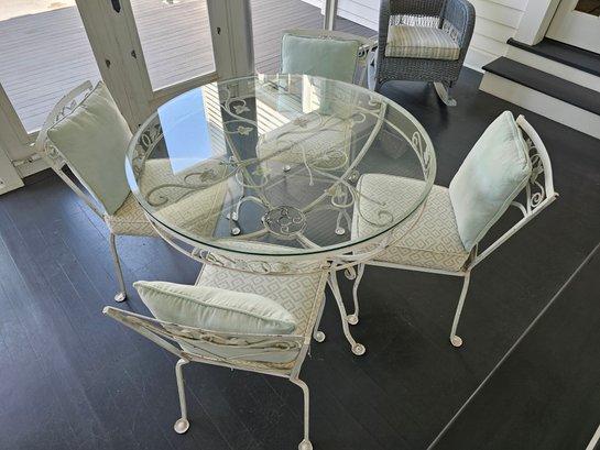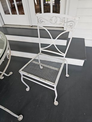 Vintage Wrought Iron Patio Table and Chairs, measures 42 inches in diameter