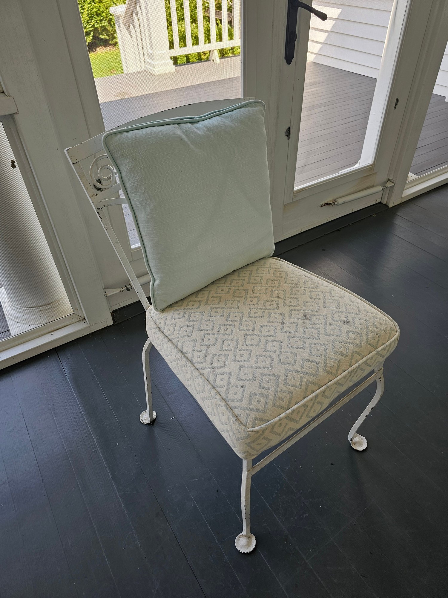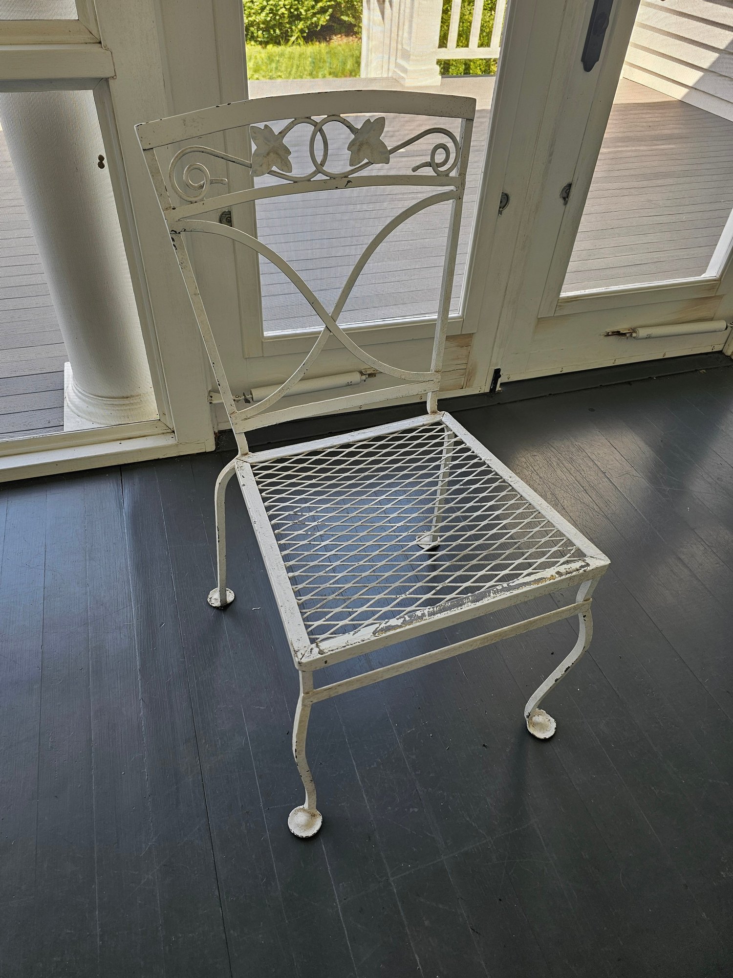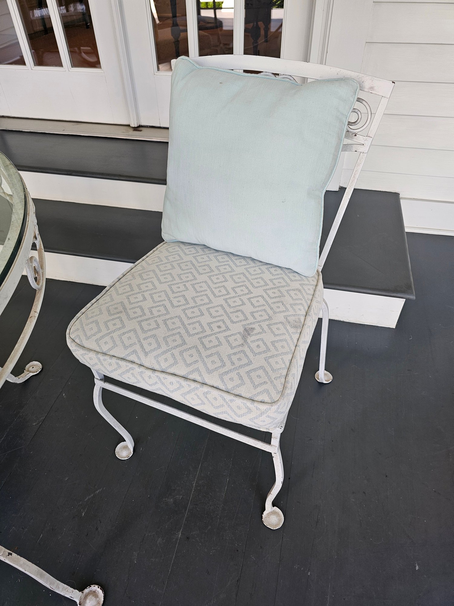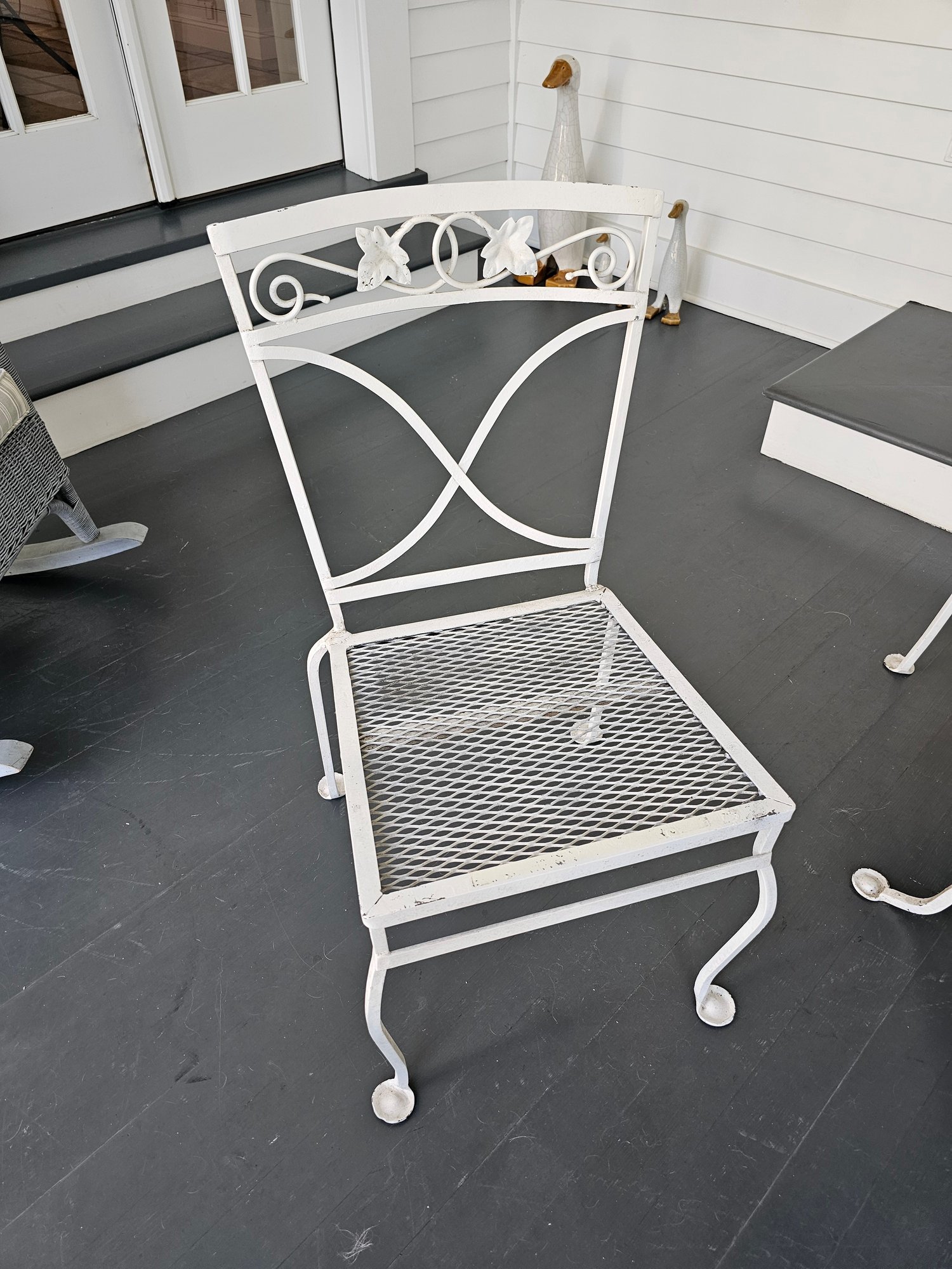 Vintage Wrought Iron Patio Table and Chairs, measures 42 inches in diameter