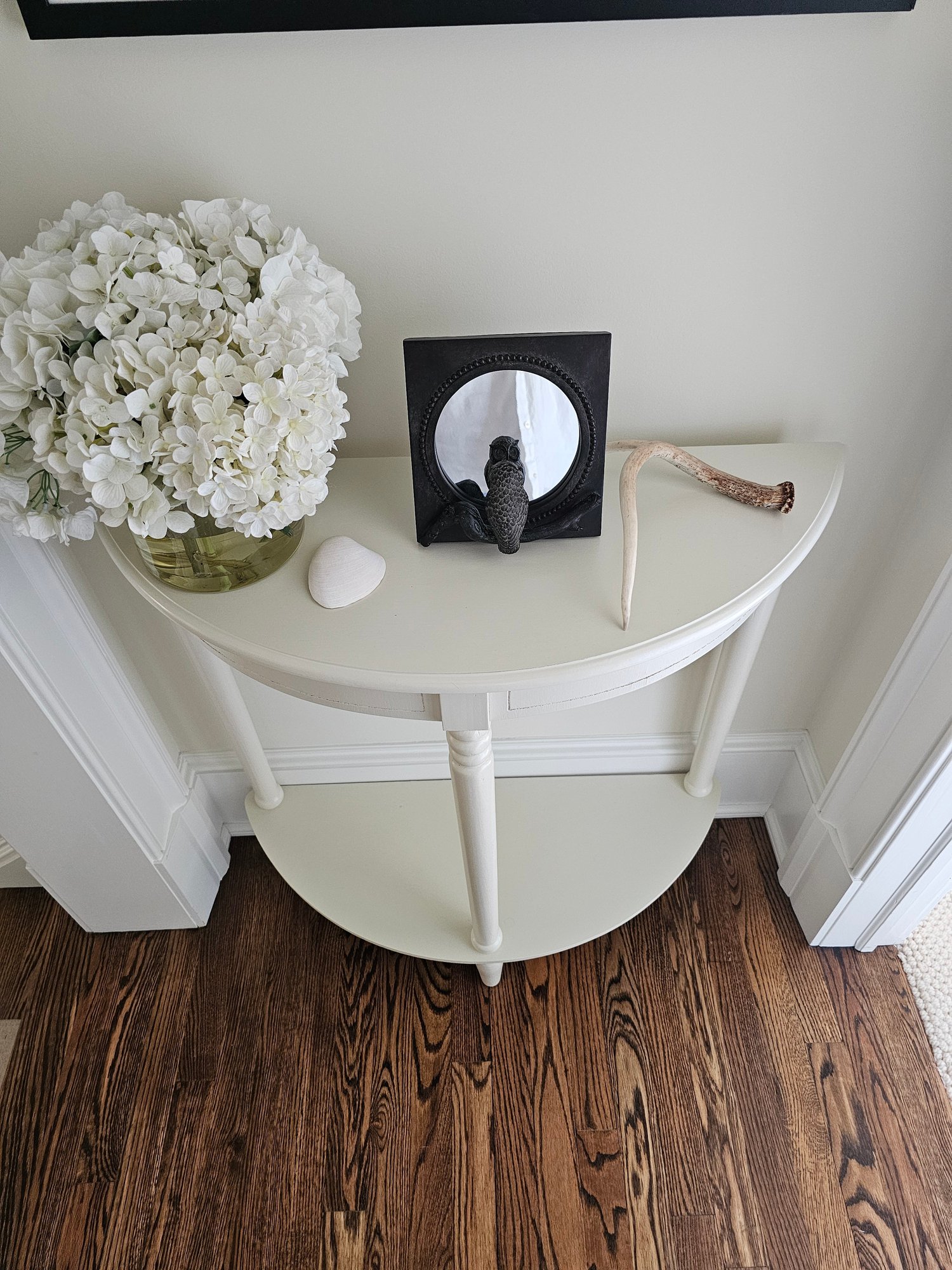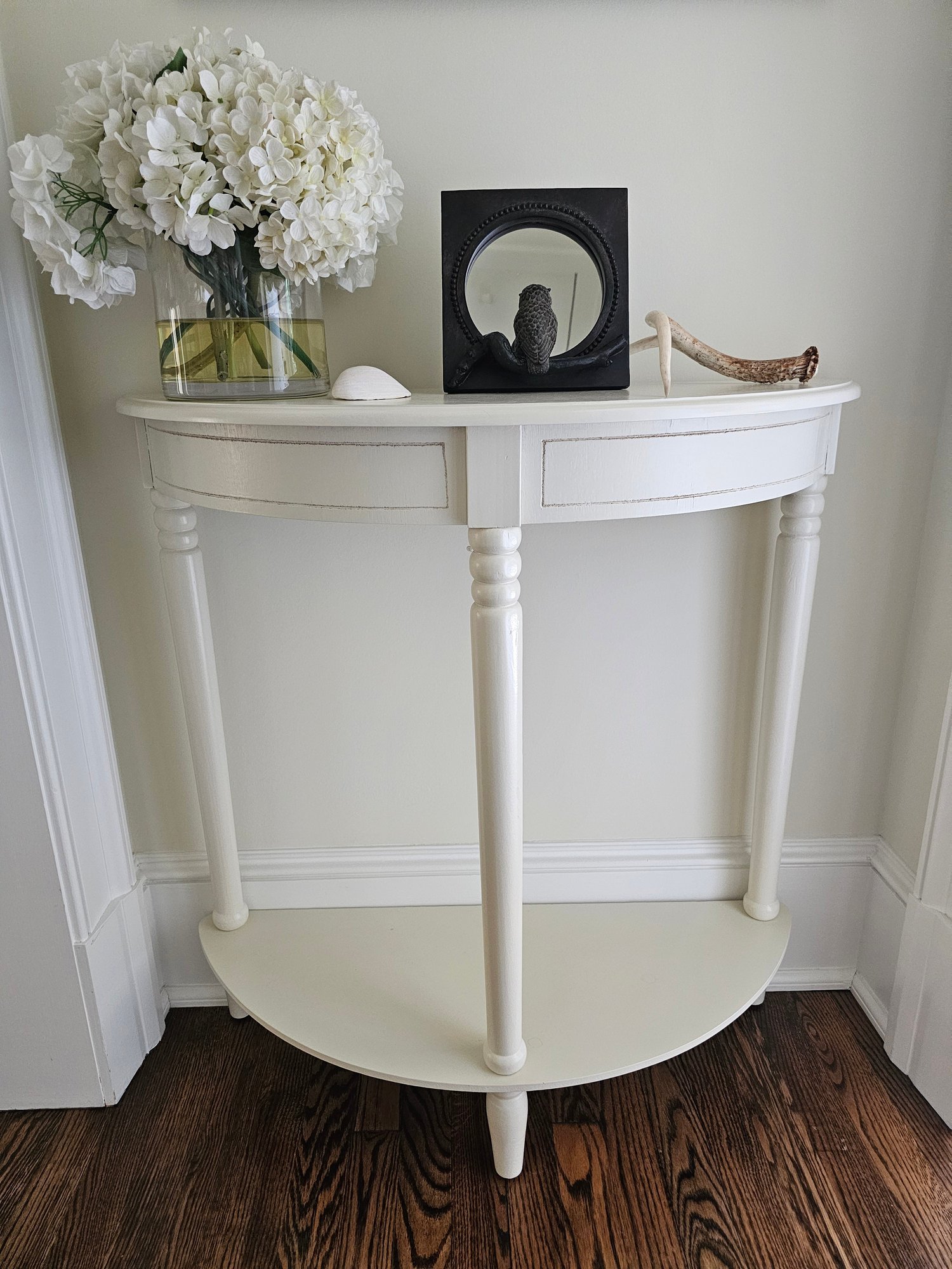 White Half Moon Hall Table 32x32x12