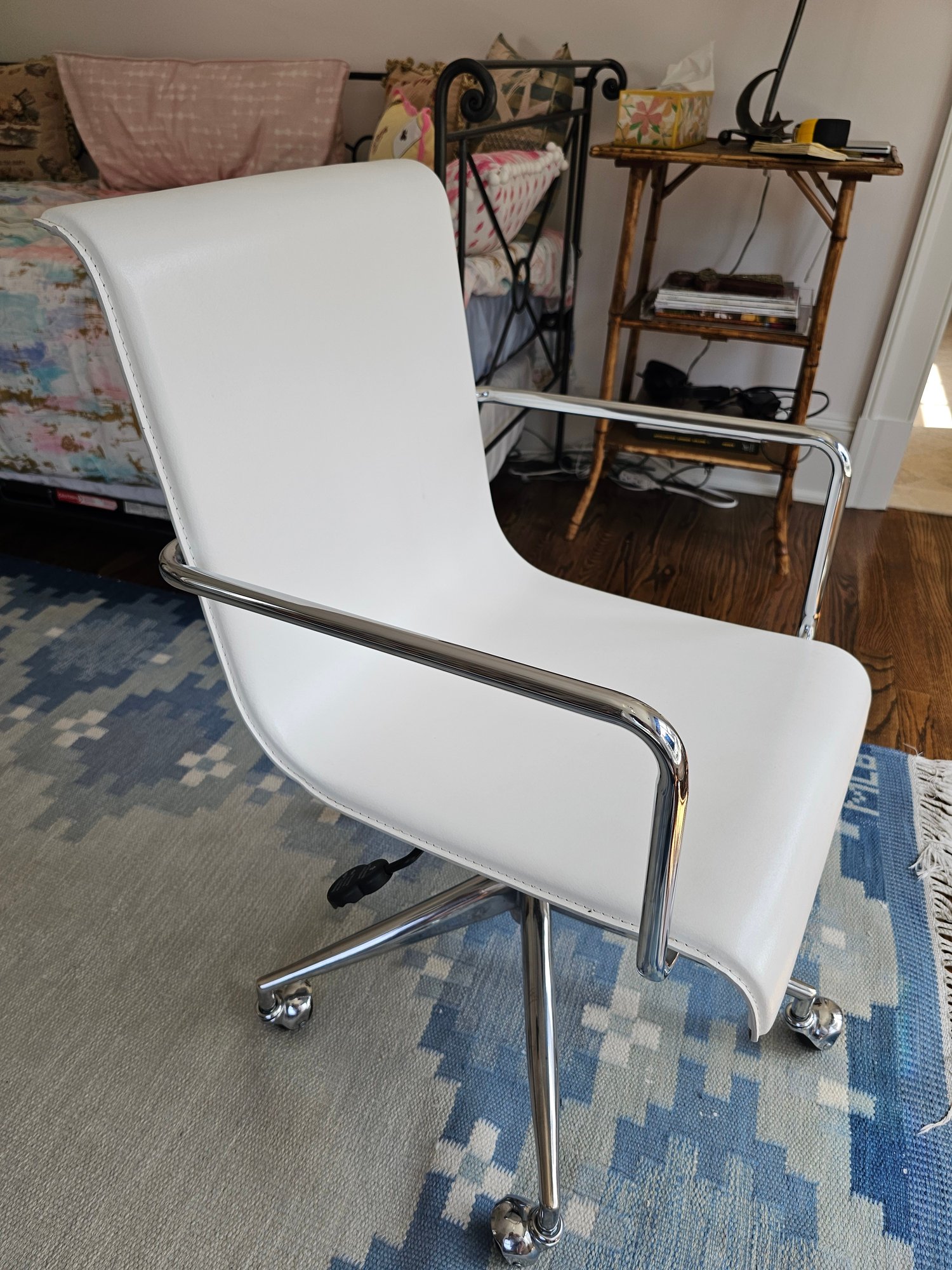 White Leather and Chrome Office Chair measures 21x20x33