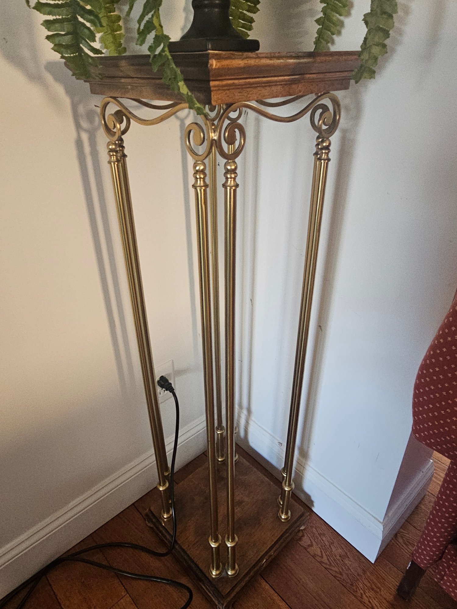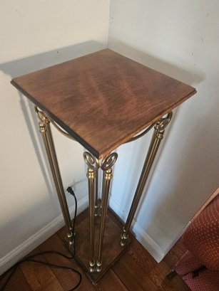 Wood and Brass Plant Stand 11 1/2 x 11 1/2 x 41 1/2