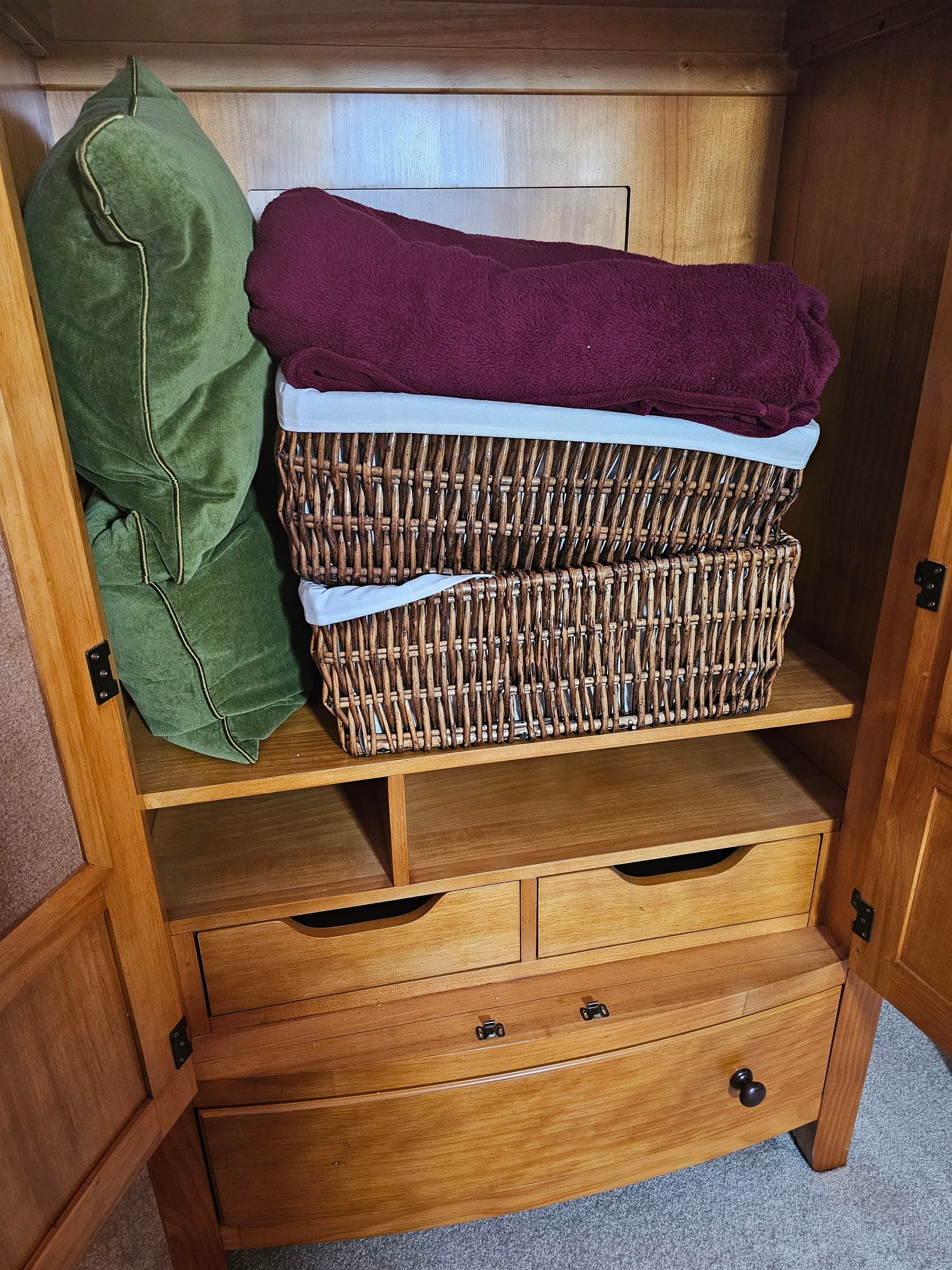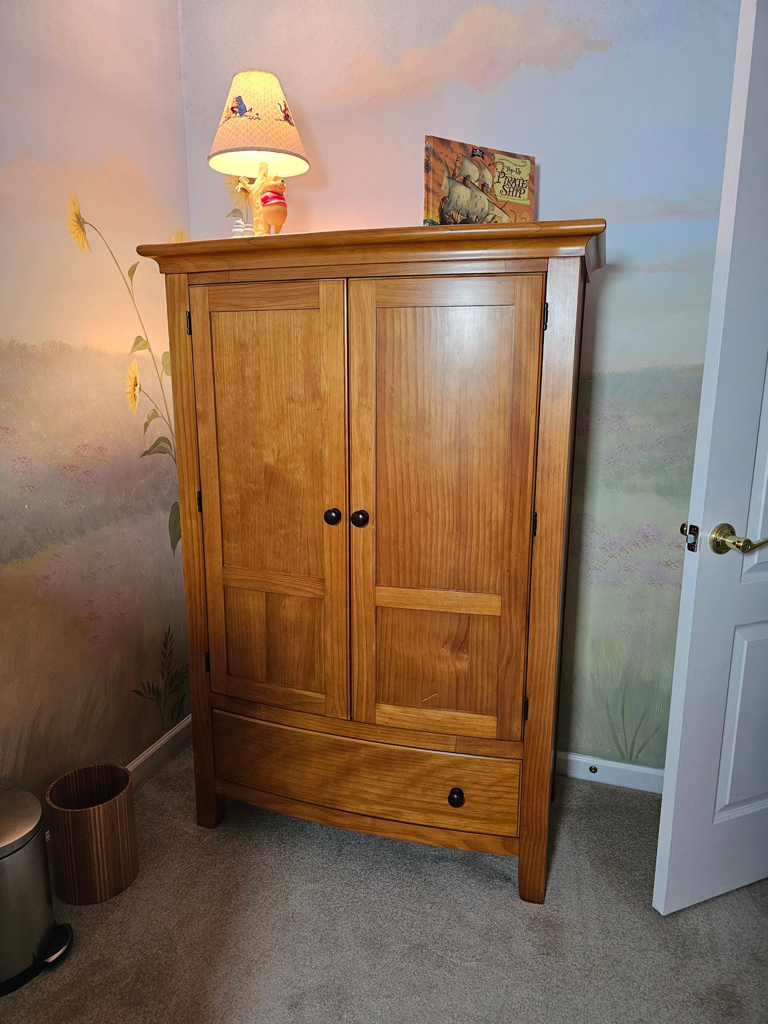 Wood Armoire (notice one drawer pull is missing. 42x21x62