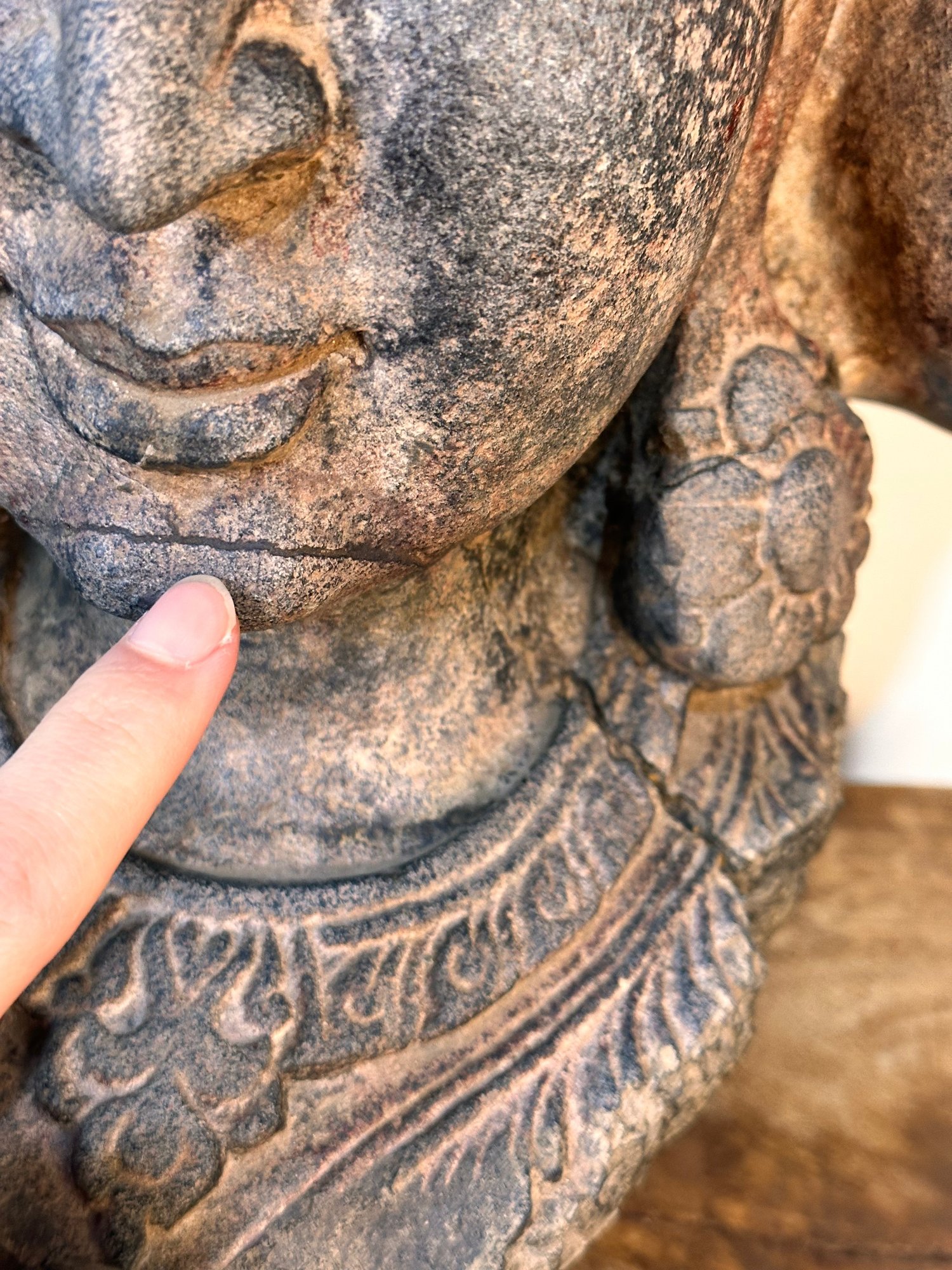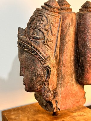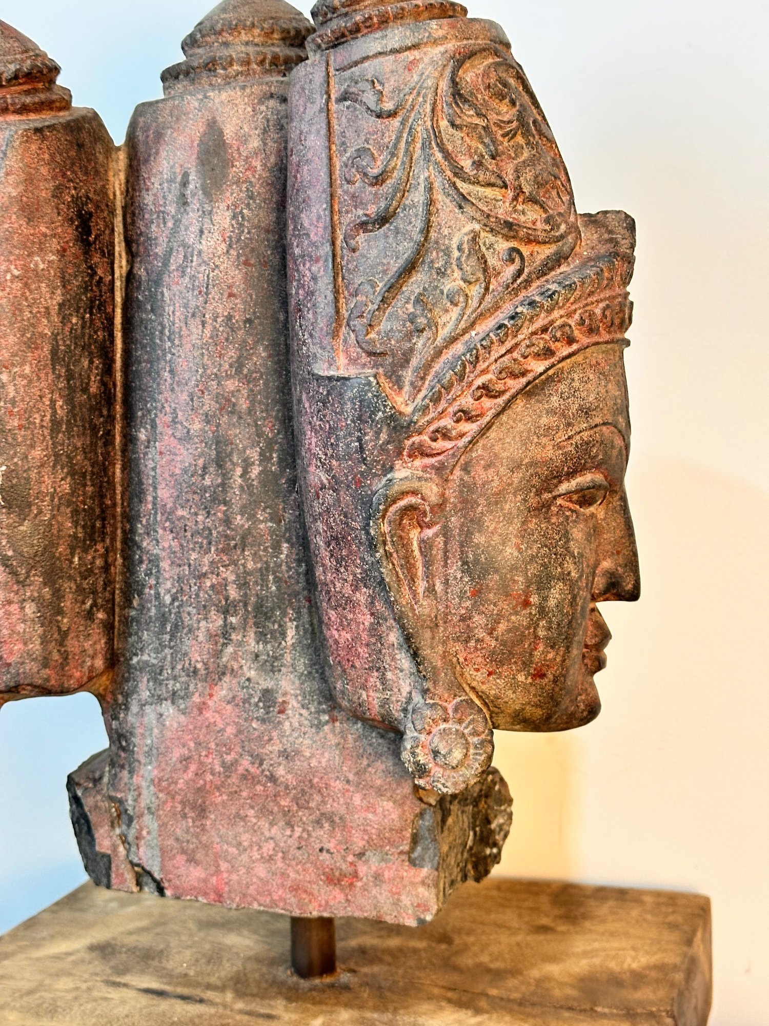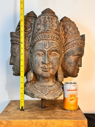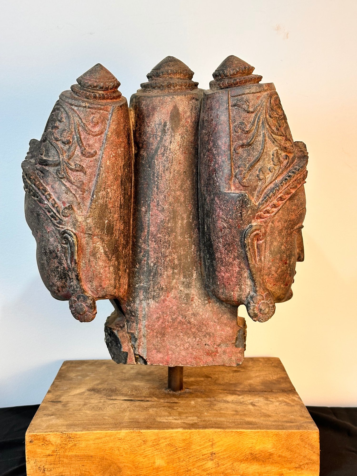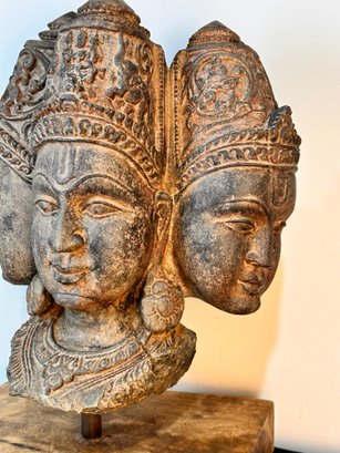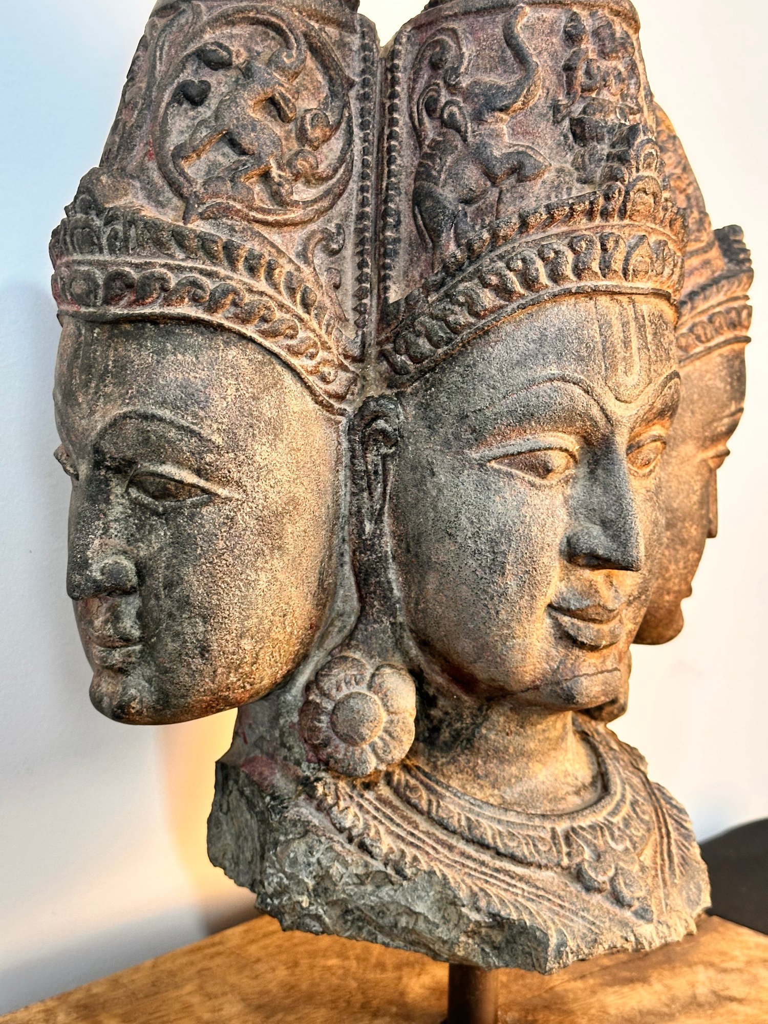 Wood Carved trimurti of Brahma Vishnu and Shiva