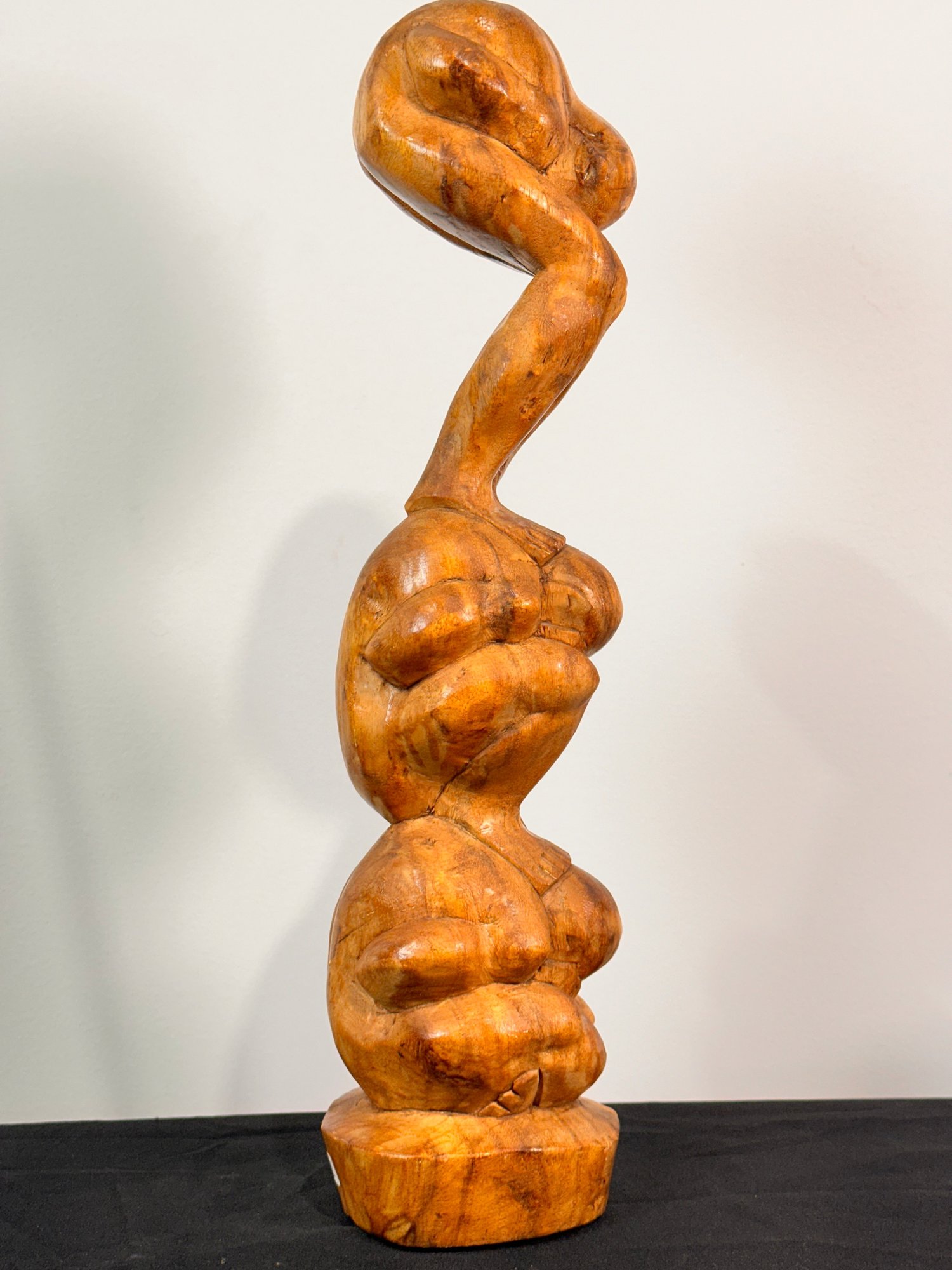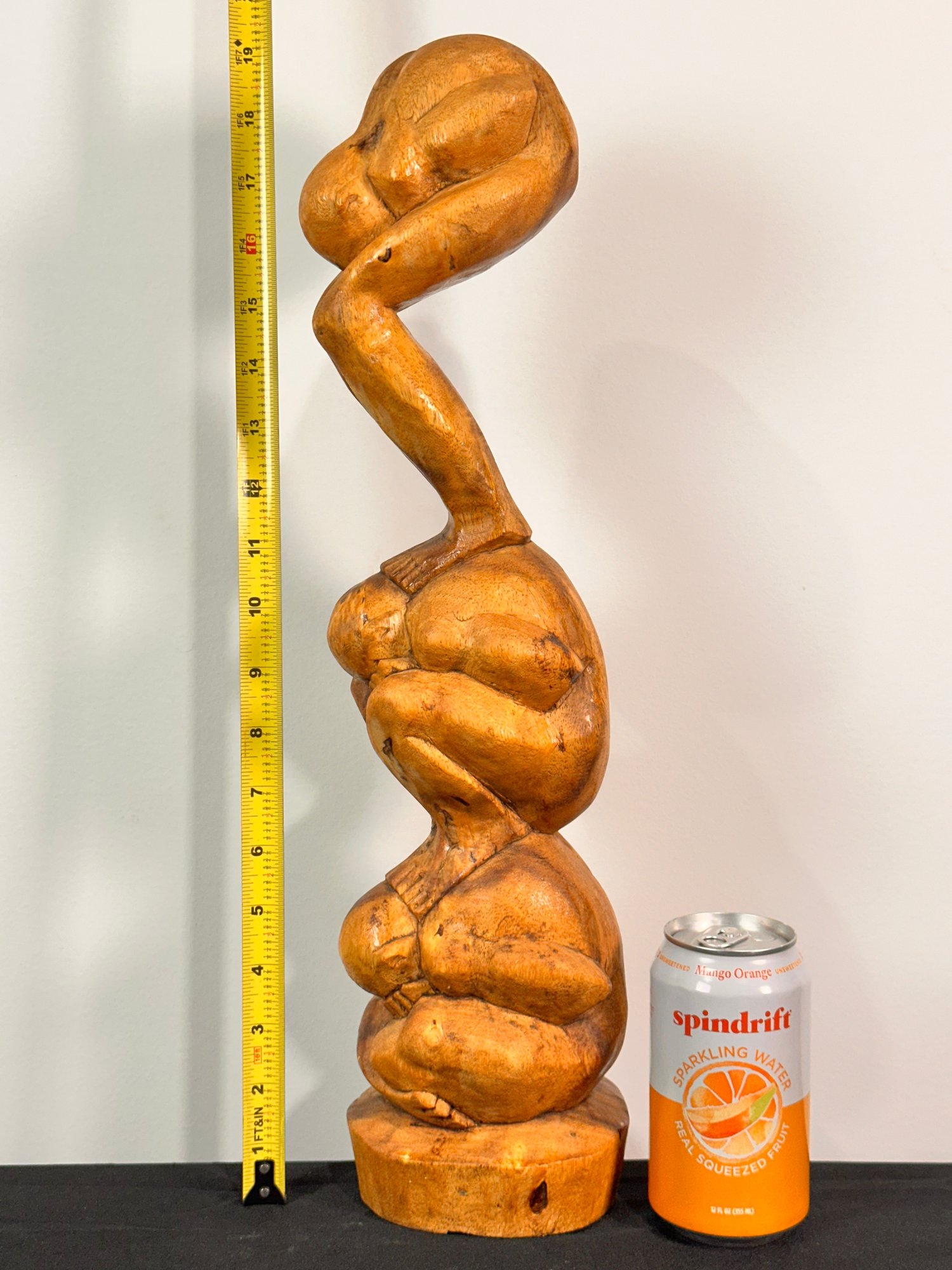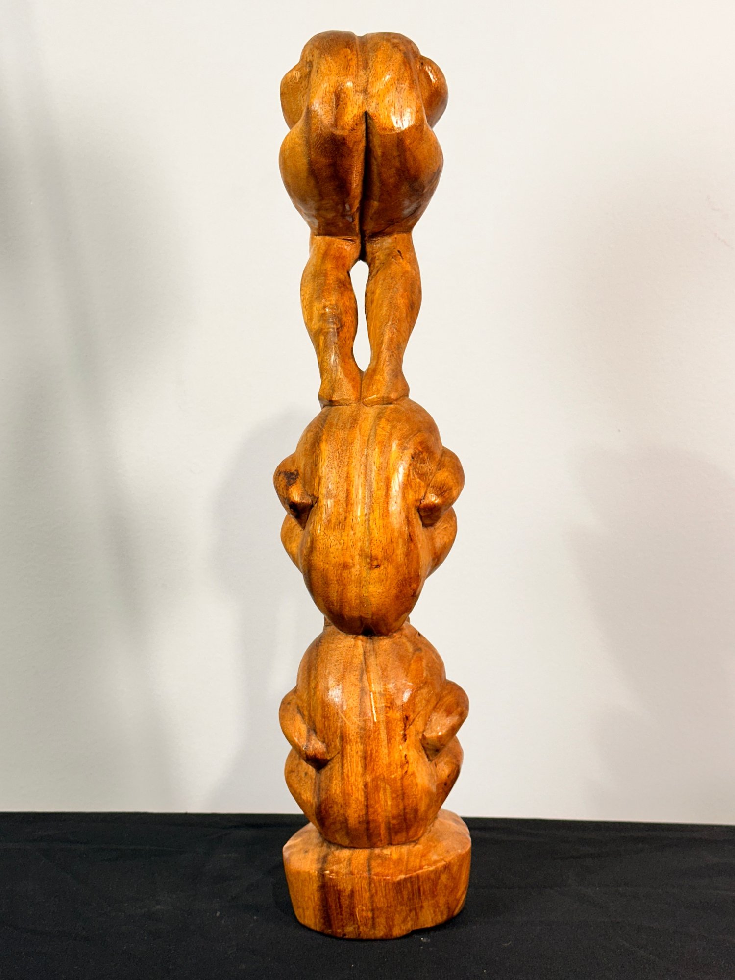 Wooden Statue of Three Men/Weeping or meditating Buddhas stacked with eyes covered. Has sticker on base made in Indonesia