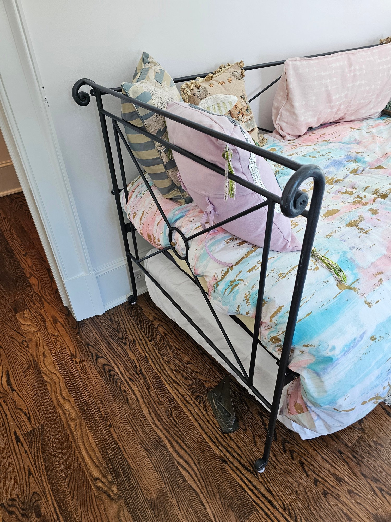 Wrought Iron Day Bed by Charles P Rogers with Hideway Mattress Beneath. Linens may or may not be available. Mattresses included.