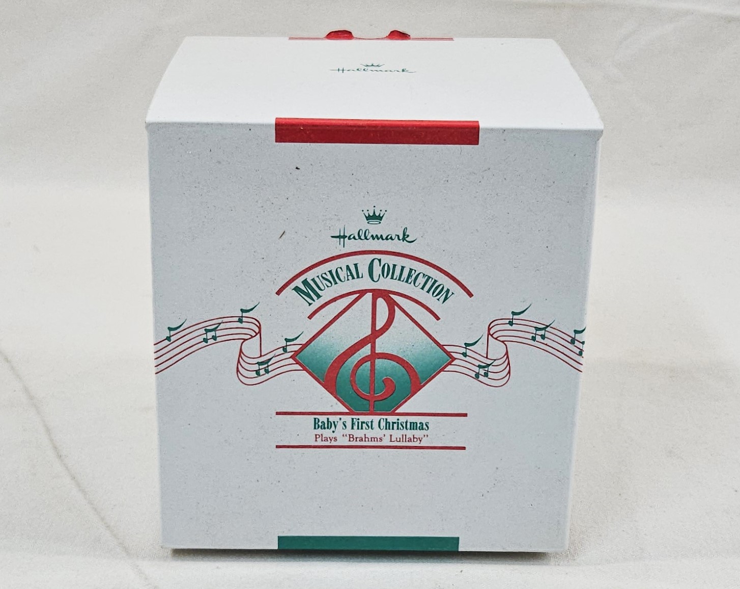 Notes: 1980's Hallmark Musical Collection Baby's First Christmas Plays "Brahms' Lullaby Musical Decoration is pre-owned showing light signs of wear commensurate with age & use, decoration retains original box, box may have individual small blemishes or flaws, decoration is tested & working, and decoration has no major apparent identifiable blemishes or flaws. Please review pictures.
