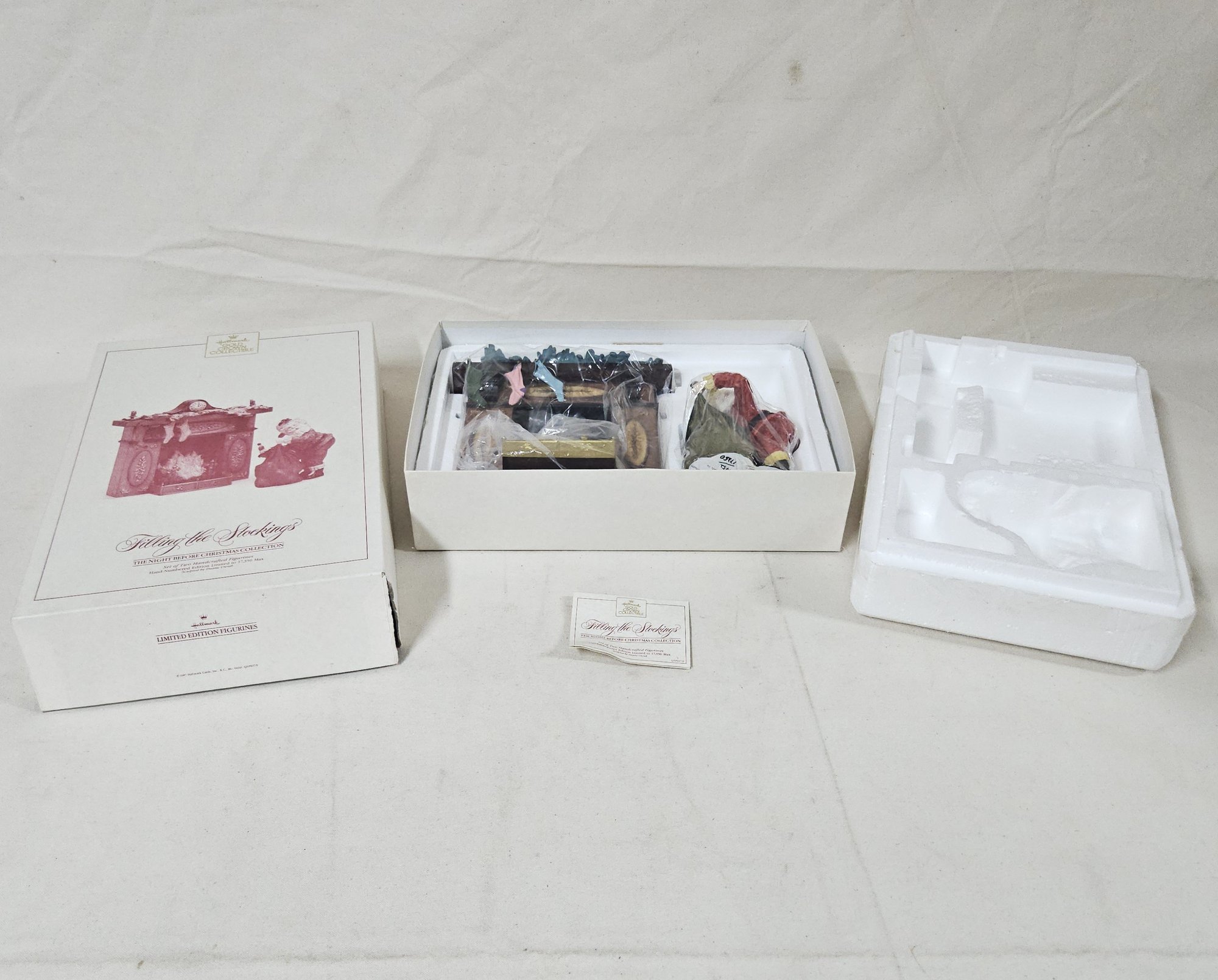Notes: 1987 Hallmark Gold Crown Night Before Christmas Filling the Stockings Handcrafted Figurine is pre-owned showing light signs of wear commensurate with age & use, retains original box, box with blemishes & flaws, and figurine has no major apparent identifiable blemishes or flaws. Please review pictures.