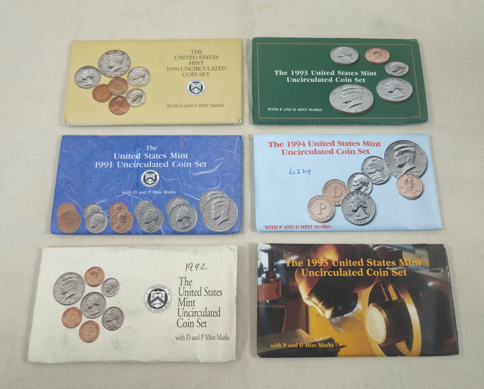 Group of ~6 U.S. Mint Sets including 1990, 1991, 1992, 1993, 1994, & 1995.
