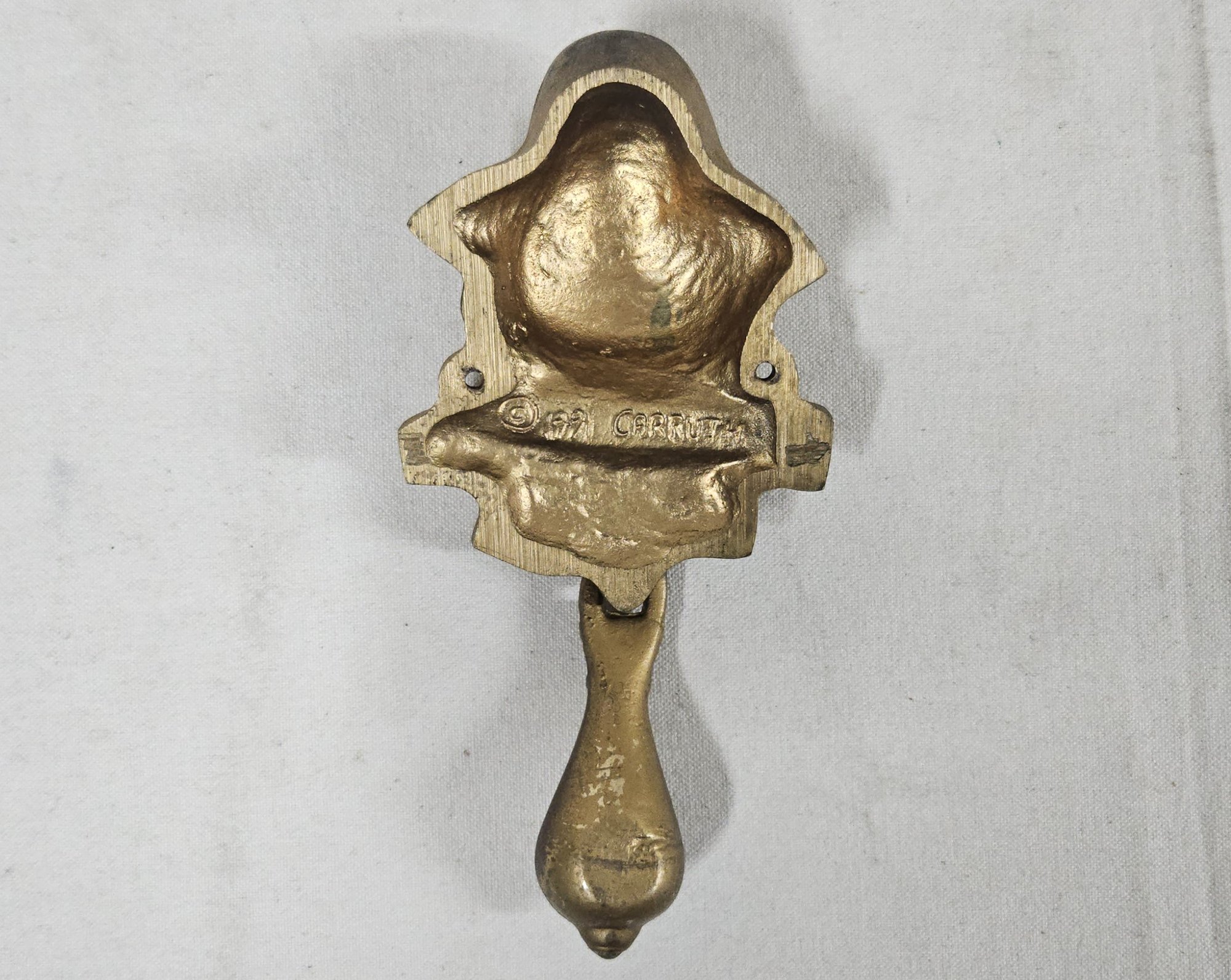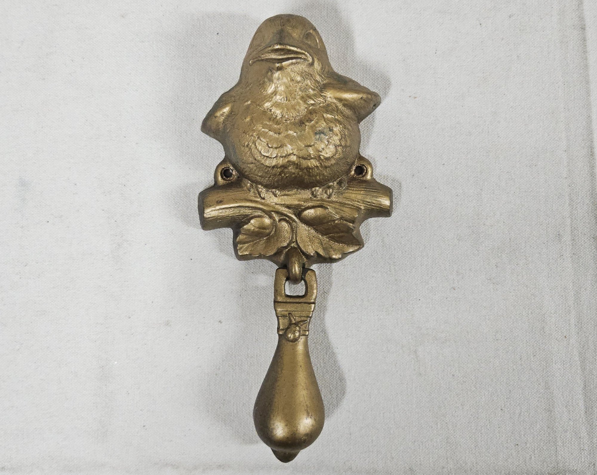 Gilt bronze perched bird door knocker. Embossed on backside Carruth.