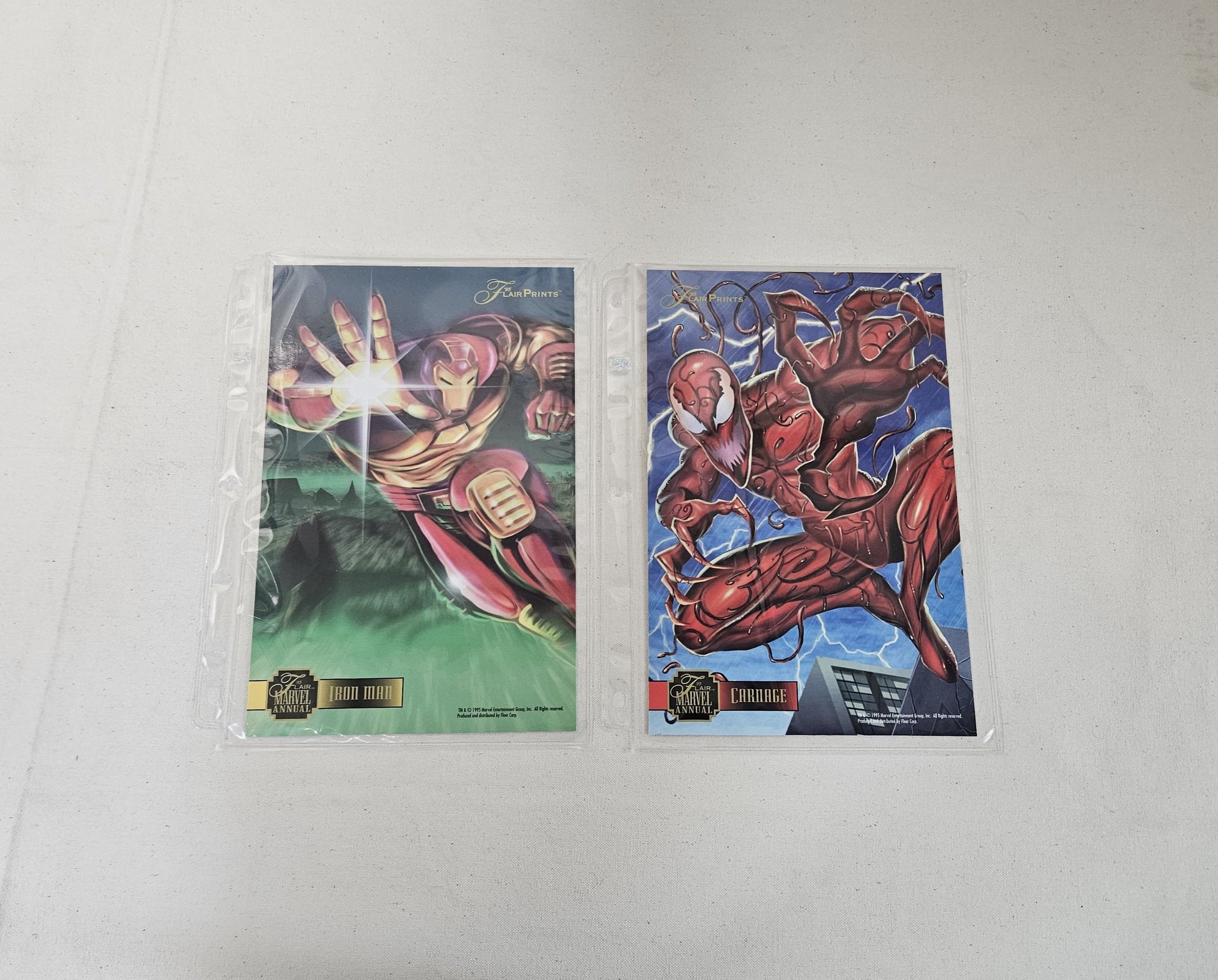 Flair Prints Marvel Annual Iron Man & Carnage Oversized trading cards. Produced by Fleer Corp.