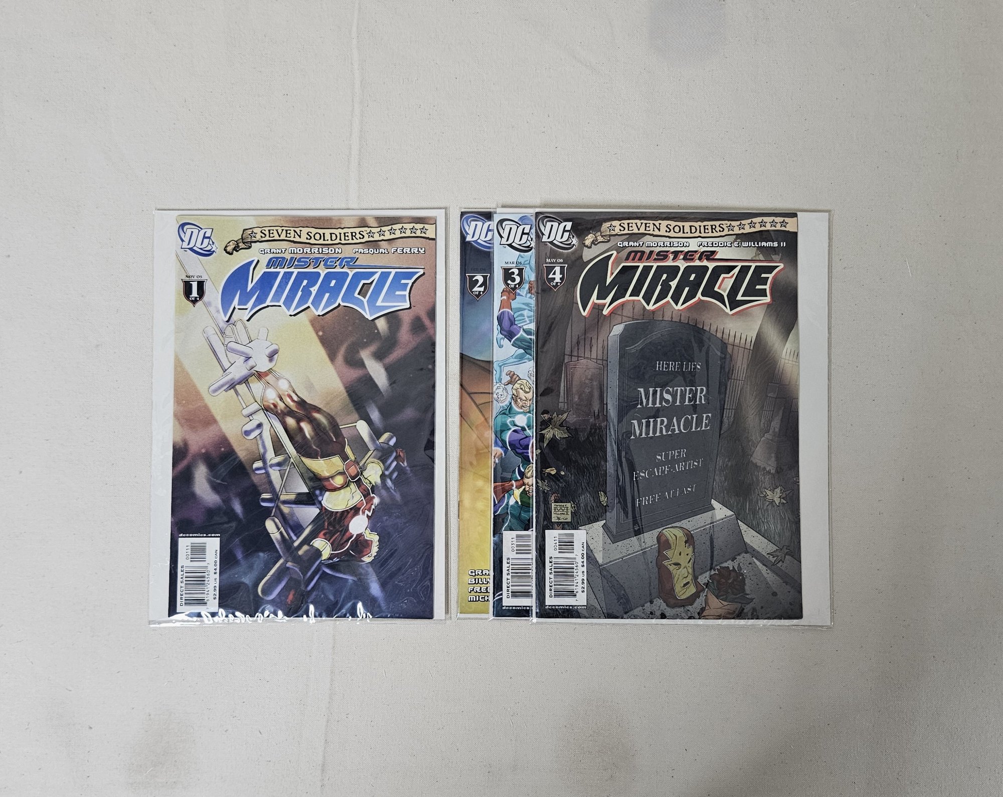 Group of Seven Soldiers: Mister Miracle mini-series comic books including issues 1-4. Published by DC Comics.
