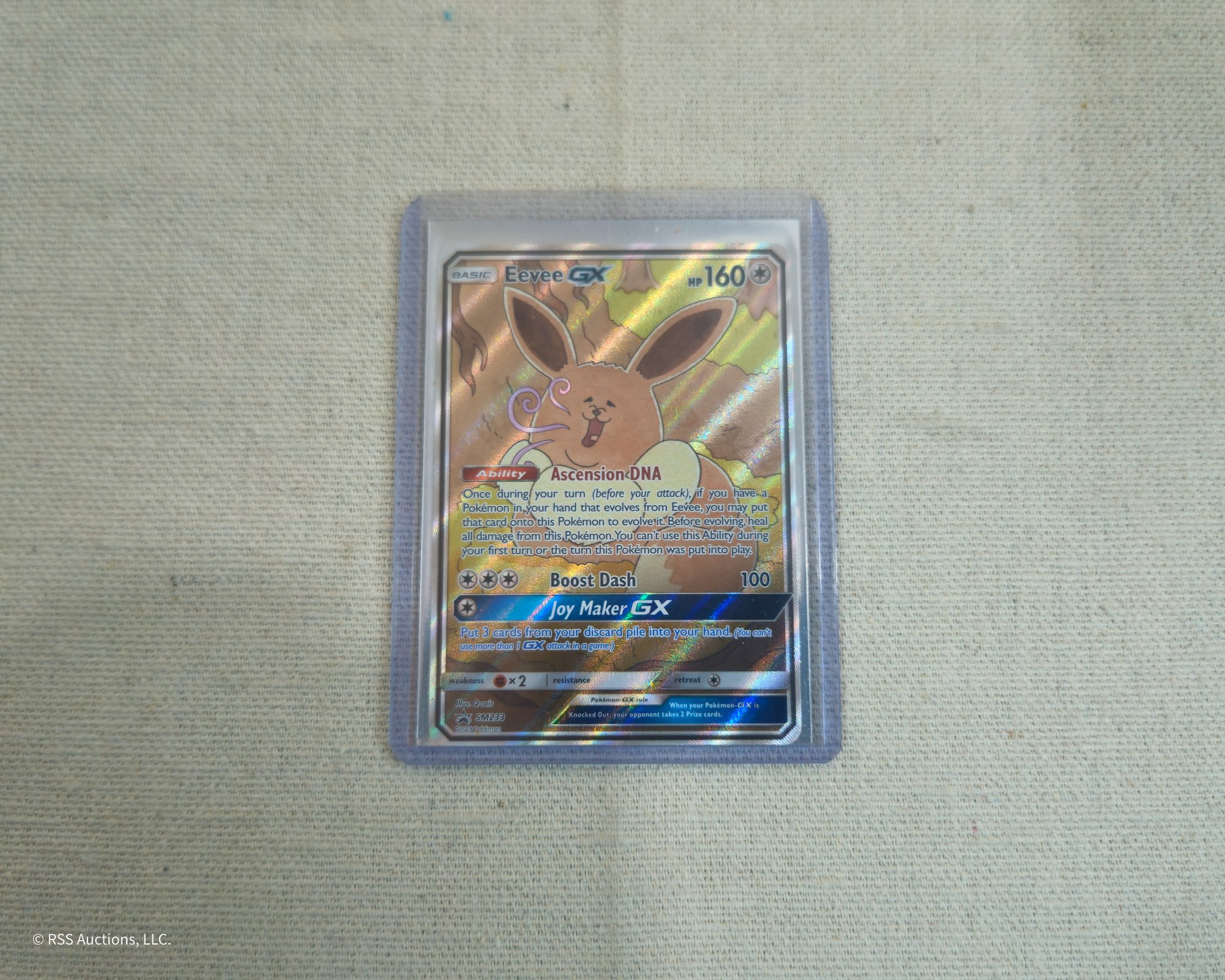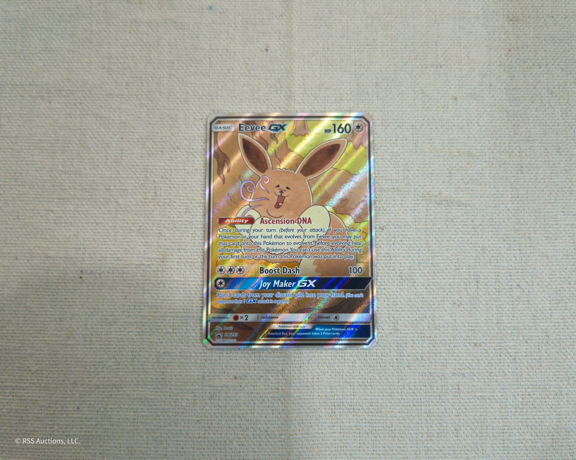 Pokemon Sun & Moon Promo Eevee GX #SM233 promo holofoil trading card.
