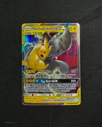 Notes: 2019 Pokemon Sun & Moon: Team Up Pikachu & Zekrom GX Trading Card is pre-owned and is unplayed.